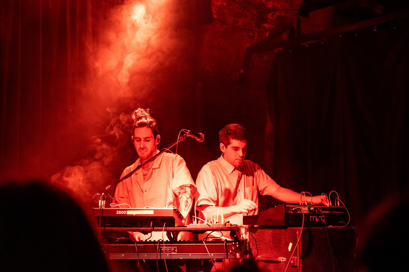 Prima di addentrarci nei meandri della serata dei Murazzi, però, è opportuno fare un po’ di storia. I Planet Opal, composti da Giorgio Assi (produzione, sintetizzatori e voce) e Leonardo De Franceschi (batteria e percussioni), sono nati – come raccontato da loro stessi – nel 2018 durante un viaggio in Corsica, «emergendo dalle profondità del sottosuolo». Nel corso di questi sette anni hanno pubblicato tre EP, svariati singoli e due album (più un remix): Cartalavonu (2021) e Recreate Patterns, Release Energy (2025), usciti entrambi per l’etichetta Dischi Sotterranei, punto di riferimento della scena indipendente nostrana (due nomi a caso: Coca Puma e Post Nebbia).