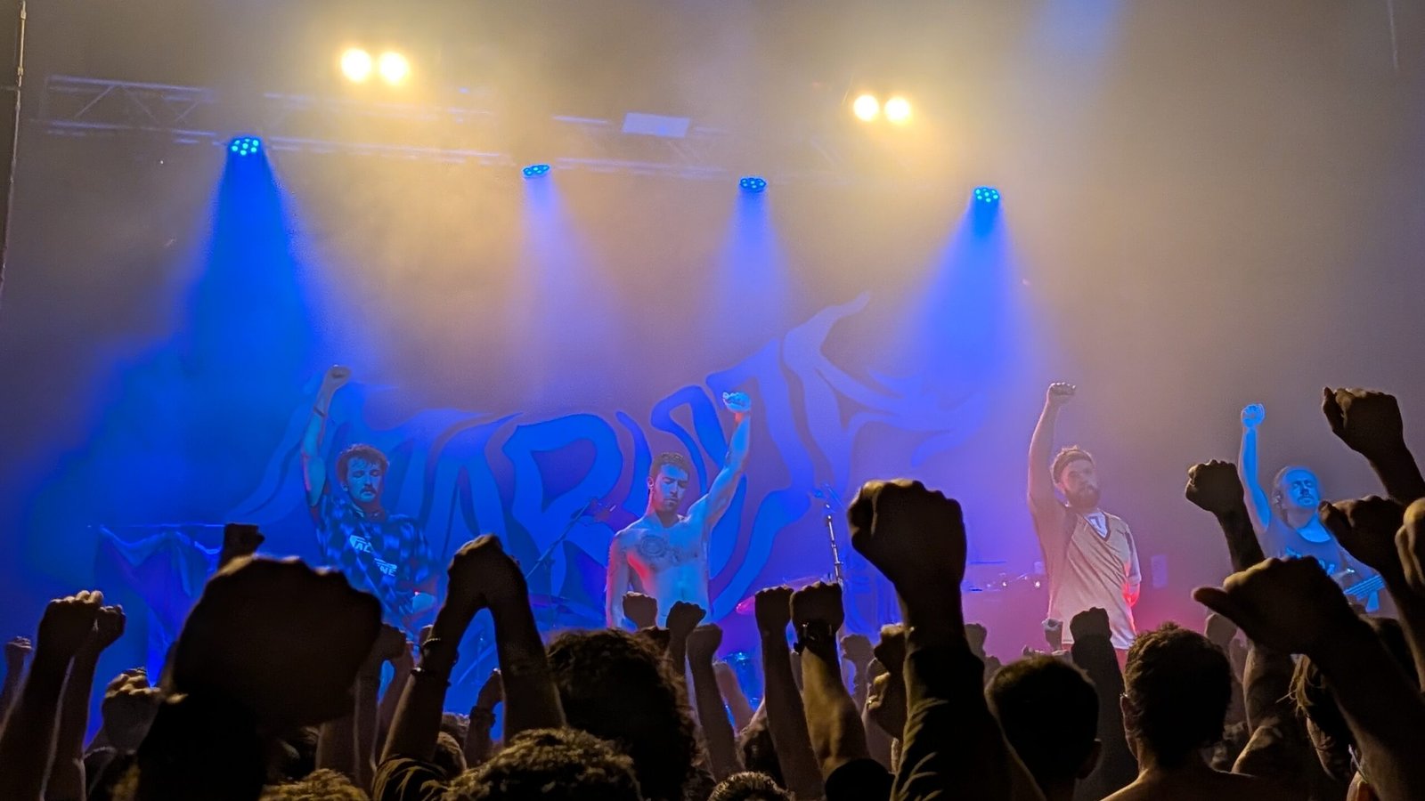 Harry Wilkinson è un frontman atipico: la sua voce spazia da un rap aggressivo a un canto quasi angelico e tormentato allo stesso tempo, particolarmente evidente in brani come Saoirse. La sua presenza scenica è intrisa di una gravità politica che non risulta mai performativa; quando urla «Blood calls blood!», la sensazione è quella di un appello urgente.