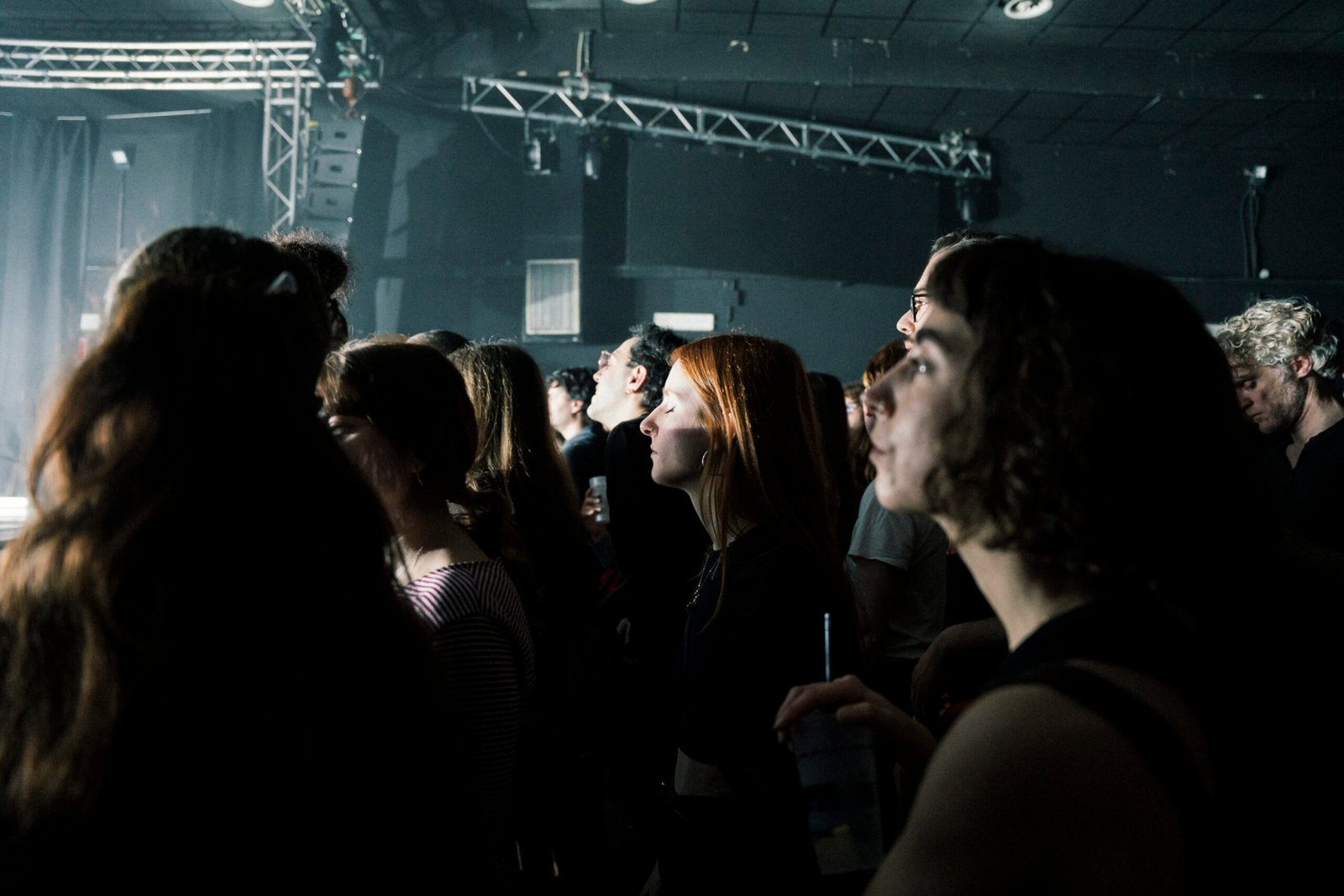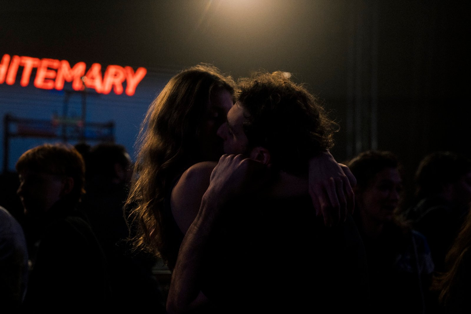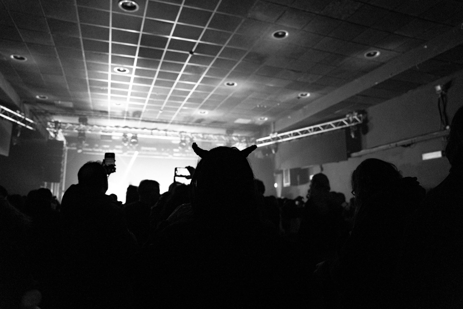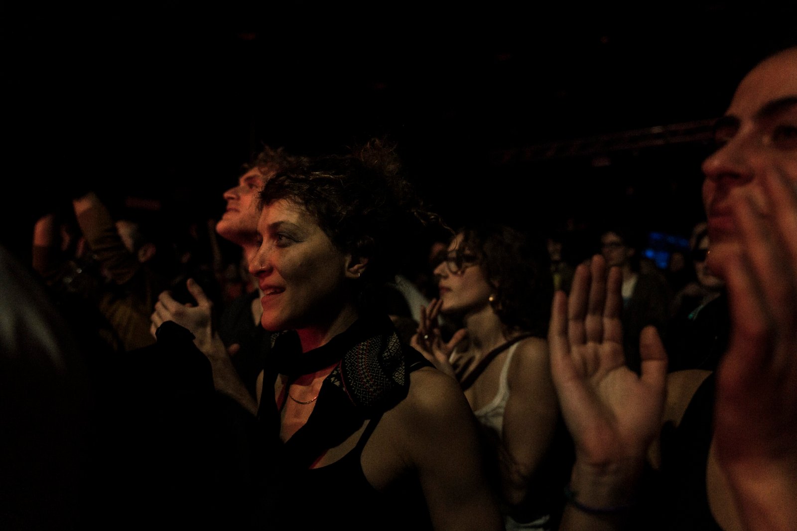 Seguono i bassi violenti di Mi nascondo, «musica densa di sentimenti faticosissimi» ma necessari: i testi sono come un singhiozzo, una confessione che parla di corpi che palpitano, liquidi che fluiscono, acqua, fango, rabbia, tristezza e rinascita. Whitemary interagisce molto con il pubblico, lo prende per mano e lo abbraccia, «spero che vi stia facendo elaborare delle cose», e introduce uno dei momenti nodali della serata, un pezzo «rigido e rancoroso come i miei synth, non un sassolino nella scarpa ma un intero albero», Ditedime. Lo ammetto, è il mio pezzo preferito, ha una trama acid che mi ha riportato alle serate techno che frequentavo da ragazzina – non scrivo da giovane solo perché mi farebbe sentire vecchissima, ma sì, insomma, ci siamo capit*– chiudo gli occhi, time machine, e sono lì: i corridoi bui e appiccicosi di una discoteca, i bassi che martellano, il sudore di gente sconosciuta addosso. In questo brano si percepiscono forti gli influssi psy-trance nella formazione musicale dell’artista.