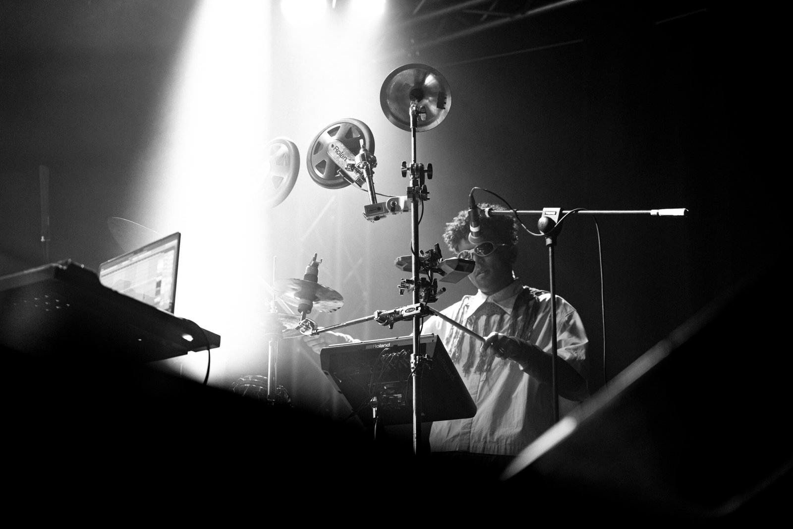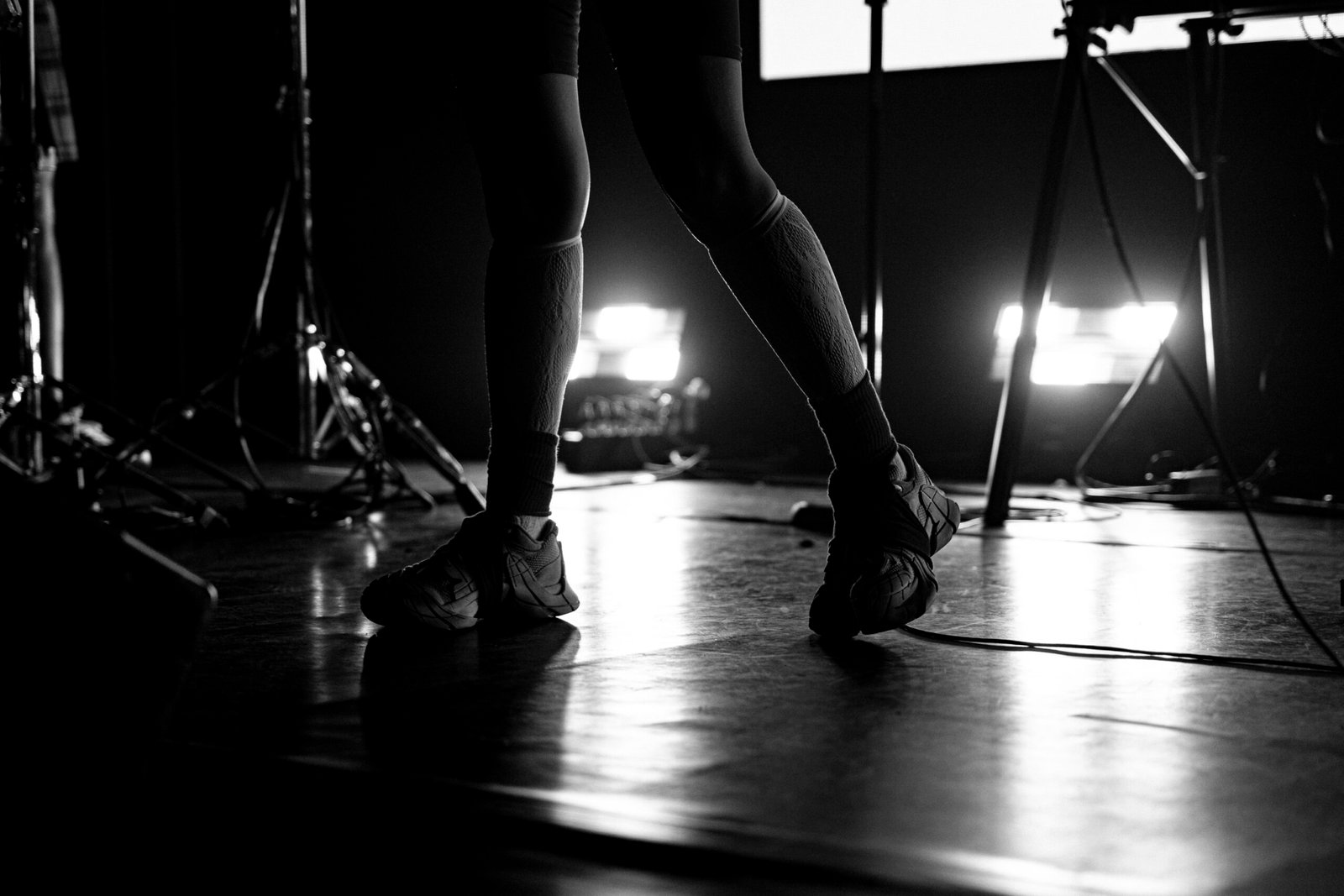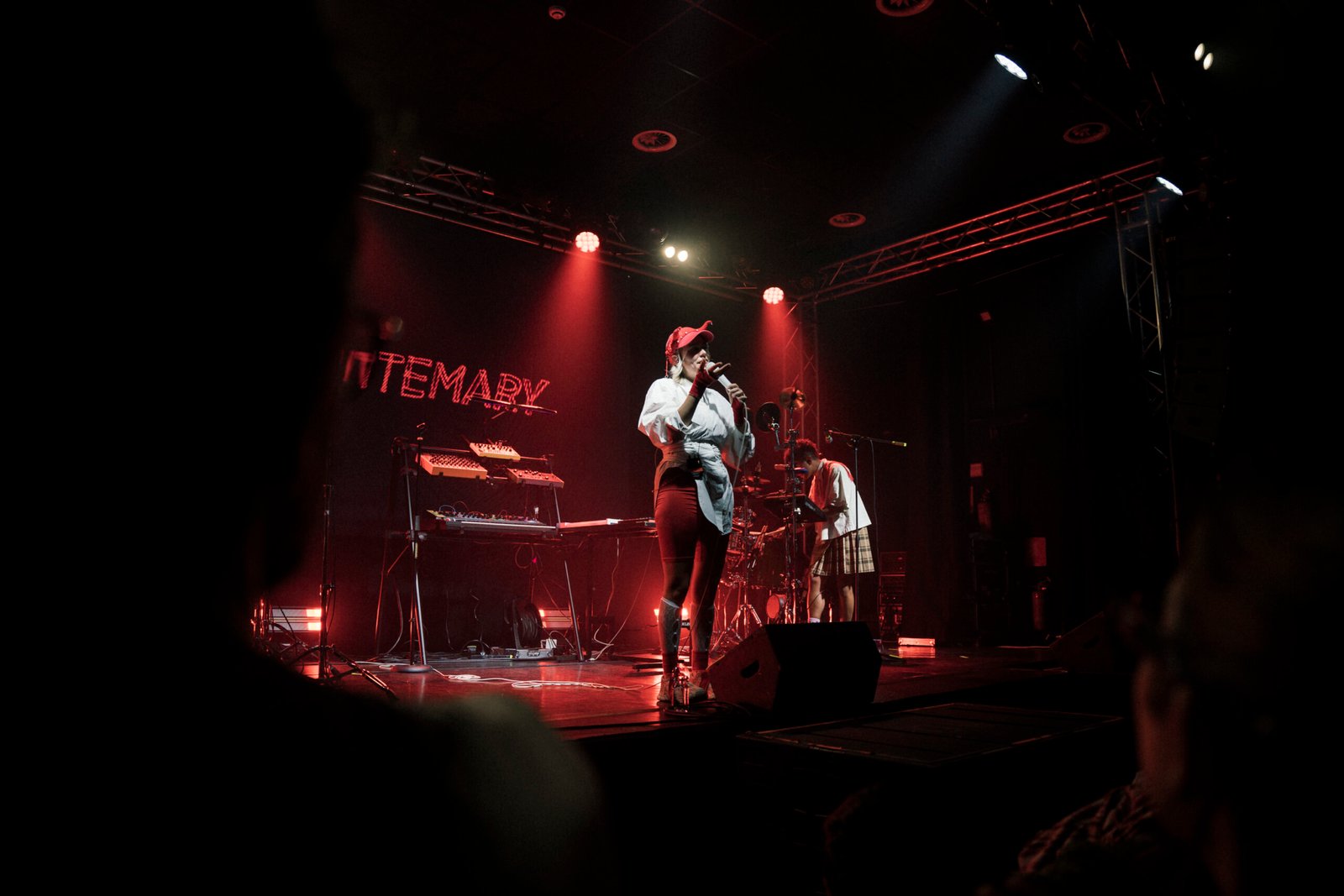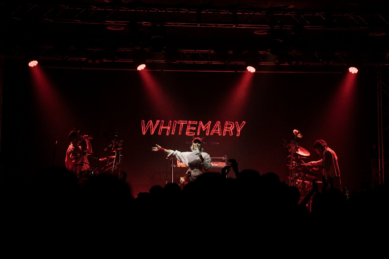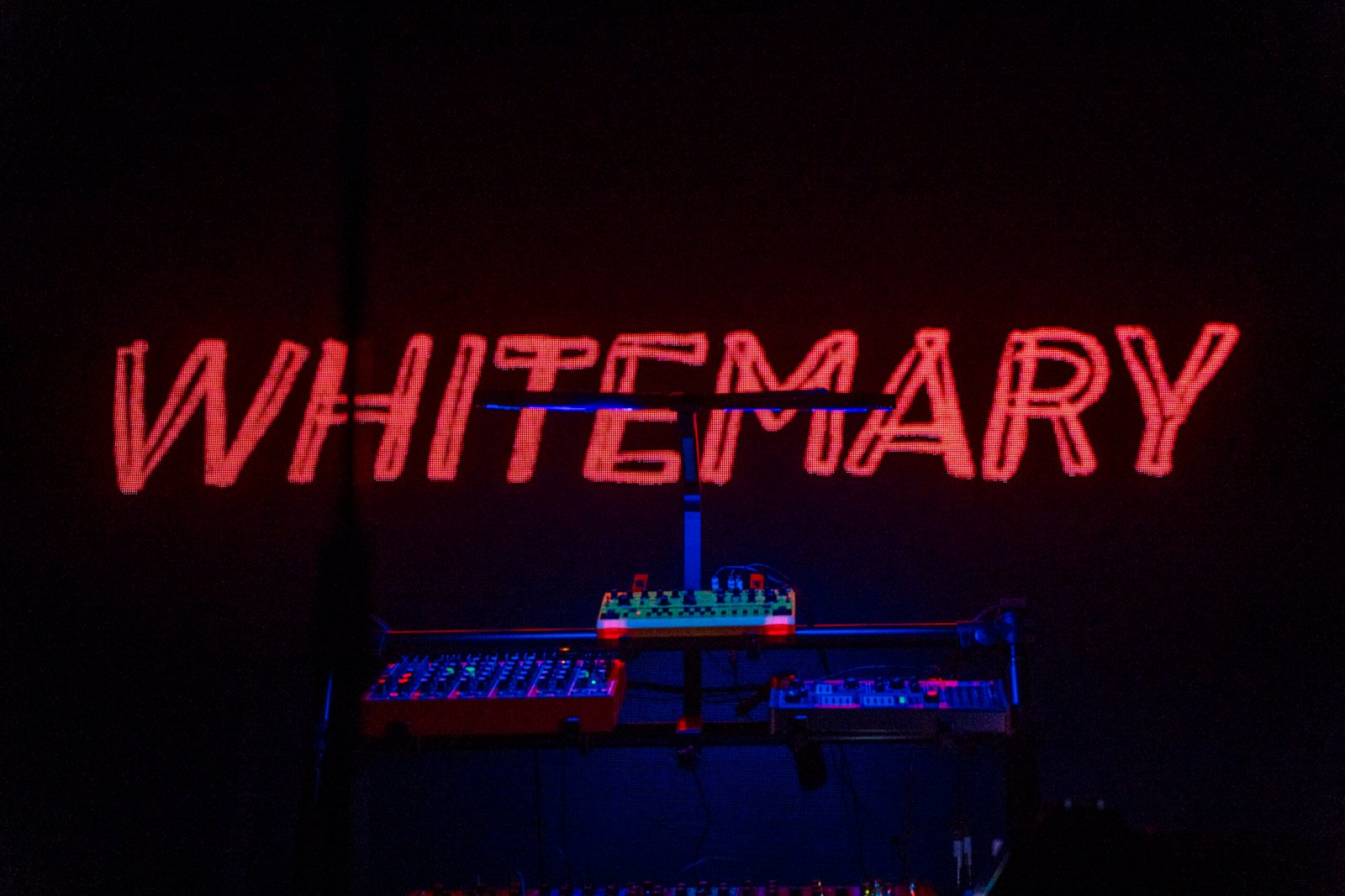 I synth sono modulari e stratificati, costruiscono geometrie che si formano per addizione – di nuovo, la formazione jazz – su beat techno martellanti (Un’esercitazione). La band chiude con la house di Mi disp, «un pezzo difficile» e dispari che sfuma senza terminare davvero, è solo un intermezzo che apre a un finale energico e pop. Biancamaria, Davide e Sergio – i batteristi – lasciano il palco buio illuminato solo da visual minimal e azzurri un po’ old school per poi tornare poco dopo con Oggi va così, brano fondamentale che – come dichiarato dalla stessa artista – ha impresso un po’ la direzione all’intero disco; e con le note pop di Credo che tra un po’, dall’album Radio Whitemary. Whitemary ingaggia il pubblico in un grido collettivo che prelude alla parentesi tribal e fisica di Numeri e basta: il mood è da underground clubbing: le luci rosse scolpiscono il palco e sulla pista si balla, o meglio, come dice Biancamaria, «balletti che scrollano di dosso la malinconia».