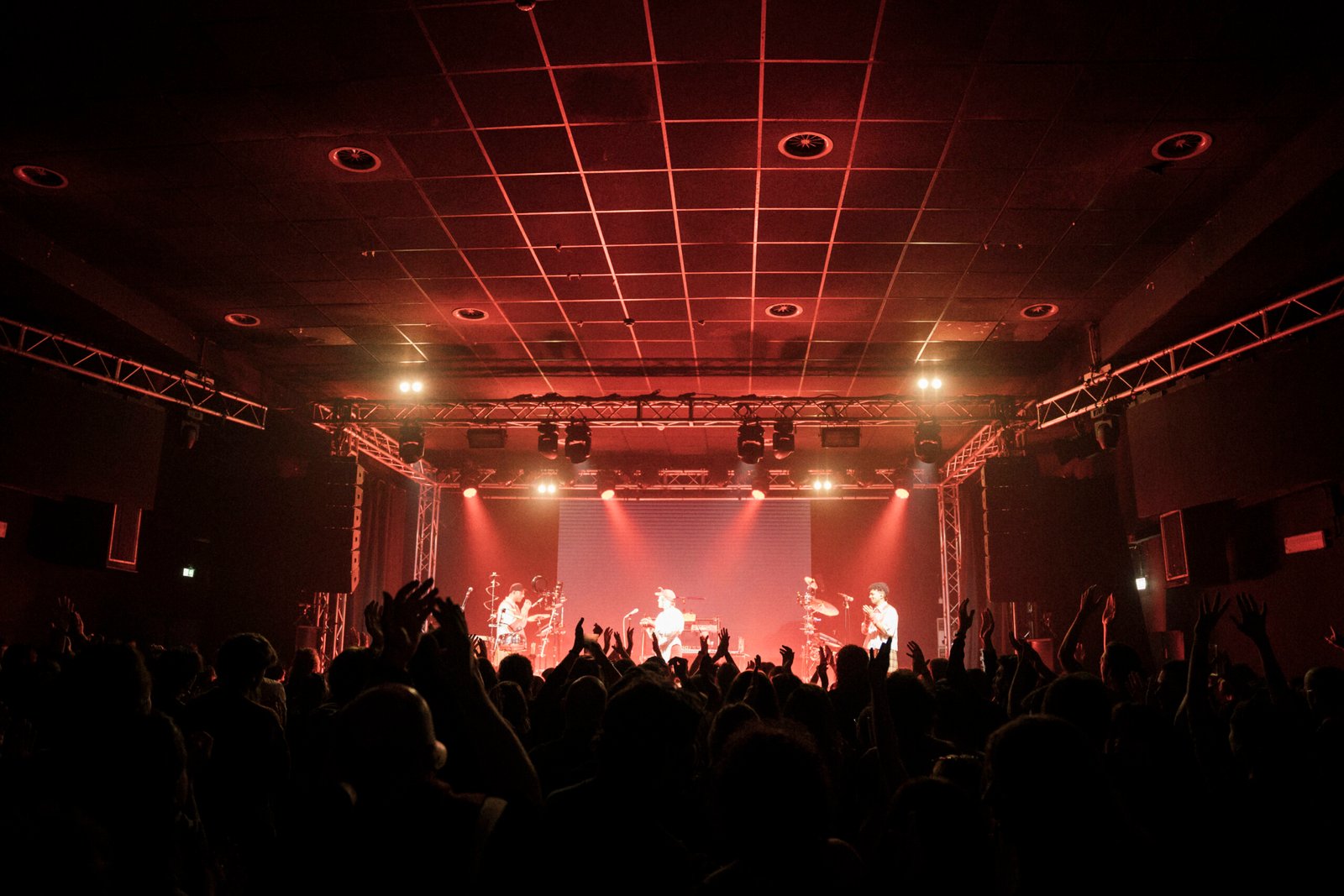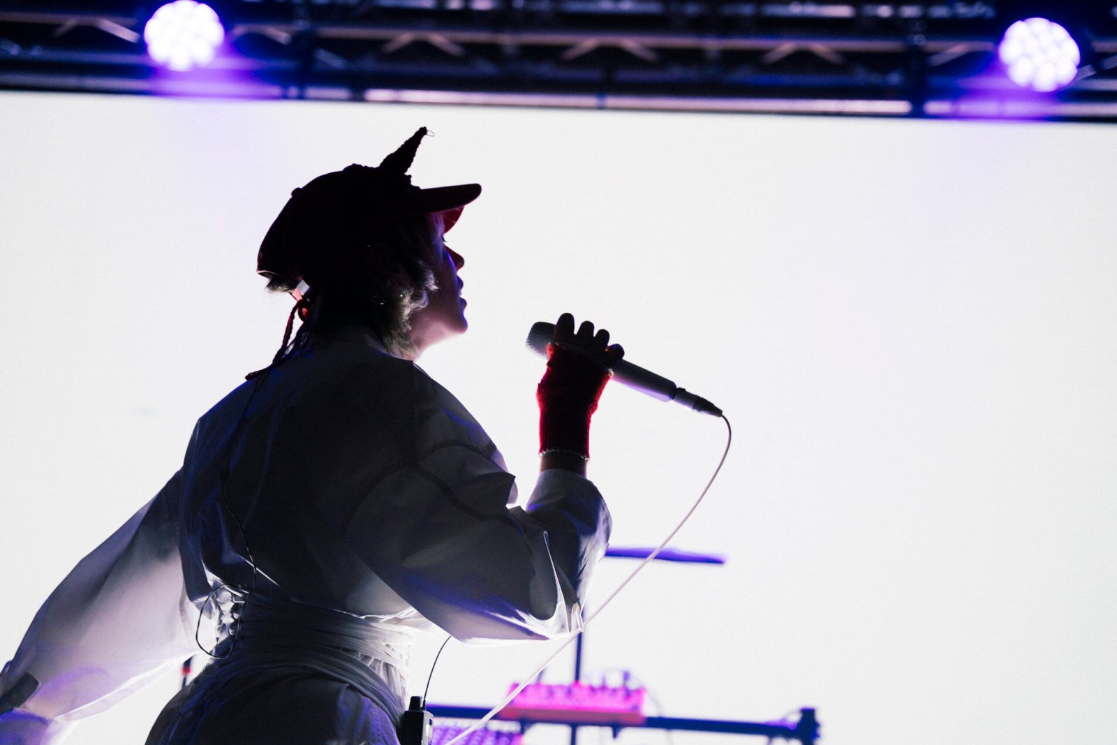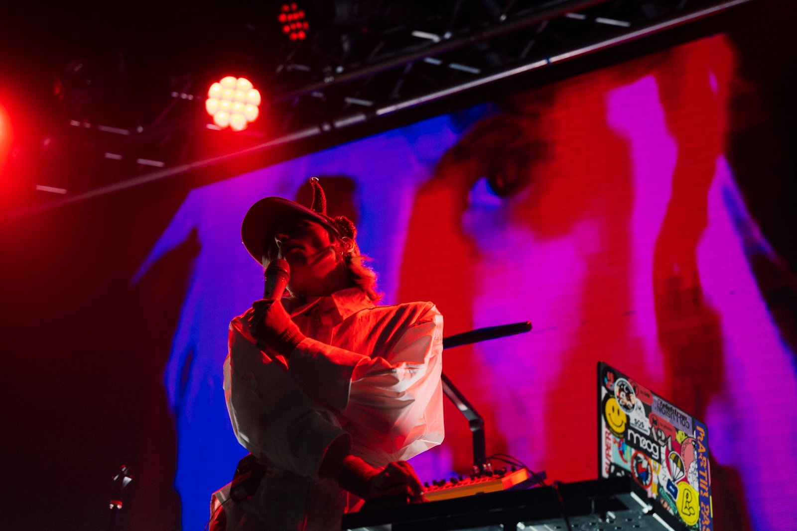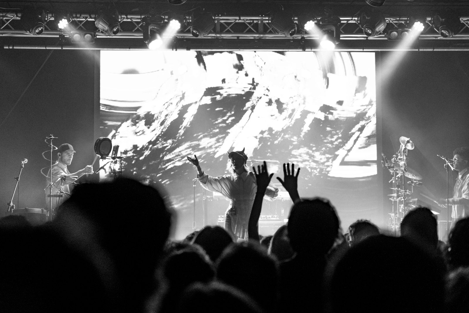 I pezzi scivolano l’uno nell’altro fluidamente grazie a intro e outro modulabili: in una cornice di visual acidi e rossi il pubblico balla sulle note di Abisso e Sembra che tutto, quest’ultimo dall’album Radio Whitemary. BPM alti e ritmi accelerati scaldano rapidamente l’atmosfera; «sono emozionatissima di essere qui», prima volta da performer sul palco dell’Hiroshima. Parte una serie di beat ipnotici, visual liquidi che creano un’atmosfera quasi sottomarina: è il momento del broken beat di Denso, in cui la dimensione immersiva del live esce prepotentemente. I synth ossessivi sostengono l’atmosfera implosiva del testo, un sentimento che è un agglomerato di energia che però «esploderà mai mai mai», come una supernova che collassa su sé stessa.