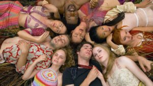 La regia visionaria di Julie Taymor si serve di colori saturi, coreografie oniriche e immagini simboliche, inscenando un’atmosfera in cui l’emozione viene messa in primo piano. Certo, senza la musica non si andrebbe da nessuna parte e sono infatti proprio le canzoni che, intrecciandosi con l’estetica cinematografica, contribuiscono attivamente alla creazione di un’esperienza immersiva e totalizzante, dolce ed energica come la prima metà della carriera dei Beatles, psichedelica e caleidoscopica come la seconda.