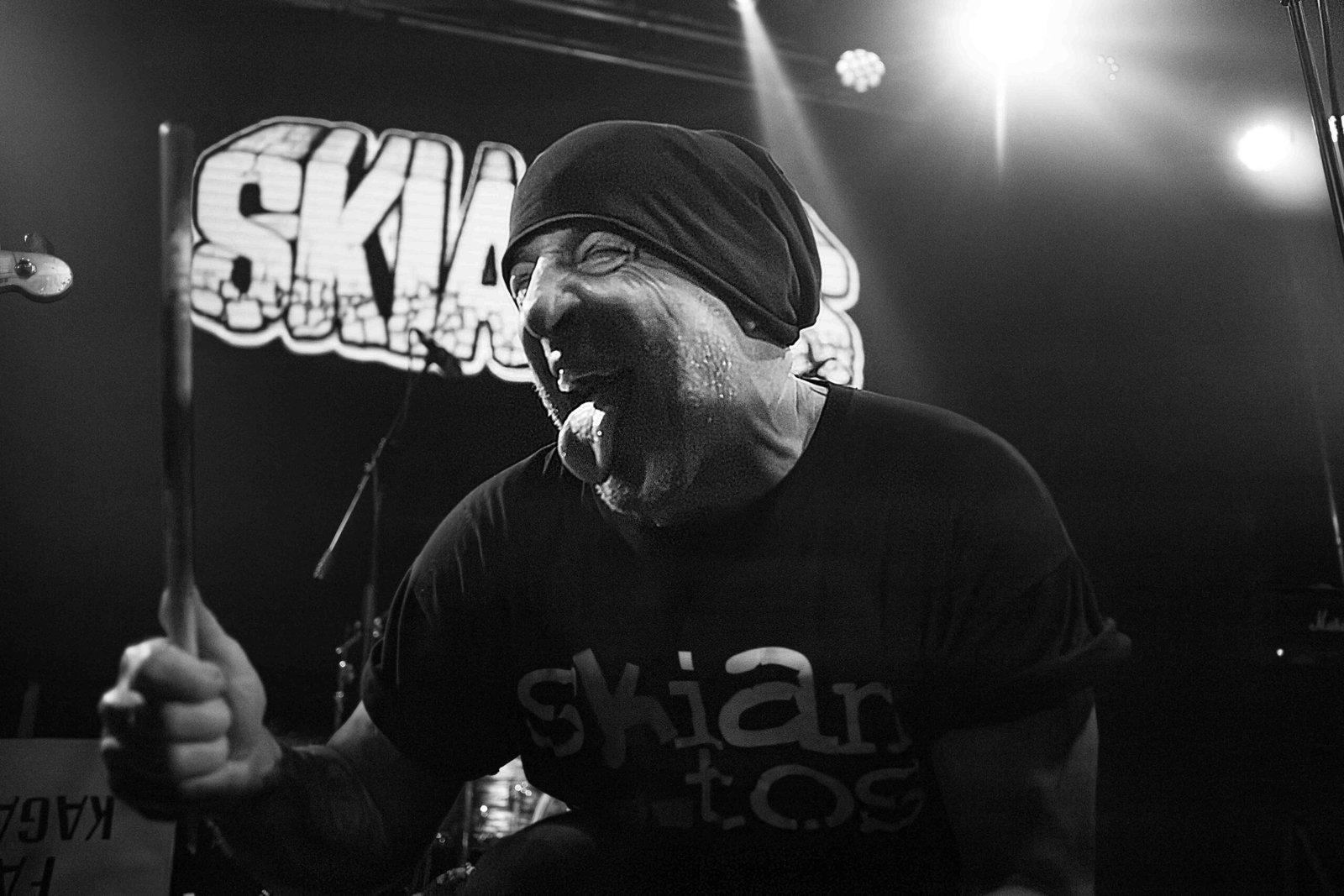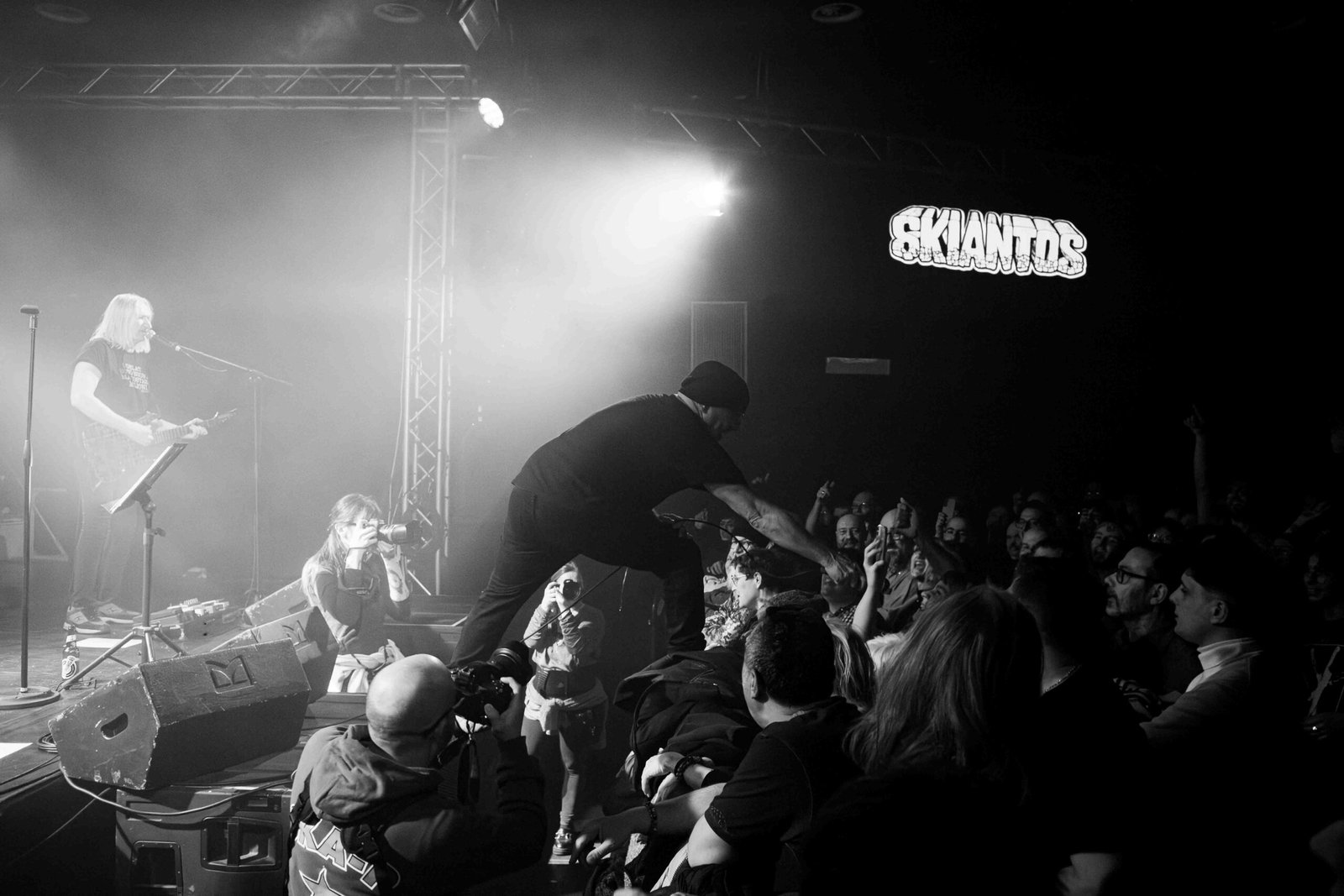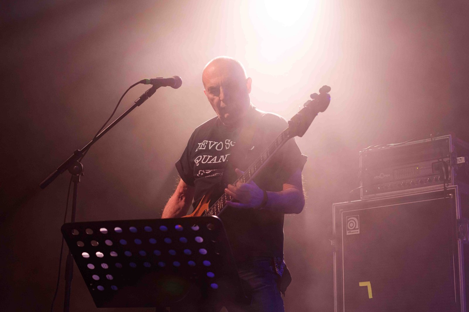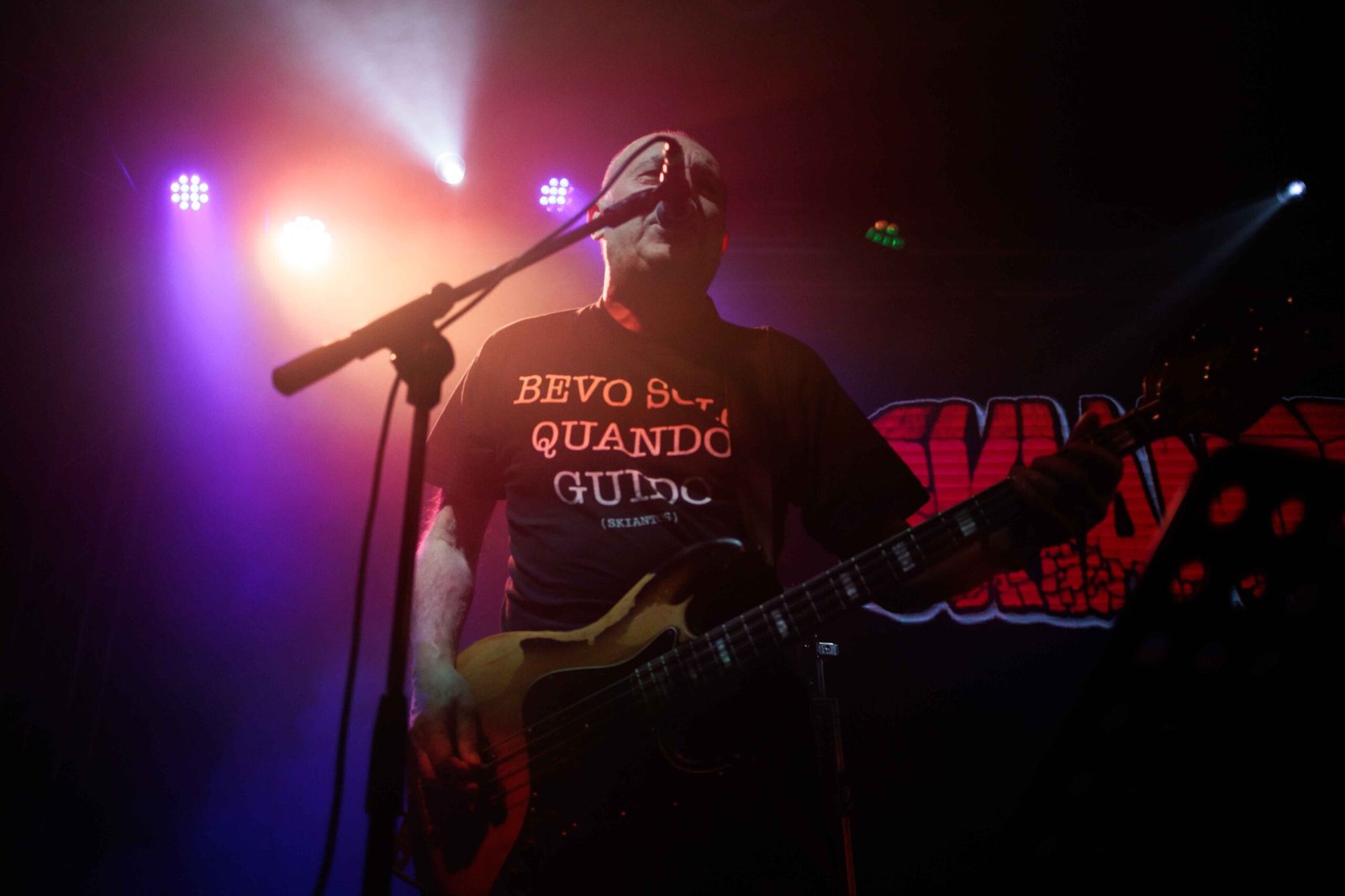 “Skiantos” è una parola ambivalente: può rappresentare una collisione, come quella sonora che arriva sottopalco; oppure, può fungere da complimento, come nel caso della prima canzone della serata. Io sono uno skianto è il pezzo d’apertura, Granito lo dedica al pubblico e lui, entusiasta, risponde all’unisono. Dallo stesso album capolavoro, Monotono, gli Skiantos propongono alcuni dei pezzi più iconici del repertorio, traghettando chi ascolta in un viaggio all’insegna delle sfumature del rock: dal Panka rock, guidato dal formidabile falsetto di Tornado, al rock ‘n roll di Ehi ehi ma che piedi che c’hai; dal pogo sfrenato di Eptadone al cha cha cha di Diventa demente; fino al blues rock di Karabigniere blues. Non mancano momenti di condivisone, in cui si ripercorrono aneddoti al limite del surreale, e quest’ultimo brano ne è un esempio: Max Magnus racconta del fraintendimento tra Freak e le forze dell’ordine, le quali, nel tentativo di consolidare la loro comica nomea, scambiarono la parola blues per l’onomatopea di uno sputo a loro dedicato. Il viaggio prosegue con hit tratte da altre tappe fondamentali della loro discografia: da Kinotto a Signore dei dischi, passando per Doppia dose. Grande escluso, ma era prevedibile che lo fosse, l’ultimo EP di inediti, Phogna, inciso nel 2009. Fidatevi: se volete scoprire un’inedita identità “seriosa” degli Skiantos, dovete correre ad ascoltarlo.