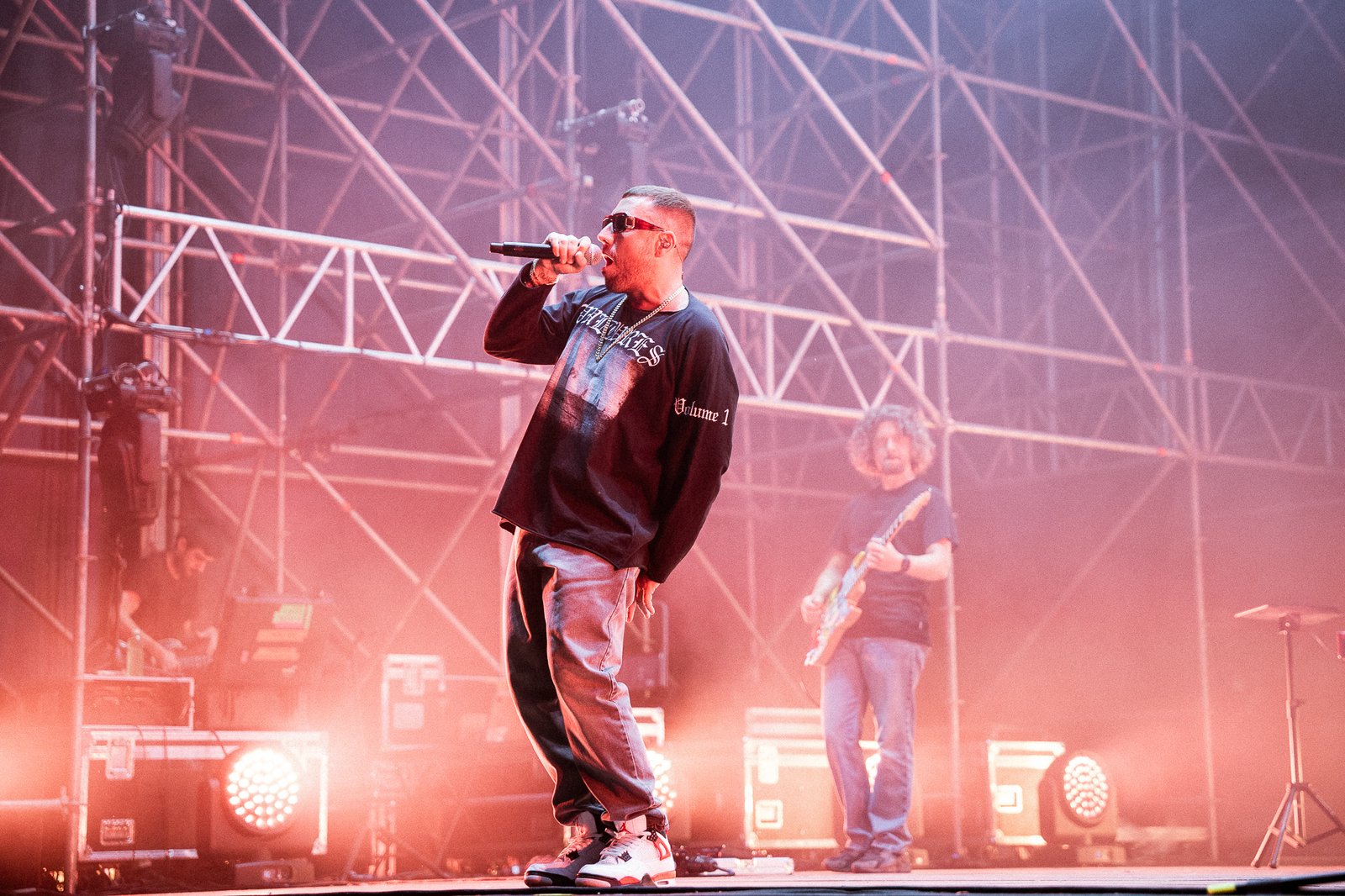 I due salutano il pubblico con Alta Marea, singolo estratto da Lovebars, ed emblema sia del genere crossover tra rap e cantautorato, sia della loro decennale amicizia sancita dalla frase «Non si vince da soli ma ci si allea».