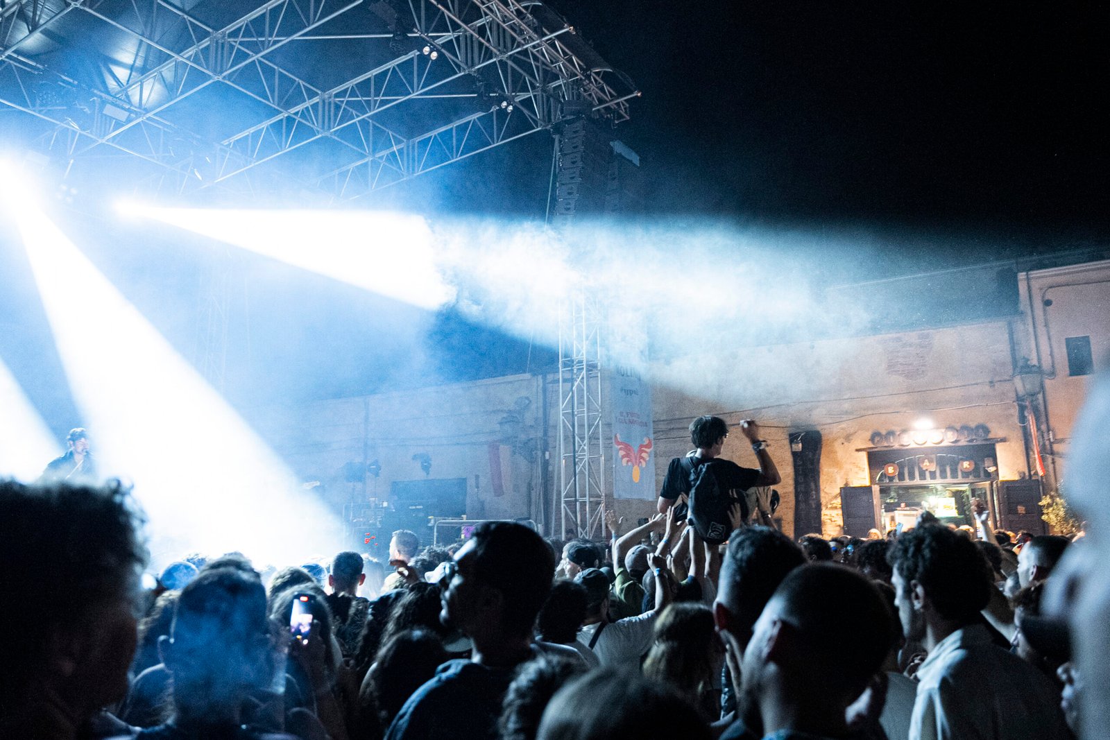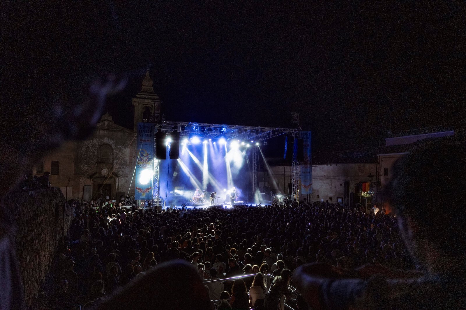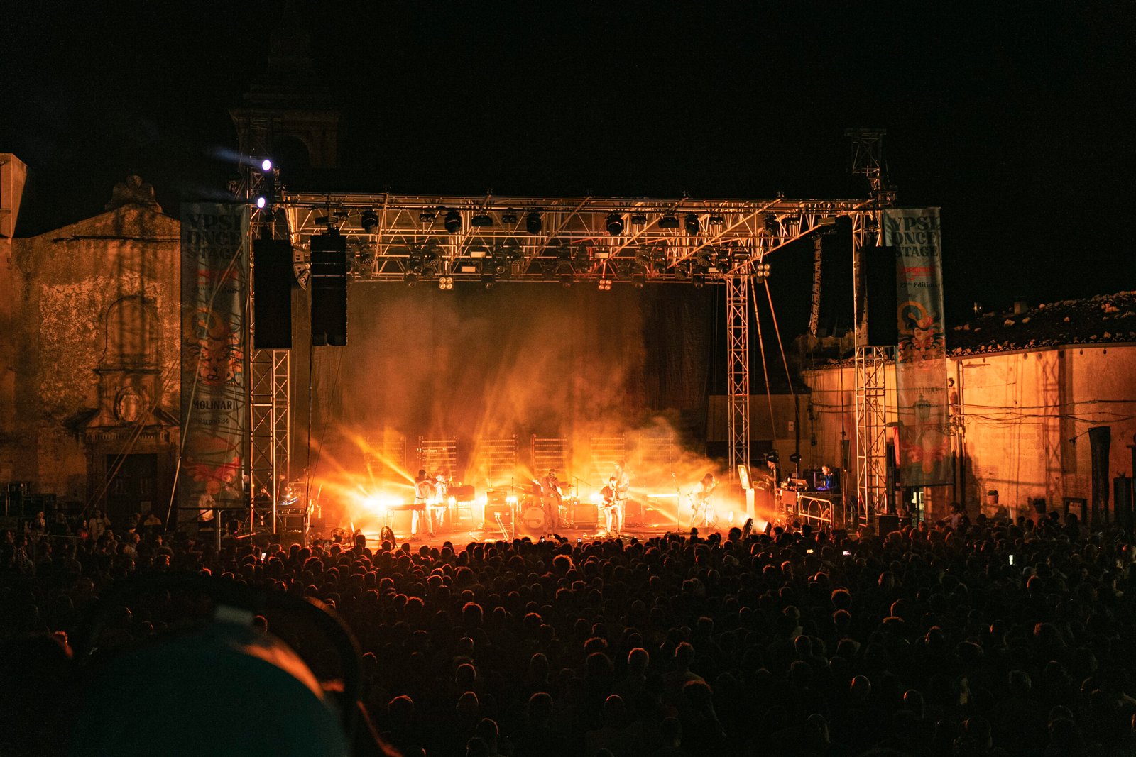 L’atmosfera in paese è vibrante, tanti turisti stranieri e appassionati di musica da tutta Italia si godono un gioiellino siciliano caratterizzato da vicoli tortuosi suggestivi e piazze che sembrano una cartolina. Tutto il centro è adibito a festa, la musica invade i rioni passando per le strade con festoni e manifesti targati Ypsigrock. Piazza Castello si trasforma in un’enorme arena che ospita un palco degno di nota. Sulla cima di una gradinata con due accessi laterali svetta un imponente castello costruito nel XIV secolo a difesa dell’antico casale, chiamato proprio Ypsigro ovvero, in bizantino, “luogo fresco”: da qui il nome del festival. Ai lati della piazza sono presenti aree merch, bar e food. Il pubblico è già disposto lungo le gradinate che si sviluppano su vari livelli di altezza, garantendo una visione ottimale anche da seduti.