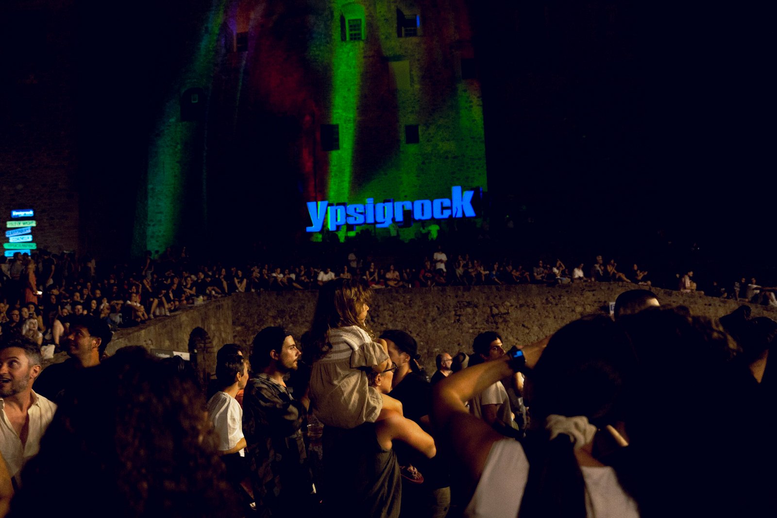 In men che non si dica, la bellezza della tradizionale piazza italiana si sposa perfettamente con una vibe da festival internazionale, creando un’atmosfera fantastica, in una location più unica che rara. Dovunque ci si sposti, l’acustica è gradevole e ogni postazione consente uno scorcio diverso sul palcoscenico, permettendo allo spettatore di muoversi liberamente per la venue senza perdersi niente della performance. Sul castello vengono proiettati dei visual, che insieme all’istallazione della scritta “Ypsigrock” creano una perfetta continuità con lo spettacolo sul palco, avvolgendo il pubblico a 360 gradi.