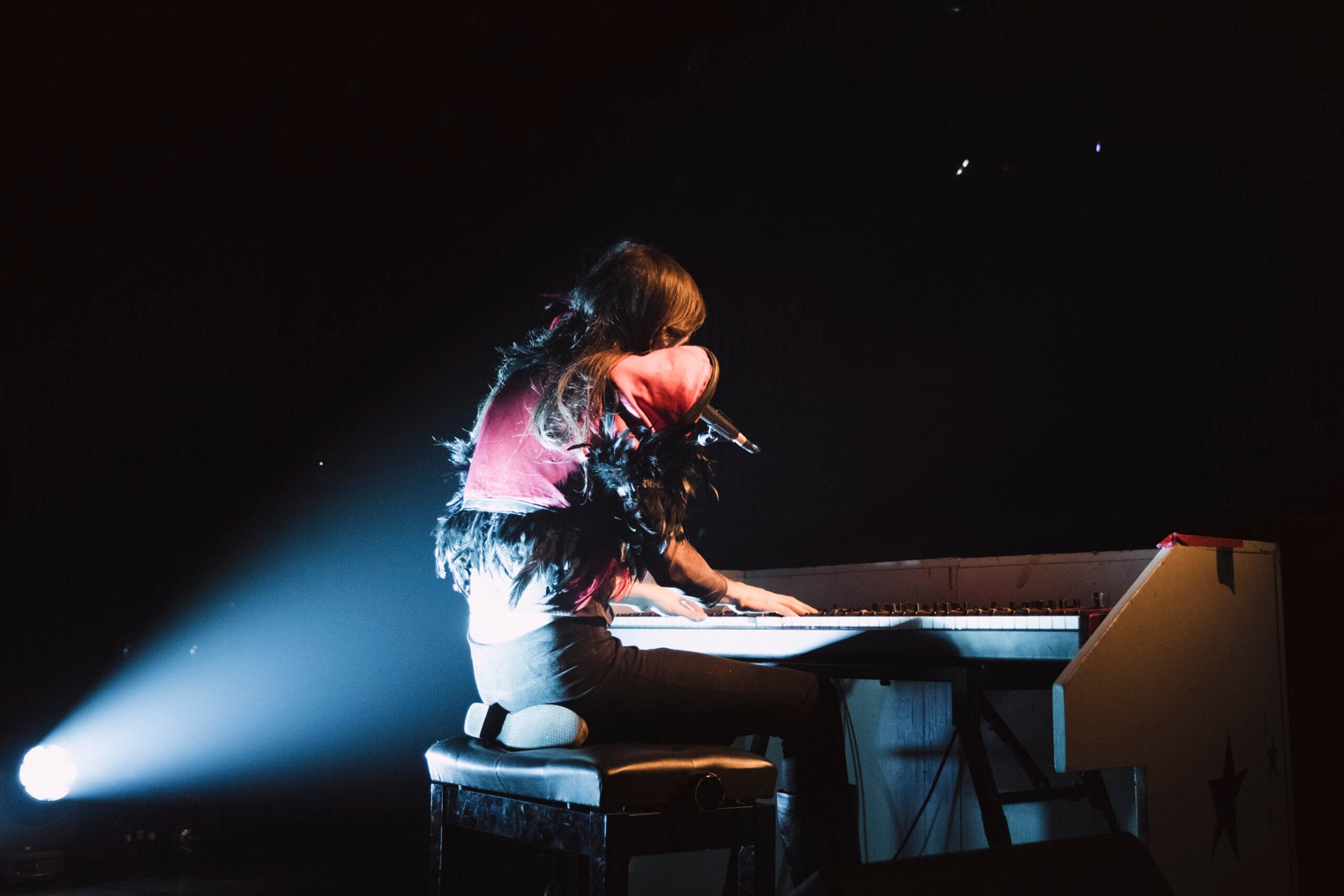 Dopo La Lepre suonata alla chitarra acustica, e un intermezzo da solo al piano, torna dietro le quinte per una pausa e un cambio d’abito. Il ritorno sul palco insieme alla band è un affettuoso abbraccio alle persone che sono venute a partecipare a questa festa di fine tour: scende tra il pubblico a cantare e immergersi tra la gente che sogna attraverso le sue canzoni. La chiusura è con il bis del pezzo iniziale, Freccia Bianca, e sempre quel riff che continua a batterti in testa e a muoverti le dita.