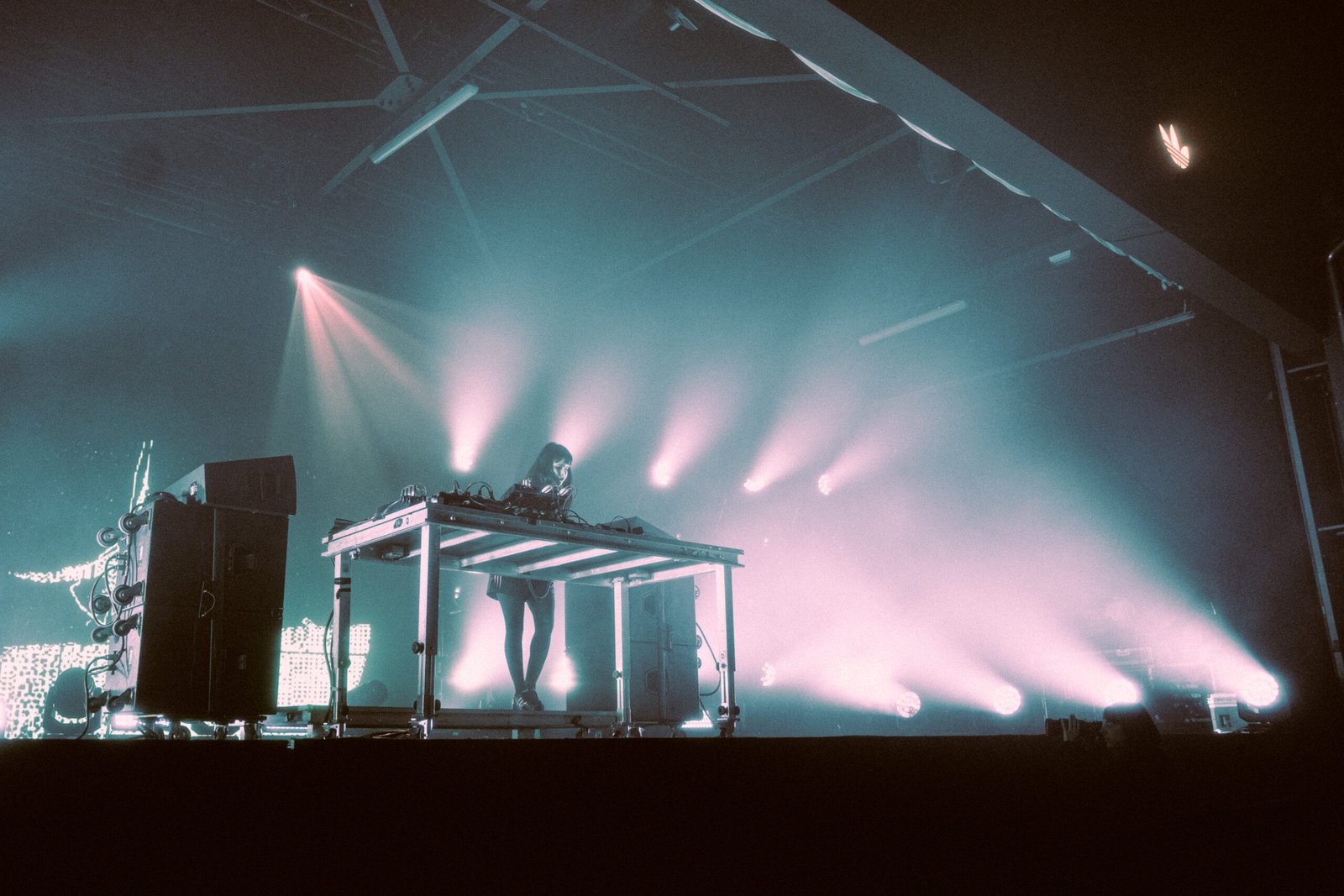 Apre la serata Miss Jay, con bassi potenti e sospesi, accompagnati da un sincopato susseguirsi di campionamenti che intrecciano suoni organici e sequenze sintetiche. Visual intensi e una cascata di onde rosse avvolgono il palco, facilitando l’immersione del pubblico nell’atmosfera di inizio serata che tuttavia, complici i giorni intensi, fatica a scaldarsi. Solo dopo mezz’ora, alzando i bpm, la folla comincia a rispondere con i primi applausi: Miss Jay avvia così un viaggio tra vari stili ed epoche, con ritmi che spaziano dalla dubstep al downtempo, fino a melodie quasi EDM. La chiusura con un remix di Closer di Ne-Yo ha fatto impazzire le prime file, anche se l’escalation appare un po’ fuori contesto rispetto alla splendida apertura, più immersiva, particolare ed emozionante.