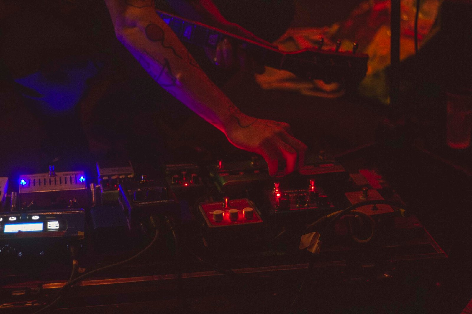 L’apertura è stata affidata a Dario con un intro infinito che sembrava volerci ipnotizzare e si è capito subito che sarebbe stato un live lontano dai soliti schemi del cantautorato italiano. A terra, ai piedi di Cassio, una pedaliera enorme, un arsenale di effetti sonori che avrebbero trasformato ogni brano in qualcosa di nuovo e irripetibile. La vera magia del live è stata proprio questa, ogni suono veniva generato in tempo reale. La voce e la chitarra si mescolavano con la musica elettronica di Dario, creando un mix inedito di sonorità che sfuggivano a qualsiasi definizione precisa. Era impossibile distogliere lo sguardo. Cassio sembrava immerso in un flusso tutto suo, quasi ignaro del pubblico, eppure incredibilmente connesso con esso. C’è stato un momento molto emozionante in cui il cantante sembrava danzare assieme alla sua chitarra come se fosse una donna di cui é follemente innamorato.