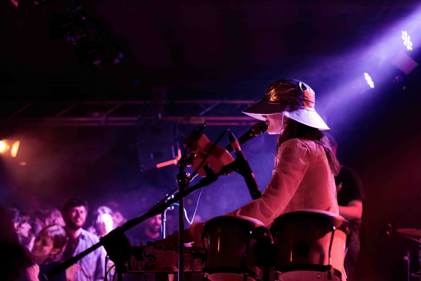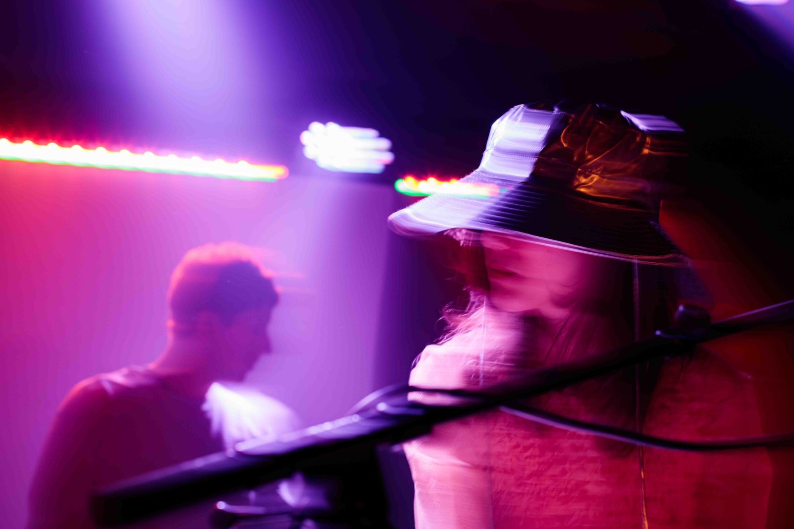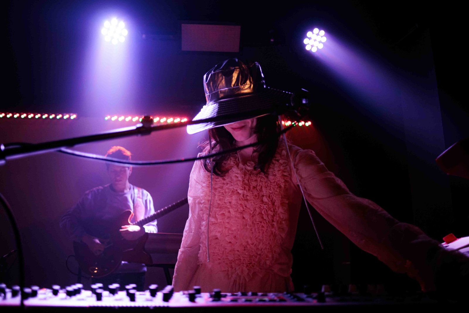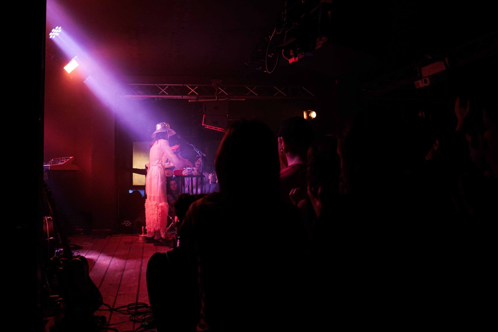 Il fumo si dirada e le luci iniziano a virare su toni più caldi quando invece a salire sul palco è Coca Puma, nella data torinese del suo tour andata sold out già da qualche settimana. Calze bianche, vestito rosa antico tutto balze e merletti, accompagnato dall’ormai proverbiale cappello da pescatore che nasconde ai più i suoi lineamenti delicati in quella che sembra una versione haute couture di Myss Keta.