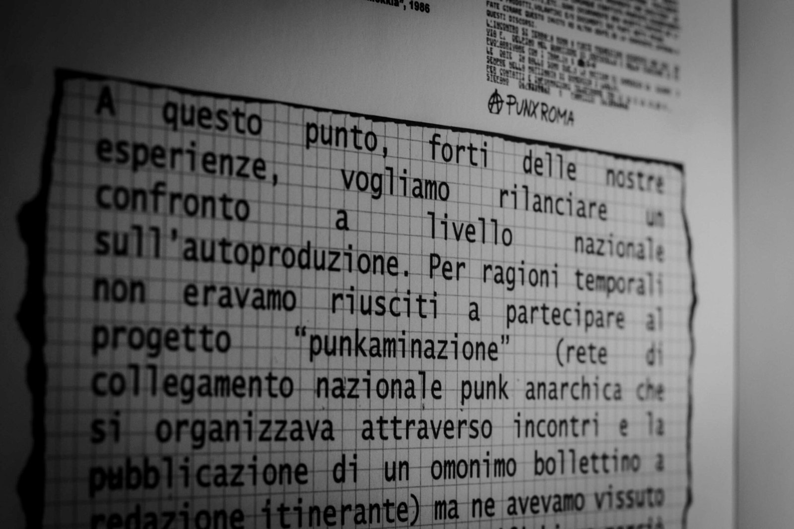L’edizione romana introduce anche una sezione speciale inedita: Punk Mirabilia Urbis, un approfondimento dedicato agli albori del punk anarchico romano tra il 1984 e il 1988. In questa parte dell’esposizione si racconta la crescita di una scena che ha saputo fondere la musica con l’occupazione degli spazi sociali, generando realtà storiche come il Forte Prenestino. Un’occasione preziosa per riscoprire band come Bloody Riot e Growing Concern, protagoniste di un’evoluzione sonora sempre più vicina all’hardcore americano, ma con radici profondamente radicate nel contesto sociale romano. Tra i curatori di questa sezione, anche Brix, bassista dei Lager e degli Attrito, testimone diretto di quell’epoca.