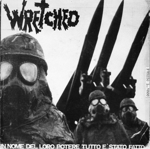 Tra i principali suonatori di questa rabbia ci sono i Wretched, storico gruppo milanese che nel 1983 pubblica In nome del loro potere tutto è stato fatto…, un bellissimo EP in cui viene espresso il totale rifiuto nei confronti dello stato, del potere da questo esercitato e dello spirito guerrafondaio propagato dalla società occidentale. Un esempio è proprio il pezzo Spero venga la guerra, un inno di circa 45 secondi in cui il gruppo si augura che la guerra scoppi per davvero perché solo davanti agli orrori e alle stragi ci accorgeremo che, forse, avremmo potuto fare qualcosa.
