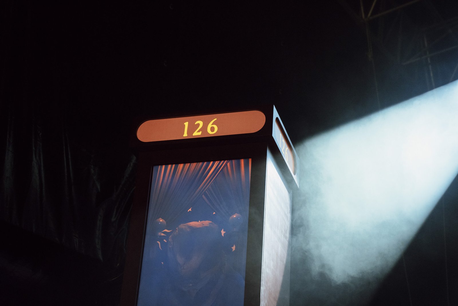 Il live di Franco126 questa sera non lascia nulla al caso: la scenografia sul palco è studiata nei minimi dettagli, l’interazione tra i membri della band – per l’occasione, «eleganti, un po’ Parioli» – è calibrata e ben cadenzata, le battute sono ponderate e non mancano momenti interattivi con il pubblico, come il QR code da scansionare per essere rimbalzat* sulla pagina Instagram del mago Zoltar o il momento karaoke con il testo di Nuvole di drago che scorre sullo schermo della cabina del mago. Colpo di genio o tocco trash, non so decidermi. L’intera performance è sostenuta da un tappeto di luci denso e quasi narrativo, come la nebbia arancione che invade il palco in Prima dell’alba, «nemmeno te ne accorgerai e un altro vestirà i miei panni», abbandoni e struggenti rimpiazzi – in sostanza, Rimmel che fa scuola –; la ragazzina vicino a me scoppia a piangere – breve momento di imbarazzo, che fare? Vado al bar –. Franco126 regala piccole polaroid di solitudine urbana, l’amore che sparisce sotto le luci rosse del quartiere cinese (Nottetempo), un battistiano basilico che muore di sete (Ancora no), la celebrazione dell’immancabile amico sgangherato della ballotta in Simone (omaggio a Ugo Borghetti) quando a un certo punto la palla di cristallo lo rispedisce nel passato con una nostalgica Maledetto tempo, che omaggia il tempo compresso di Franco Califano. Sono tante le reference di Franco126 che si possono cogliere, dal cantautorato che ha fatto la storia della canzone italiana – Dalla, i già citati Califano e Battisti, ma anche la vena un po’ scanzonata di Rino Gaetano – fino all’indie contemporaneo di Calcutta e Fulminacci — e qui, credits e big up per Simone, lui sa —.