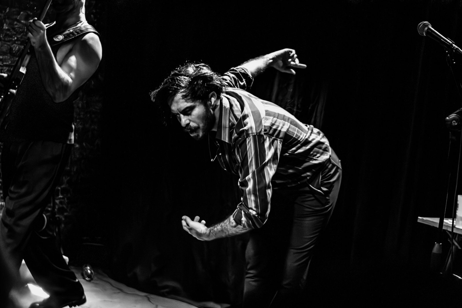 Scavando più a fondo, l’elemento forte sono sicuramente i beat trasportanti carichi di bassi, un ventaglio di ritmi che ricalcano una buona fetta di matrice occidentale dal gusto hip hop, passando dalla trap fino a sfiorare l’electro-punk – il che giustifica il pogo del pubblico –. Su questi ritmi ben ingegnati il chitarrista costruisce riff e sonorità psichedeliche, legate fortemente alla musica tradizionale turca – più tecnicamente, per i nerd: è il “modo hijaz”, scala ottenuta a partire dal V grado della scala minore armonica –. In qualche brano, infatti, è presente anche un effetto che richiama gli strumenti tipici turchi (il bağlama, forse?). Il cantante, personaggio un po’ istrionico e dalla voce bassa, balla sensualmente sul palco e gioca con il microfono, mostrando una forte presenza scenica. All’occorrenza suona anche il basso, per rinforzare i riff del chitarrista.