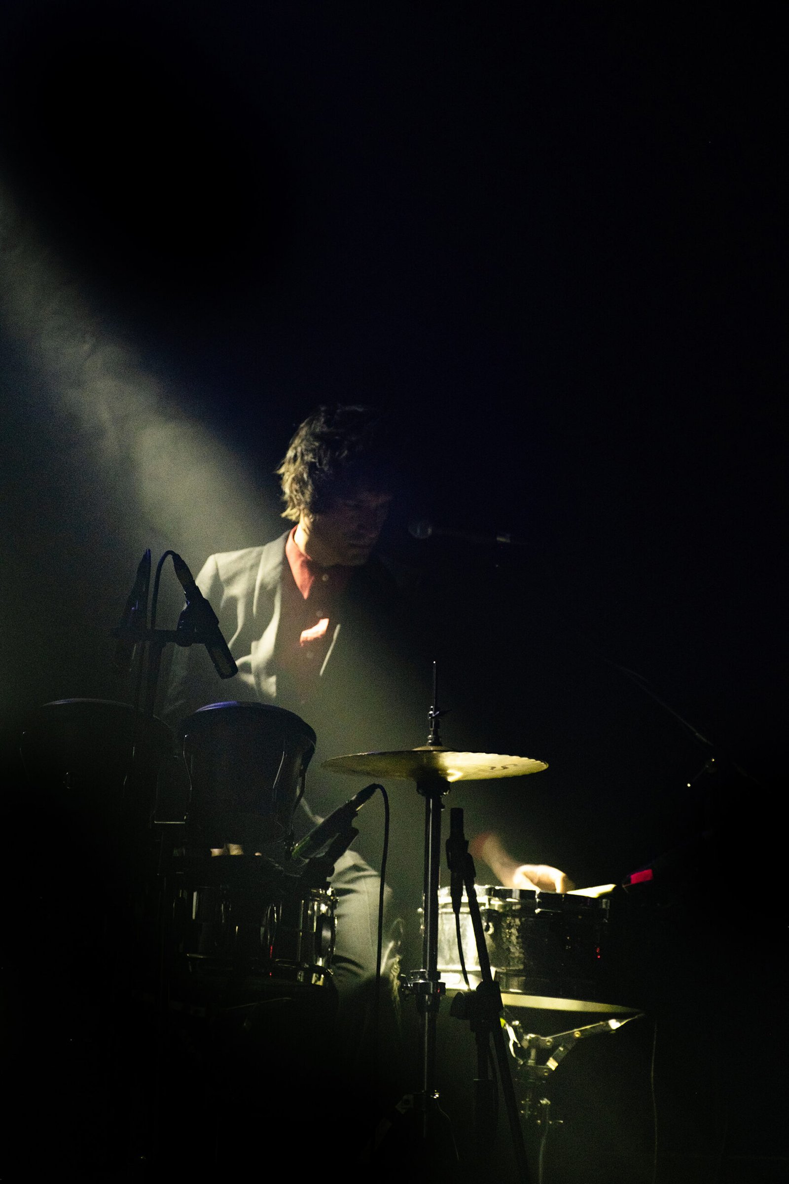 Quando la band arriva sul palco dell’Hiroshima Mon Amour – locale che, neanche a farlo apposta, si incastra perfettamente tra i rimandi cinematografici della band –, l’atmosfera è avvolta dalla nebbia della macchina del fumo. Le sagome dei musicisti si intravedono sullo sfondo: profili eleganti, in giacca o in camicia, arpionano i tasti dei loro strumenti di matrice jazz: una chitarra acustica, un contrabbasso elettrico e una tastiera a 61 tasti – forse non così tanto jazz –, collegata in MIDI a un pc. Sul fianco destro la batteria, disposta su un lato, mischia il drum set convenzionale agli strumenti percussivi a mano.