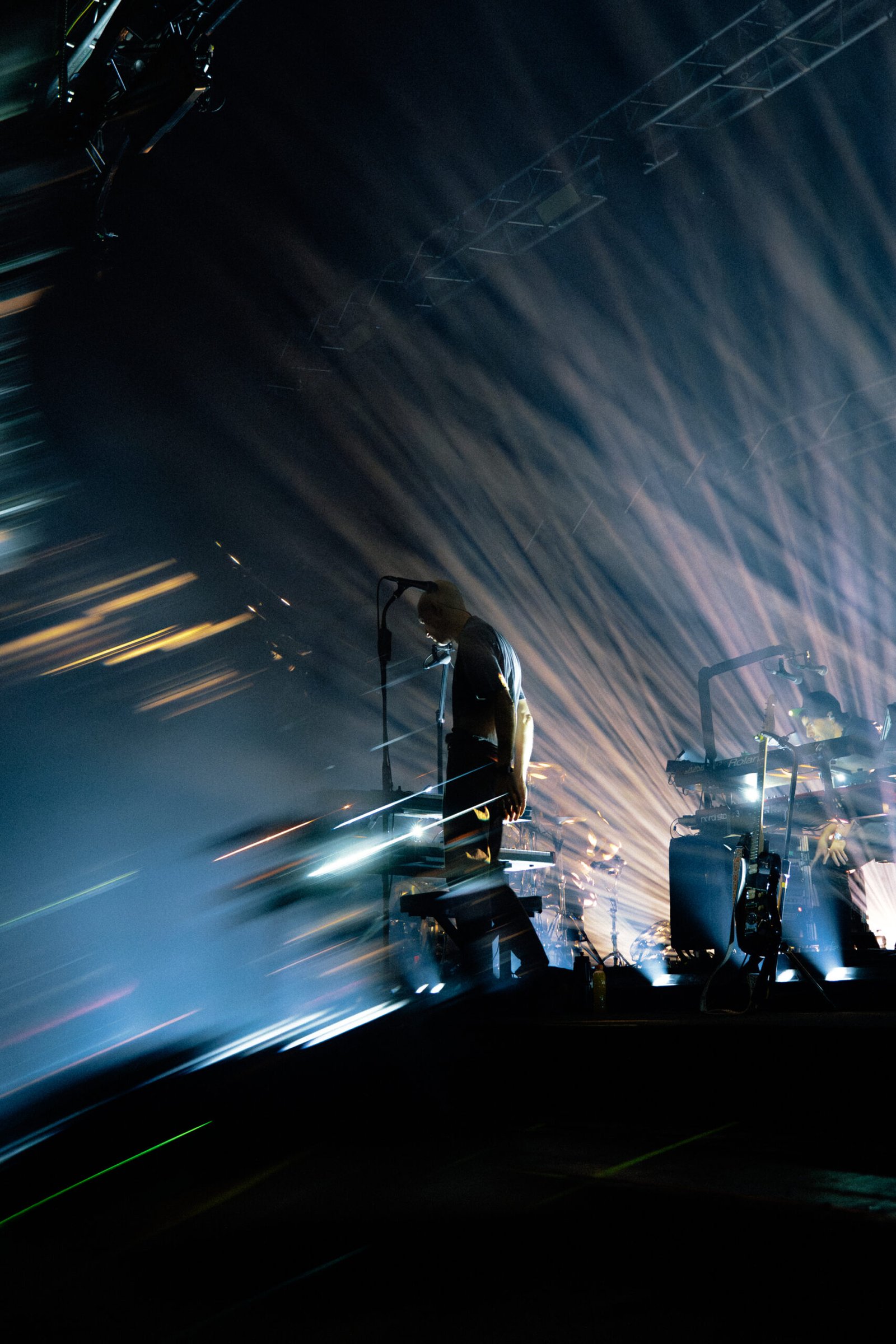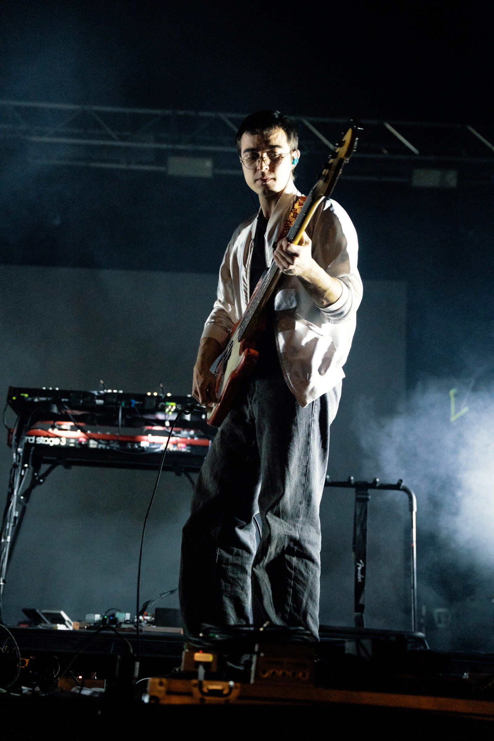 Con dieci minuti di ritardo, ecco che Contessa si presenta sul palco, senza cappello e occhiali. È magrissimo, a tratti ingobbito con una T-shirt scura. Ad accompagnarlo sul palco c’è la band storica: Valerio Bulla al basso, Simone Ciarocchi alla batteria, Francesco Bellani, alle tastiere e ai synth, Andrea Suriani – re mida del mastering – alla tastiera mentre la new entry Marcello Newmann, con il quale Niccolò condivide anche un altro progetto, Musicoterapia per Adulti, è alla chitarra e allo shaker. La scenografia è molto semplice con un ledwall alle spalle della band. Le luci sono volutamente molto scure impedendo di vedere in maniera nitida i volti dei componenti della band.