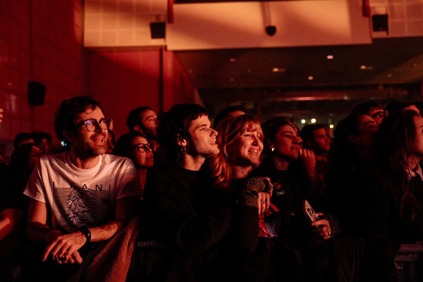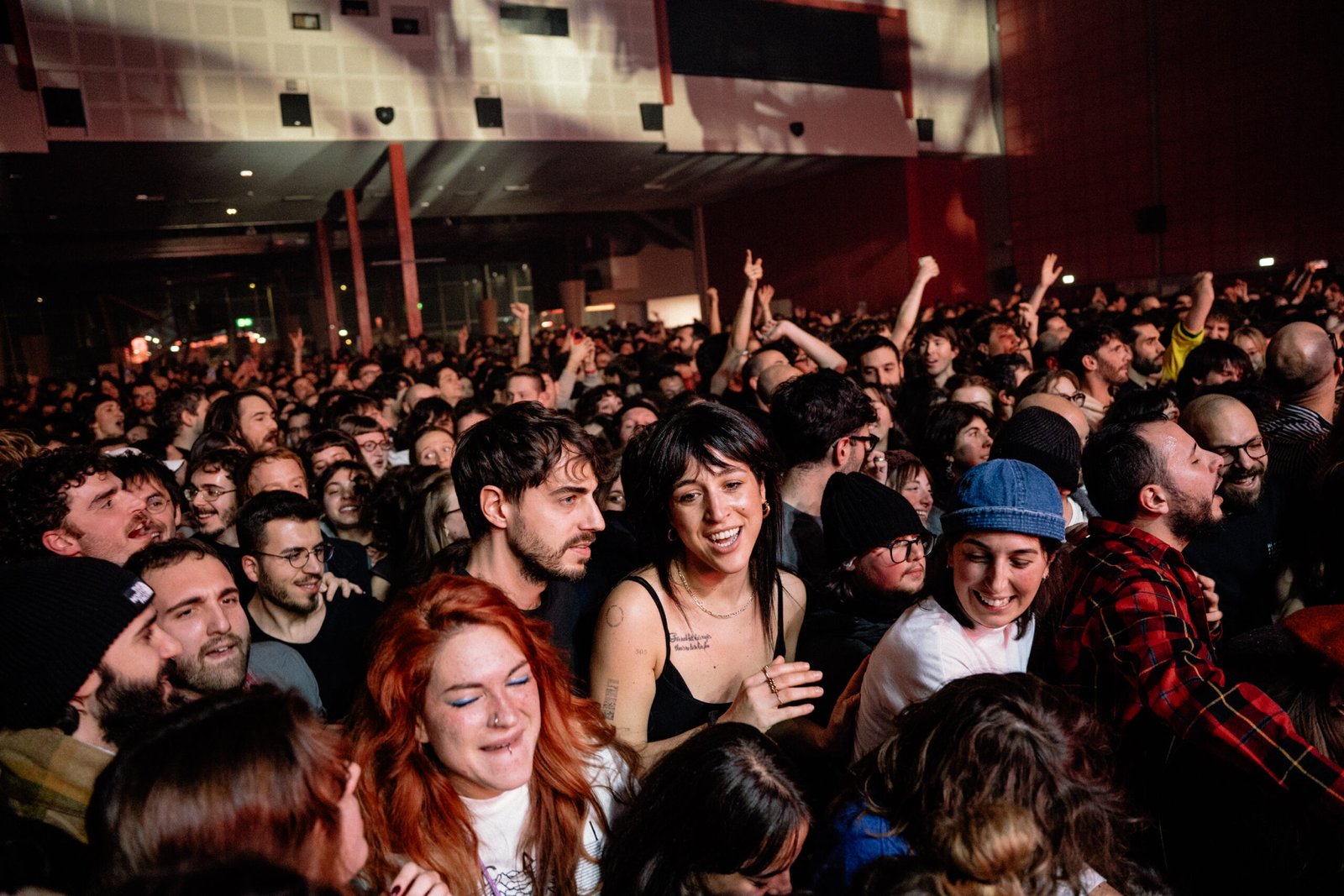 Alla fine del concerto di apertura, la gente continua a entrare in trepidante attesa. Il pubblico è molto eterogeneo, c’è chi ascolta I Cani fin dagli esordi e chi invece si è avvicinato ora per la prima volta, dopo nove anni di interminabile silenzio. Le prime file sono prese d’assalto da quest’ultima categoria mentre i simil-quarantenni sono nelle retrovie. Nel 2025, la parola hipster è probabilmente anacronistica, ma è quella che meglio descrive il pubblico presente.