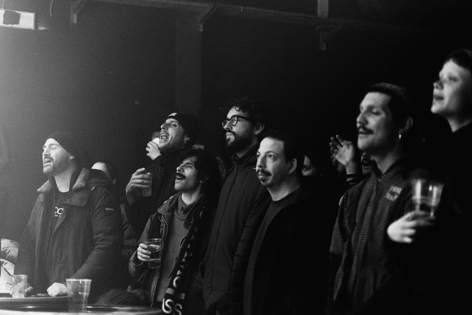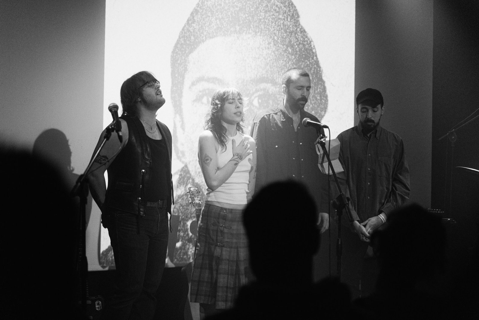 In un ambiente molto rilassato, si apre il live con l’ingresso di Lamante e gli altri componenti del gruppo: Elia Guglielmi alla chitarra elettrica e ai cori, Giulio Tisato al basso e Piero Pederzolli alla batteria. Insieme intonano, in stile canto partigiano, il primo mantra della serata: «Per un attimo dolore, poi solo l’amore». La frase viene ripetuta a cappella, con il supporto fisico e corale dei musicisti. Un inizio evocativo, che anticipa al pubblico quale sarà il leitmotiv della serata: una mano sul cuore e un grido in gola.