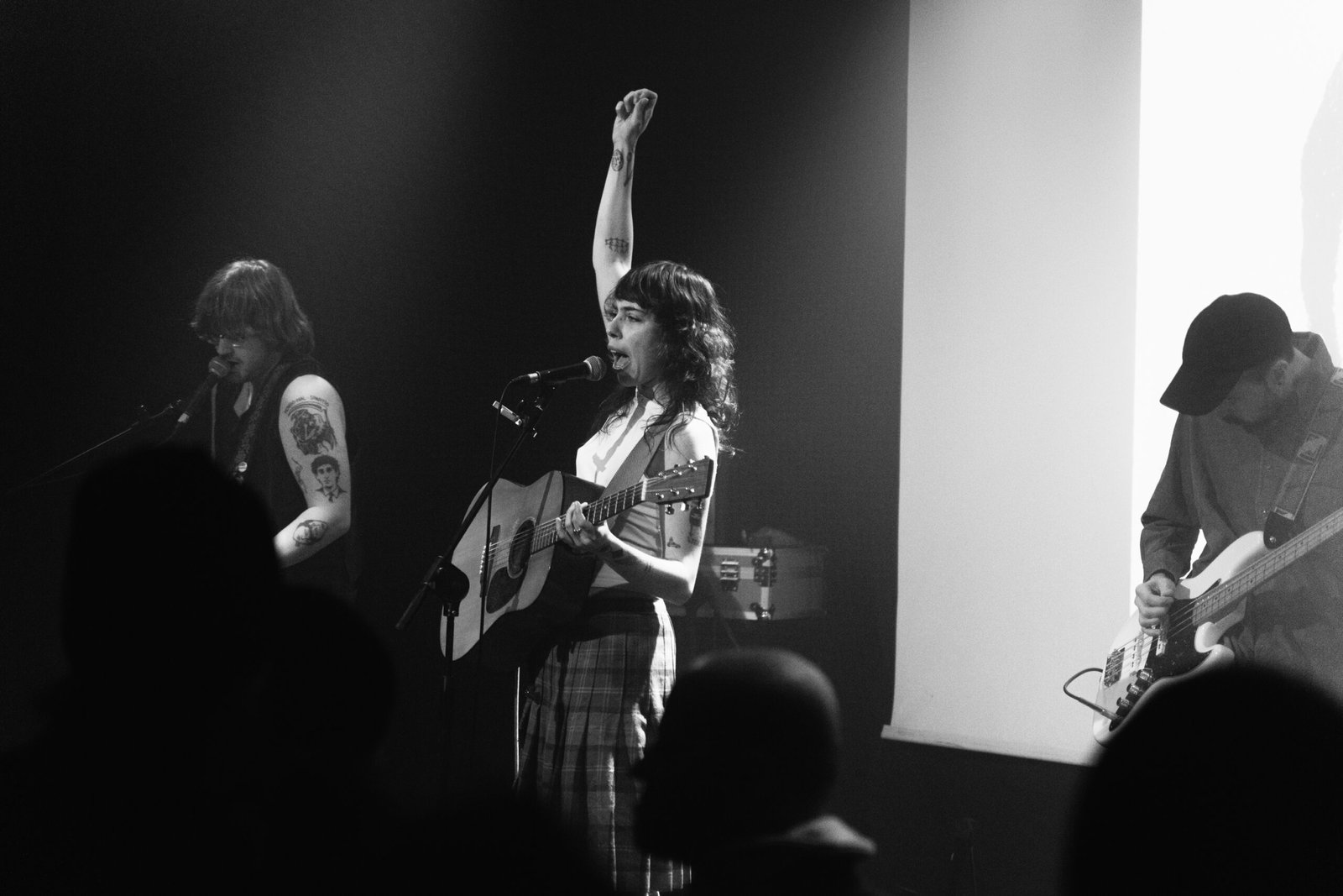 Dall’altra parte ci sono esplosioni in pieno stile punk che, in un paio di minuti di frequenze sature, scompigliano l’energia del pubblico: Ebano e Non chiamarmi bella ne sono l’emblema. Proprio su quest’ultimo, Elia Guglielmi scende dal palco per far partire un pogo, al quale il pubblico si unisce senza pensarci due volte. Senza dubbio, uno dei pezzi più forti dell’album.