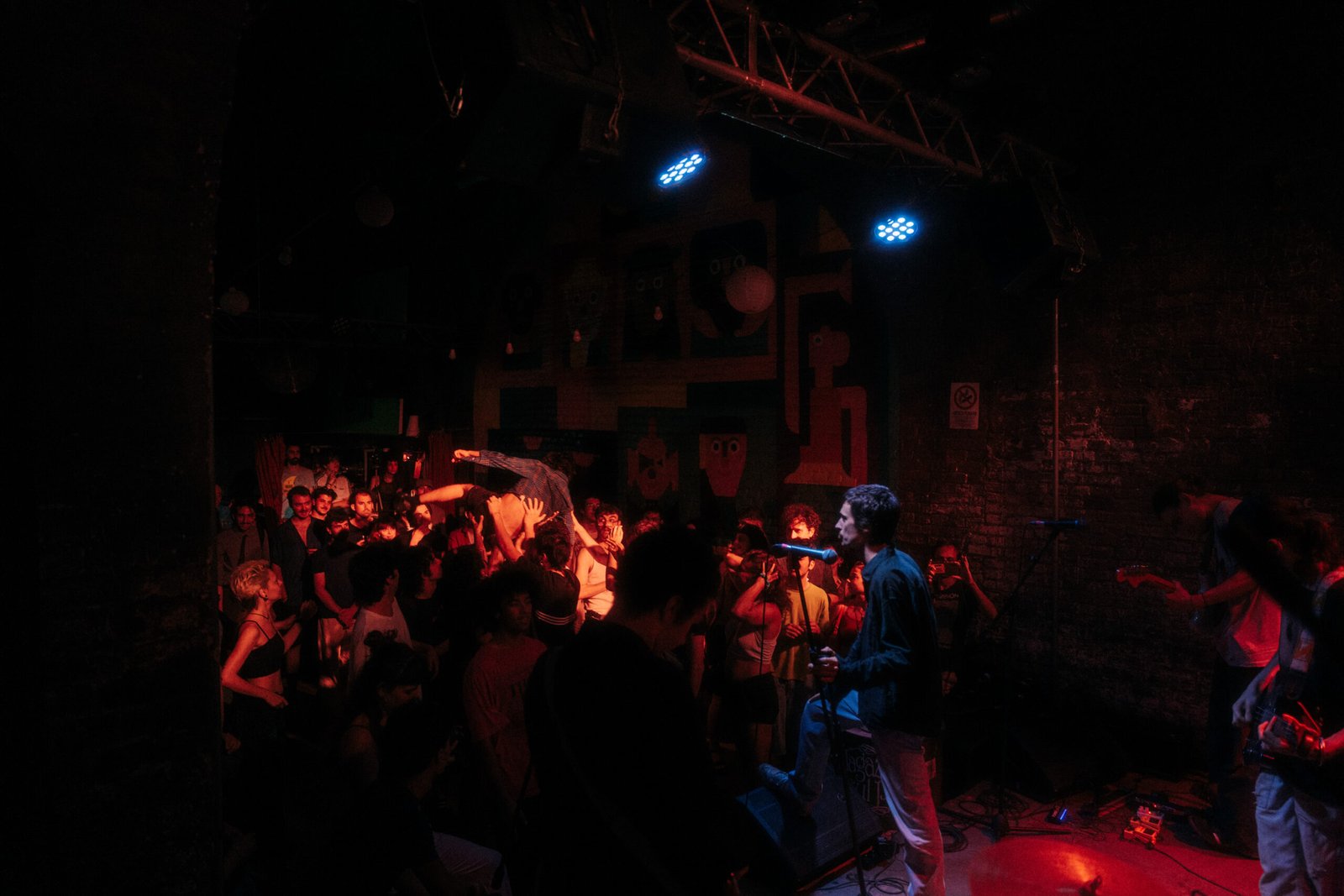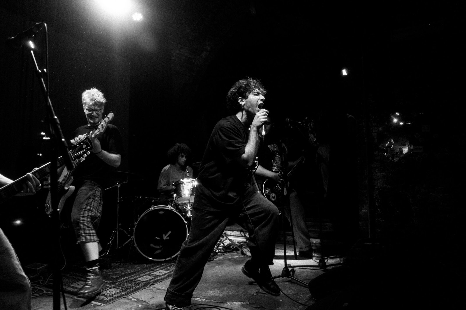 I primi a esibirsi sono i Subliminal, band HC che, nonostante la giovane età, ha già calcato più volte alcuni dei palchi culto della storica scena torinese, come l’immortale El Paso Occupato. Qui portano i pezzi del loro primo album Beata Innocenza — un titolo emblematico —, uscito da poco, e lo fanno con una rabbia e un’energia davvero esplosiva. La band maschera bene alcune imperfezioni esecutive con una presenza scenica dirompente: non stanno fermi un secondo, saltano ed esaltano quello che al momento è un pubblico non molto numeroso ma non per questo restio a entrare nel vortice.