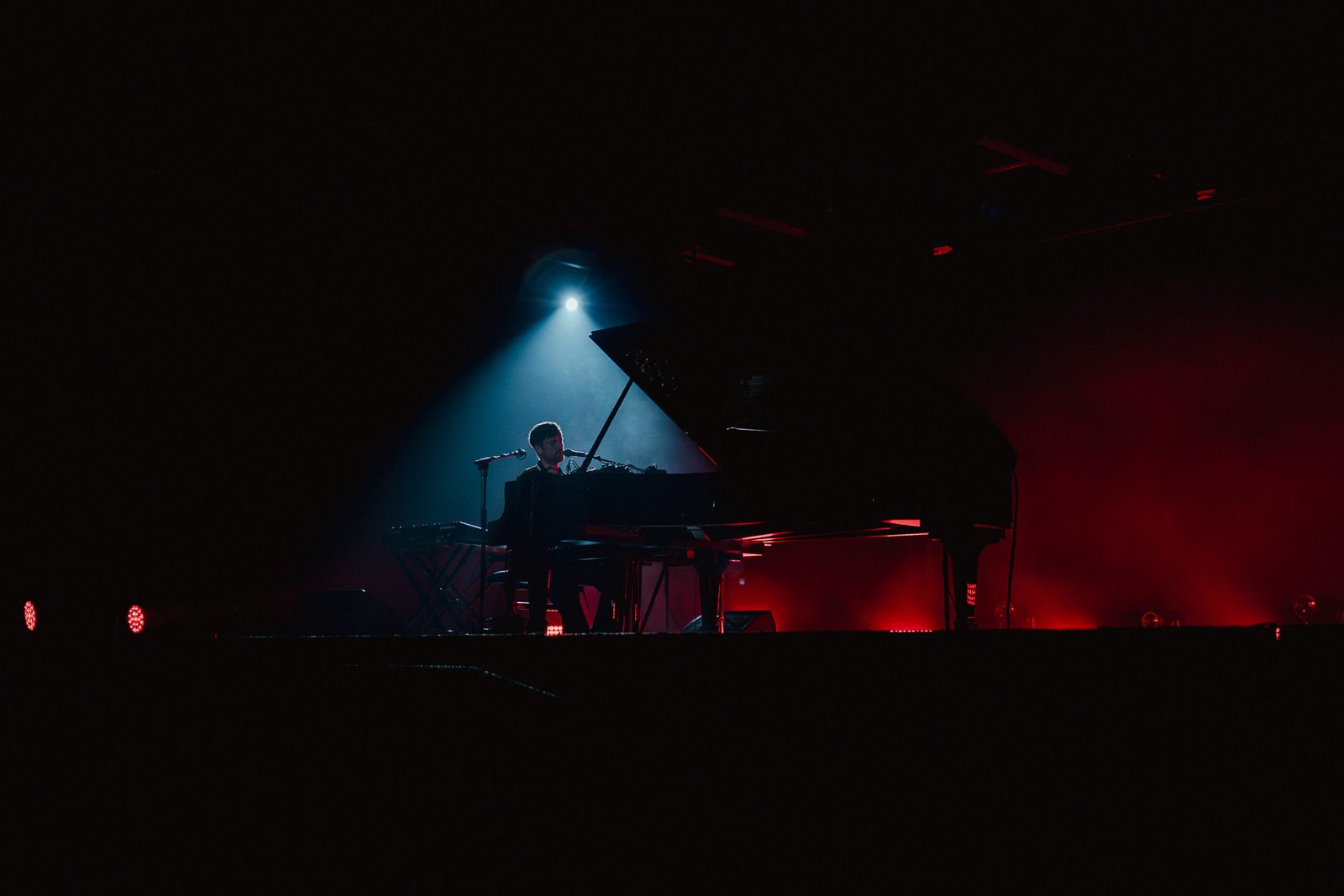 Nessuno urla come ai concerti da stadio, nessuno agita le mani. Da subito, il cantautore inglese impone quell’atmosfera liquida che avvolge la sala, fragile come un respiro sospeso. Il contesto delle OGR, poi, fa la sua parte: ha quel dono raro di essere un posto ampio ma intimo, solenne senza risultare freddo. Le luci sono leggere, mai invadenti. Il pubblico si raccoglie verso il centro, lasciando i lati un po’ più vuoti, come attratto da un campo magnetico. La sala non è pienissima, ma comunque ben popolata: per essere un concerto in piano solo, è un bel colpo.