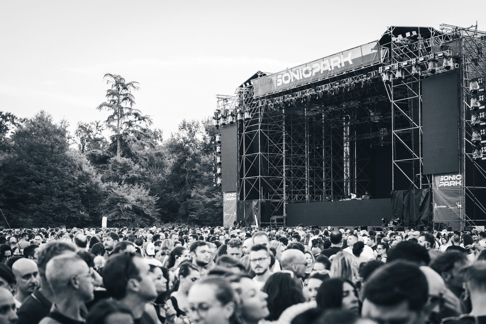 Dalla zona bar, dove ci troviamo per un pit stop prima dell’inizio, il colpo d’occhio è pazzesco: un tappeto di folla a perdita d’occhio, occhiali fluo, glitter, fango e mood da festivalone.