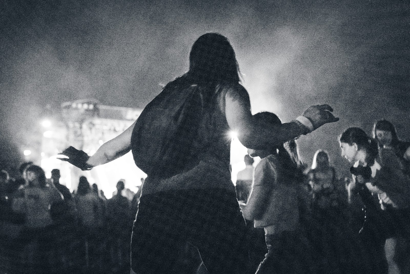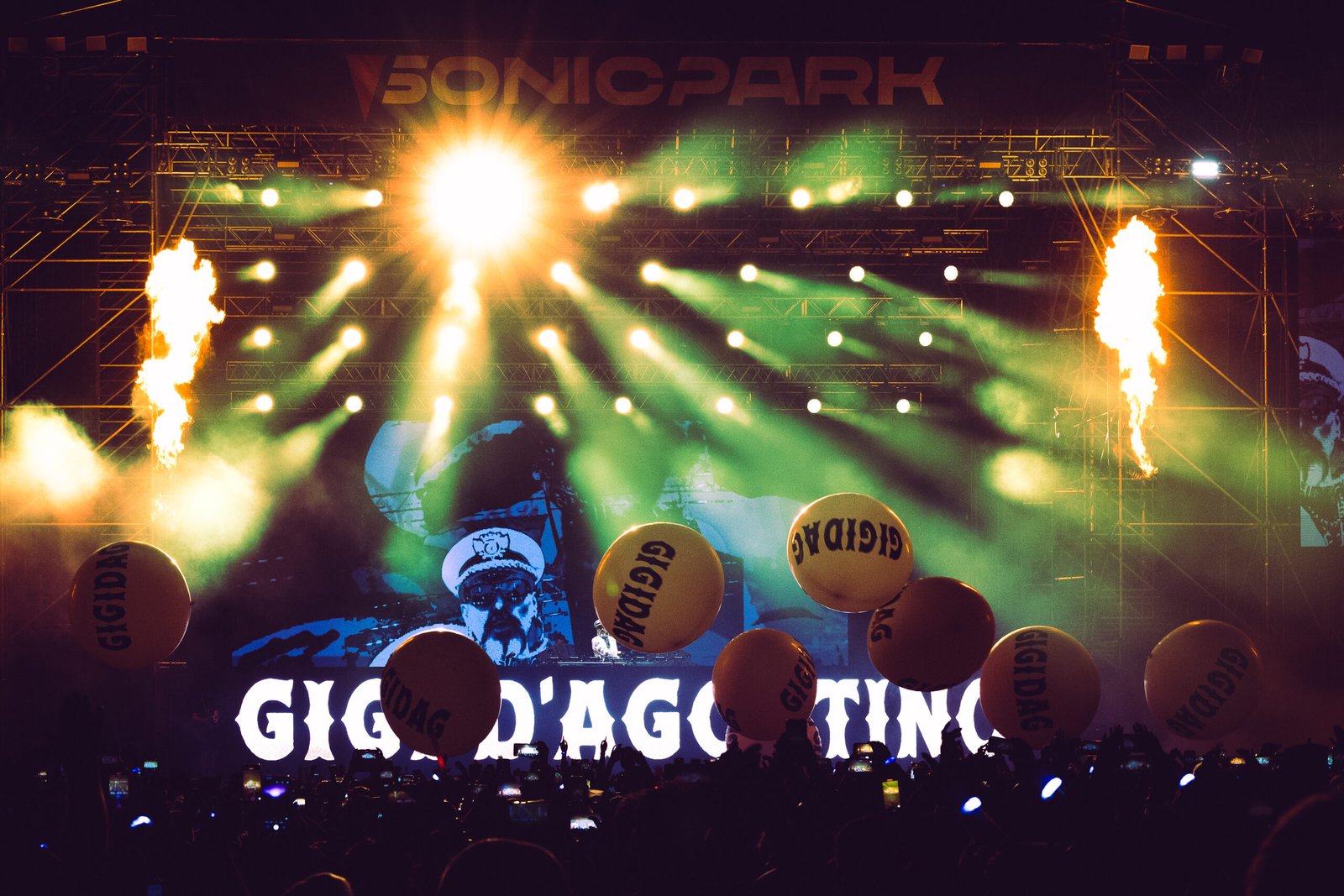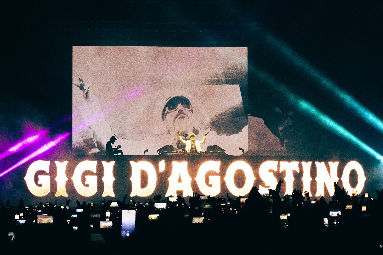 Luca Noise in apertura: storico collaboratore di Gigi Dag, catalizza l’attenzione del pubblico grazie anche a tre enormi maxischermi su cui viene trasmessa la sua immagine in bianco e nero stile boiler room. Si fa notte e l’eccitazione è palpabile, alle 22 Gigi arriva letteralmente invocato dalla folla al suono di «Un Capitano, c’è solo un Capitano!» in tenuta d’ordinanza: cappello da capitano, giacca bianca, cuffie e occhiali tempestati di strass e l’immancabile ciondolo con l’ideogramma giapponese della danza.