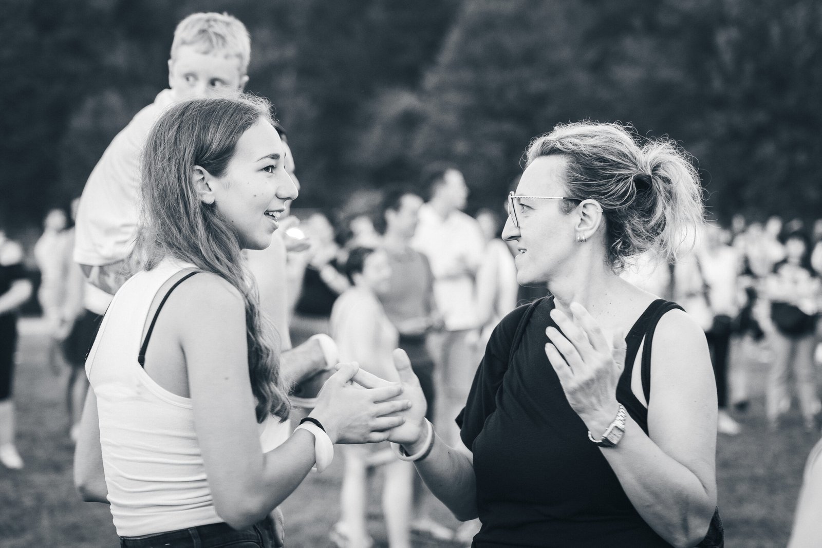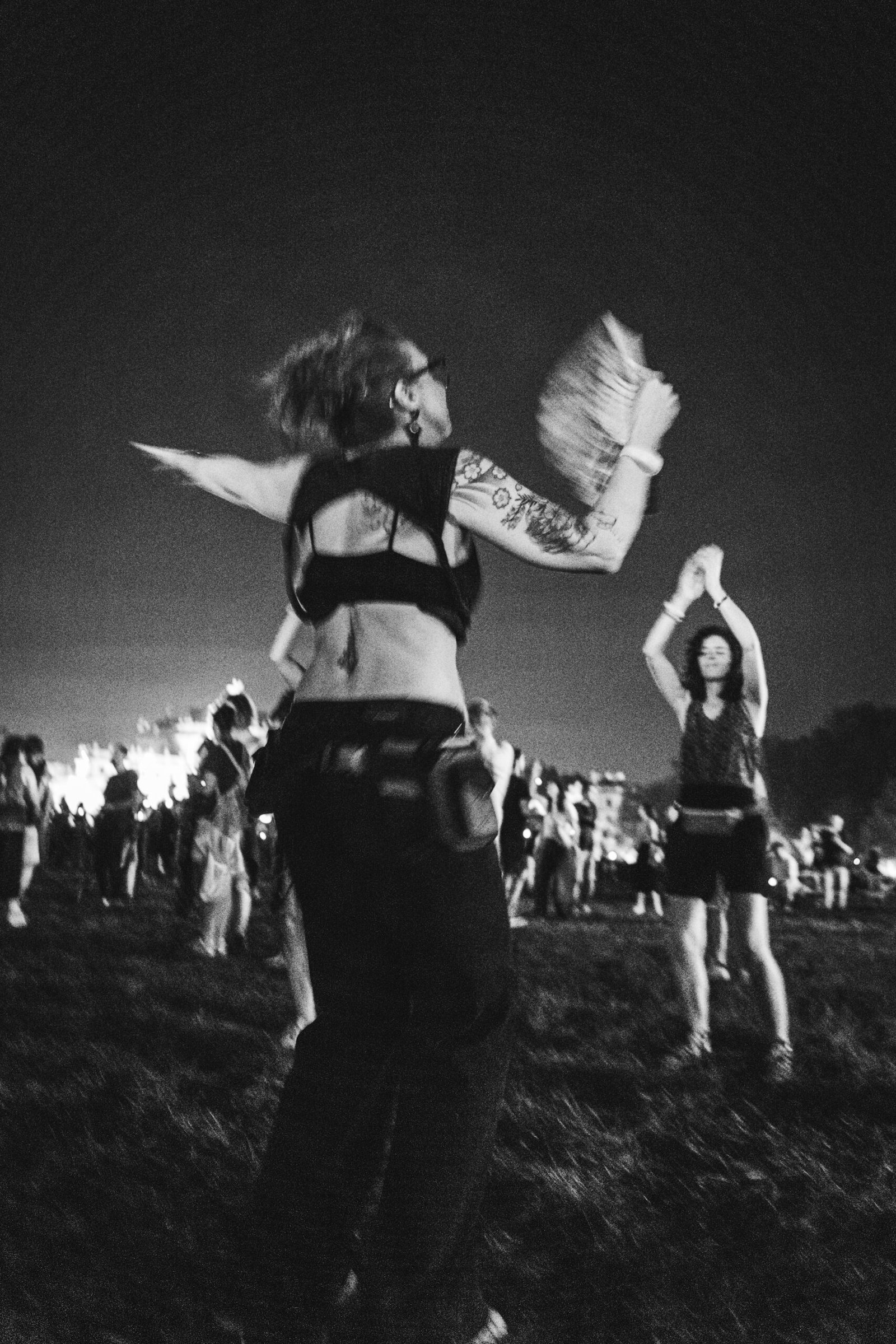 Rotolano tra il pubblico degli enormi palloni gonfiabili bianchi (e mentre mi appunto queste cose sul bloc notes vengo travolta da una maxi palla targata Gigidag, segue un eroico salvataggio degli appunti dal fango del pit), i giri si abbassano e l’atmosfera si fa sospesa: parte un arrangiamento quasi fiabesco de L’amour toujours. Il pubblico risponde con un boato, è il momento che tutti aspettavamo: siamo una sola grande onda di energia, un flusso luminoso che abbraccia Gigi Dag in consolle. I BPM sotto palco sono alti, Gigi continua a farci ballare con Shadows of the Night, singolo prodotto assieme al duo di dj e compositori italiani Boostedkids per celebrare i 25 anni di Another Way, del quale è stata mantenuta la sezione strumentale costruendovi sopra nuovi vocals. La serata volge al termine e Gigi ci regala un’infilata di pietre miliari come Bla Bla Bla, The Riddle e In My Mind, inframezzati dal tema ipnotico di Tetris e Gam Gam.