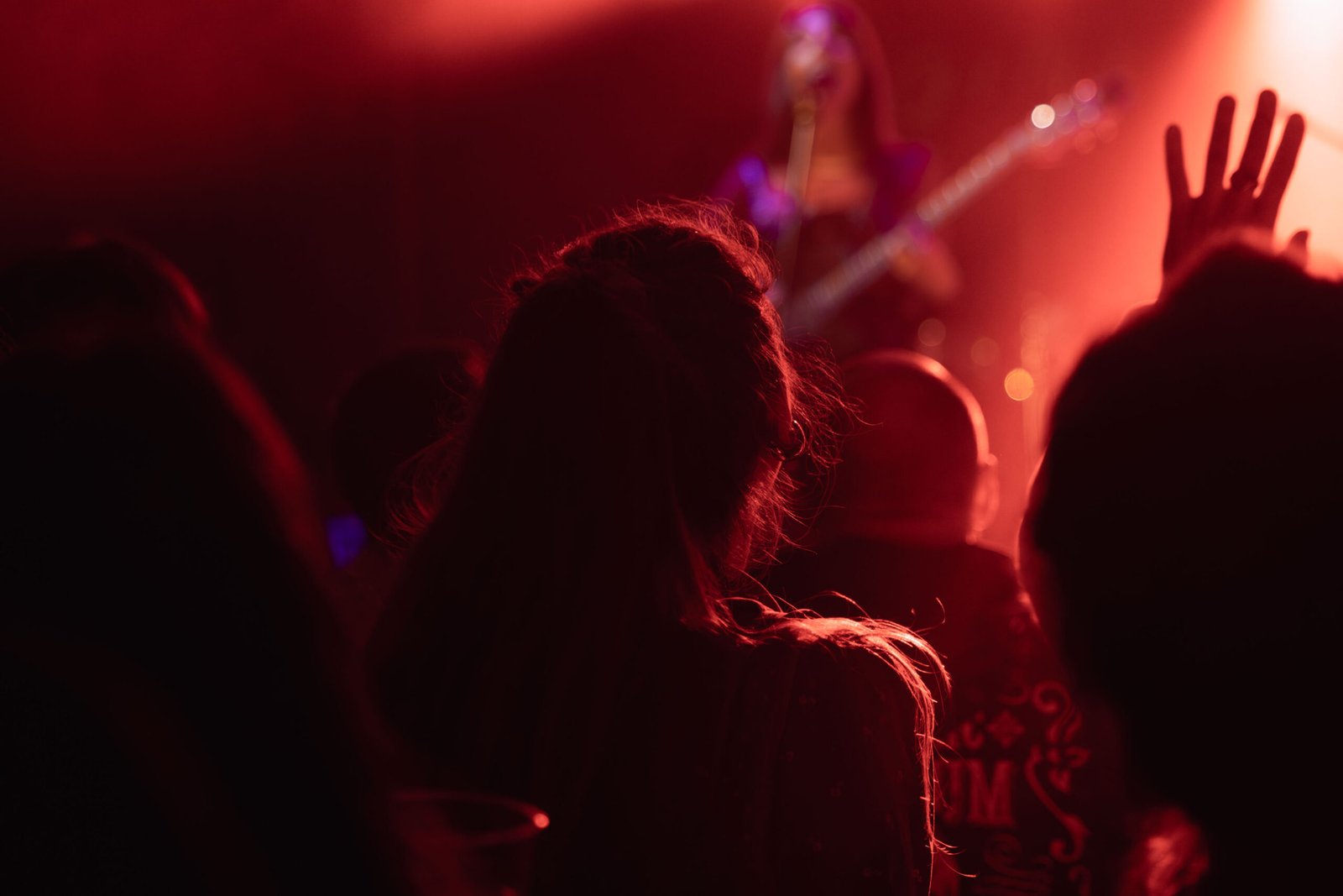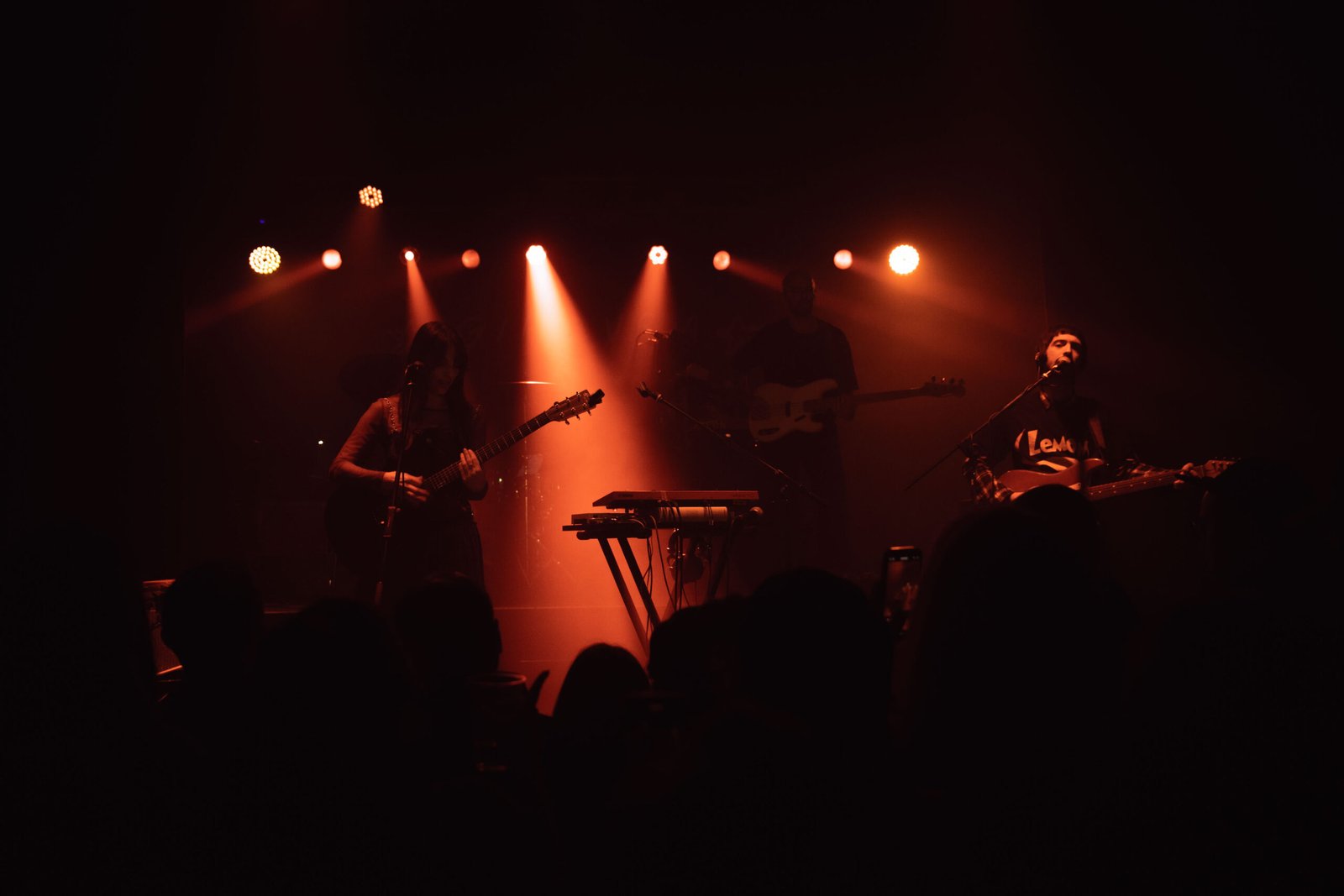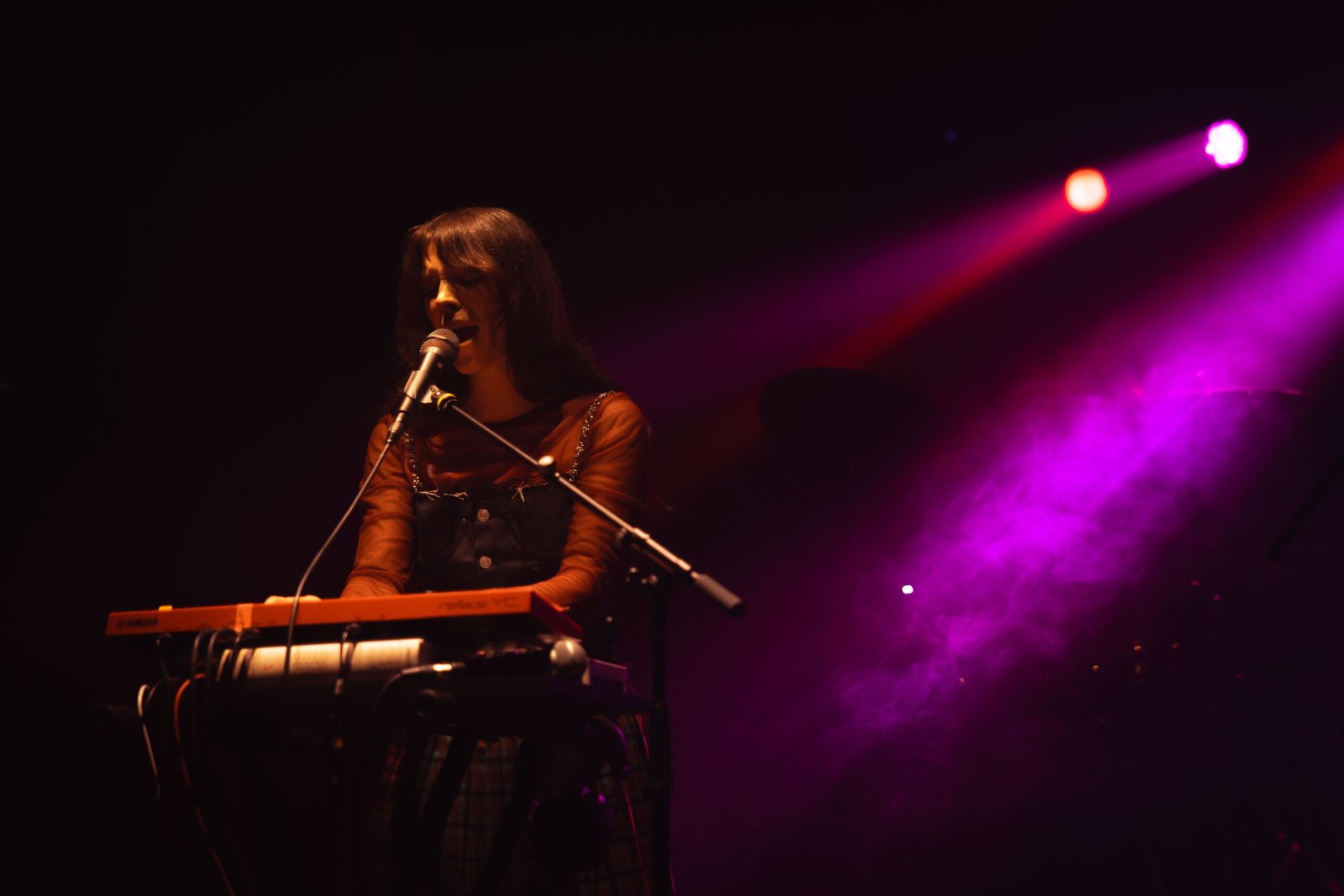 A rompere il silenzio sono i componenti della band, in una formazione nata in concomitanza con lo stesso Femina – Gabriele Mellia al basso, Marco Fugazza alla batteria e Domenico Finizio (già membro dei Tropea) alle chitarre –, seguiti poi da Ginevra che li raggiunge dopo una breve intro strumentale per inaugurare il set. La prima parte del live è tutta dedicata alle nuove sonorità, il pubblico si scalda gradualmente fino ad accendersi sulla roboante My baby!, manifesto musicale delle recenti esplorazioni. Il brano che invece racchiude il contenuto politico dell’opera, nonché la title-track Femina, si fa desiderare per tutta la serata prima di trovare sfogo nell’intenso finale. Attingendo sia dal disco d’esordio Diamanti (2022, Asian Fake) che dall’EP Metropoli (2020, Asian Fake), la sezione centrale del concerto si configura piuttosto come una retrospettiva. Mentre la band si ritira momentaneamente, Ginevra è libera di scatenarsi decorando le sue vecchie produzioni grazie all’uso di sintetizzatori e distorsori vocali. La parentesi club passa anche per brani meno popolari come Calamite prima di esaurirsi con l’emotiva Rajasthan. Scritto originariamente per il fratello, questo canto di riconciliazione suona come un’invocazione speranzosa che la cantautrice decide di rivolgere a tutto il popolo palestinese.