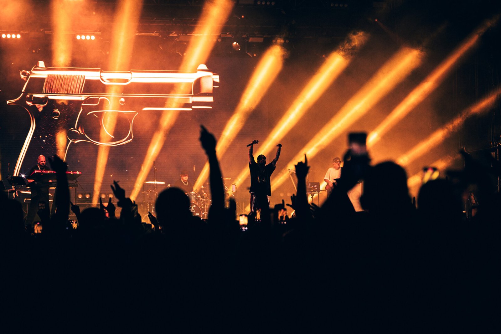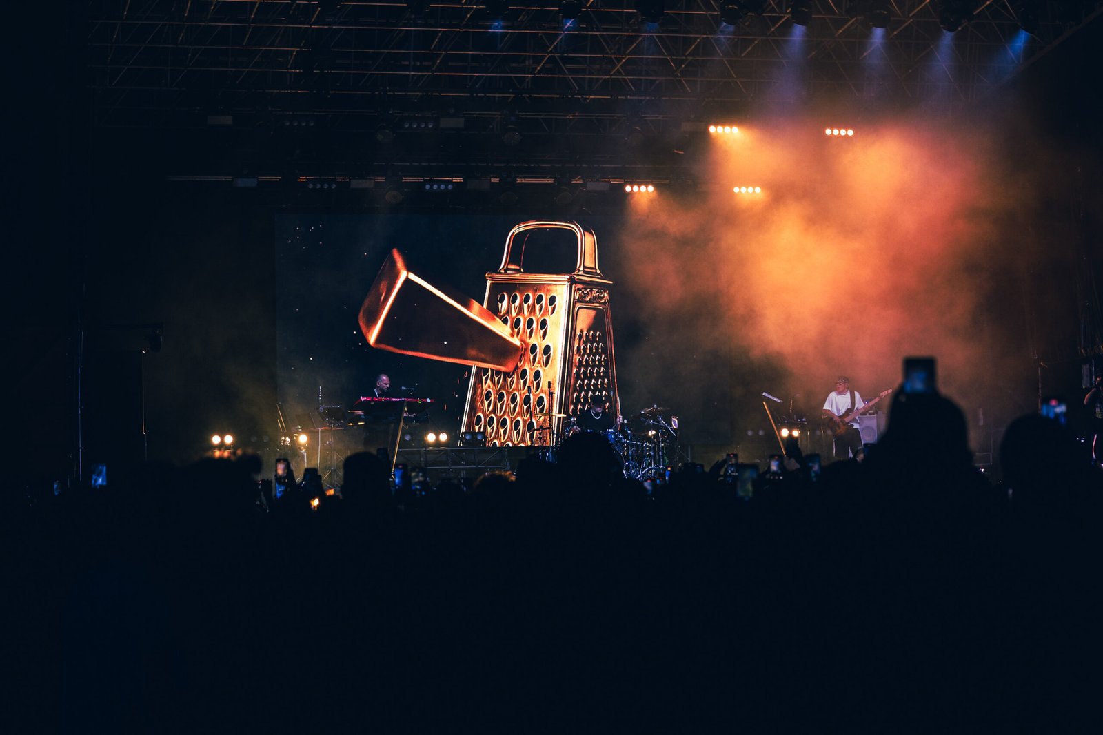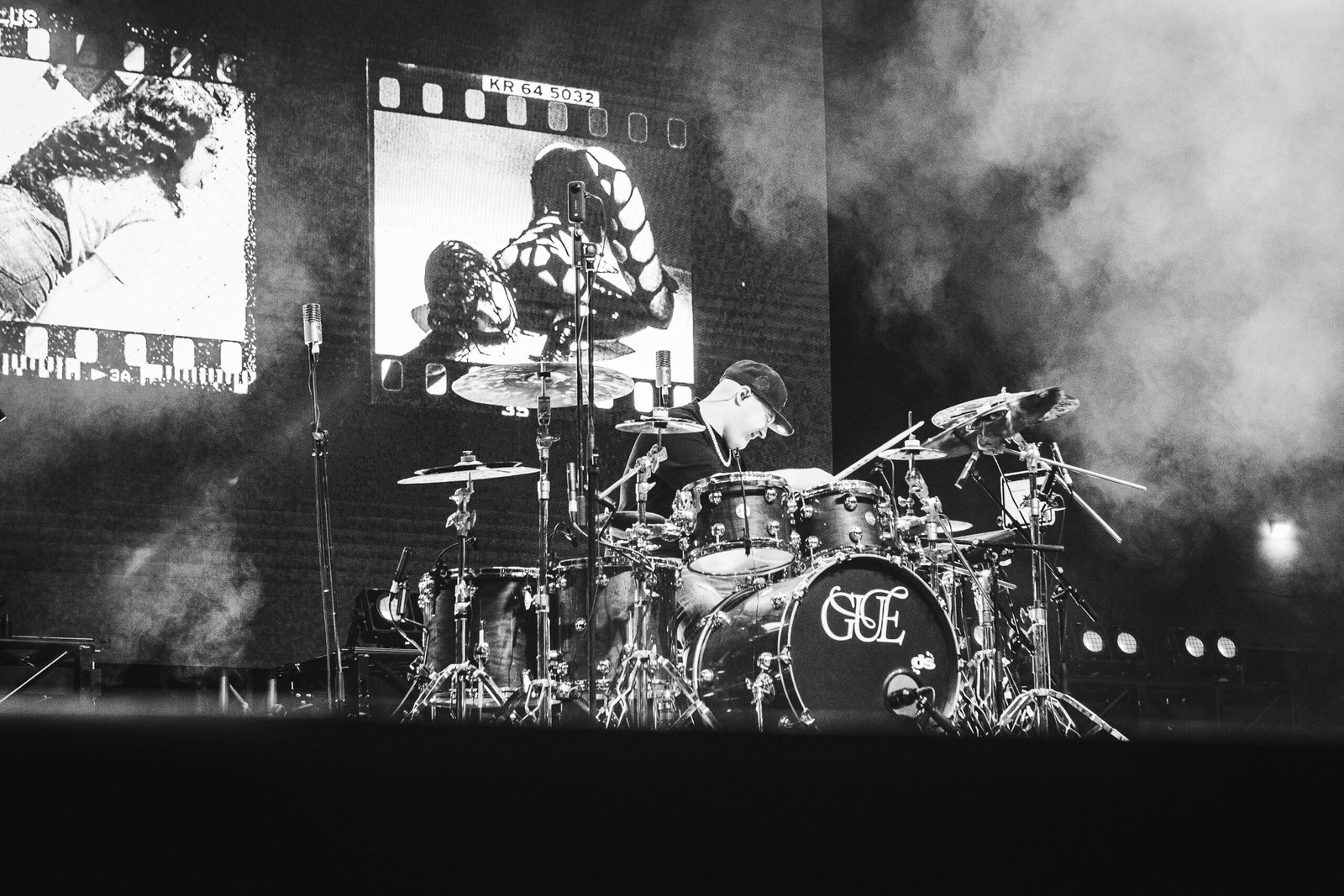 Nessun artista d’apertura. Alle 22, puntuali come un orologio svizzero – coerente con l’attuale residenza del rapper –, un cortometraggio breve ma pacchiano e spaccone al punto giusto – come quei film action ad alto budget con Jason Statham brutti ma divertenti che tanto piacciono a Cosimo insieme a, non ci crederete mai, Kubrick e Cronenberg – introducono Guè e una band di tre elementi: basso (Cristian Capasso), batteria (Viky Landolfi) e tastiere (Max D’Ambra). I cori da stadio che riprendono il motivo di Acqua e sapone degli Stadio introducono Meravigliosa, una delle hit dell’ultimo album Tropico del Capricorno, un instant classic nella vasta discografia della G. Presente e passato si intrecciano come se nulla fosse, perché subito dopo tocca alla dirompente Il Ragazzo D’Oro che ha 14 anni e sembra uscita ieri da quanto è fresca. La gente impazzisce; come direbbe un amico, questa canzone andrebbe studiata. E ha ragione, perché in un attimo Guè ha chiarito, con l’immediatezza della sua musica, che il rap fatto bene non invecchia.