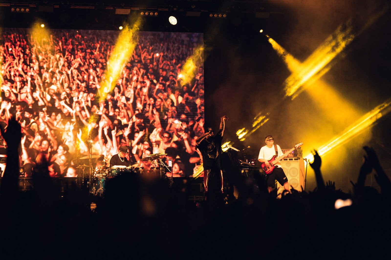 Questa trasversalità della musica e dell’icona di Guè rende il suo pubblico intergenerazionale: svettano fan di vecchia data, ovvero ragazzi dai 27 in su – quando ancora il rap era tristemente e ignorantemente maschiocentrico – che sanno chi erano i Sacre Scuole, e ragazze – ma anche ragazzi – che con grande probabilità hanno scoperto il rapper su Tik Tok; ovviamente sto semplificando, perché poi davanti a me la ragazza scatenata che ha cantato ogni parola di ogni canzone dall’inizio alla fine col fidanzato affianco relegato ai video col cellulare c’era, e non era neanche una circostanza così tanto rara.