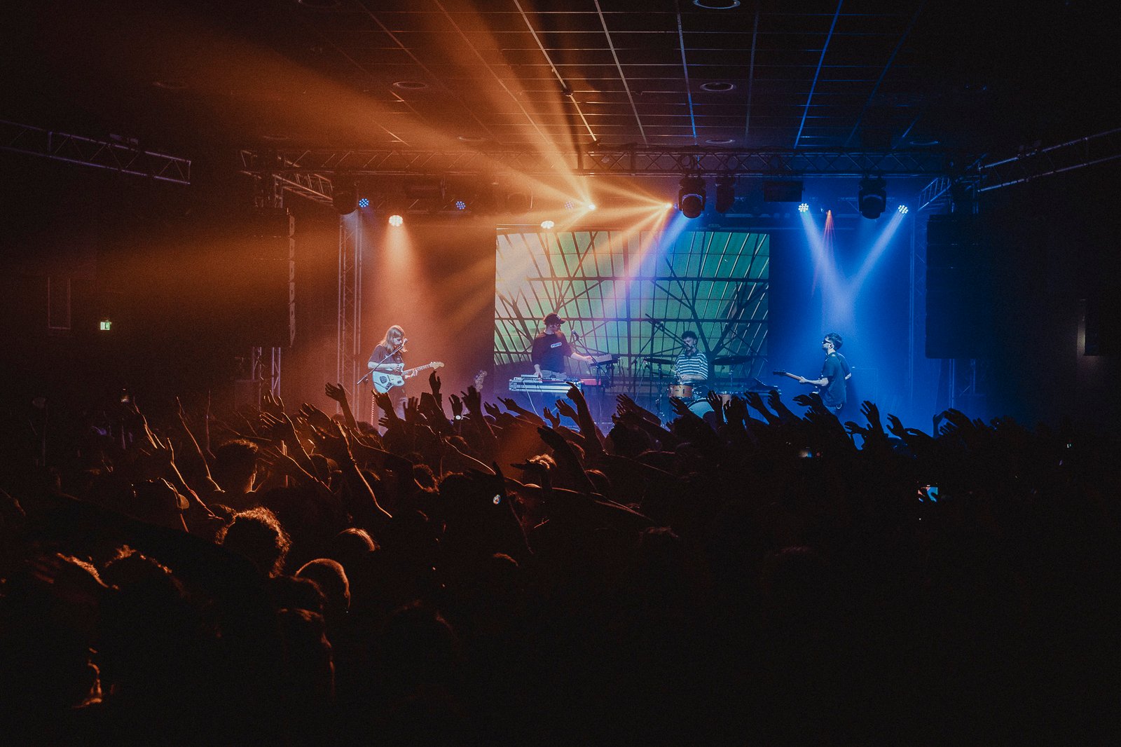 Eccoli salire sul palco, Carlo Corbellini (voce e chitarra), Andrea Cadel (basso e synth), Giovanni Dodini (batteria) e Giulio Patarnello (tastiere e synth). La disposizione dei quattro musicisti è quanto di più democratico si possa vedere su un palco. Nessuno sovrasta l’altro, neanche Corbellini, che è un frontman silenzioso, ligio al suo dovere – come del resto gli altri tre membri della band –. Sul lato sinistro del palco esulta a pugni chiusi, scuotendo le braccia, scatenando la gioia dei presenti a ogni gesto. Ma è quando le sue mani imbracciano la chitarra e i suoi piedi entrano in contatto con la pedaliera che inizia la magia.