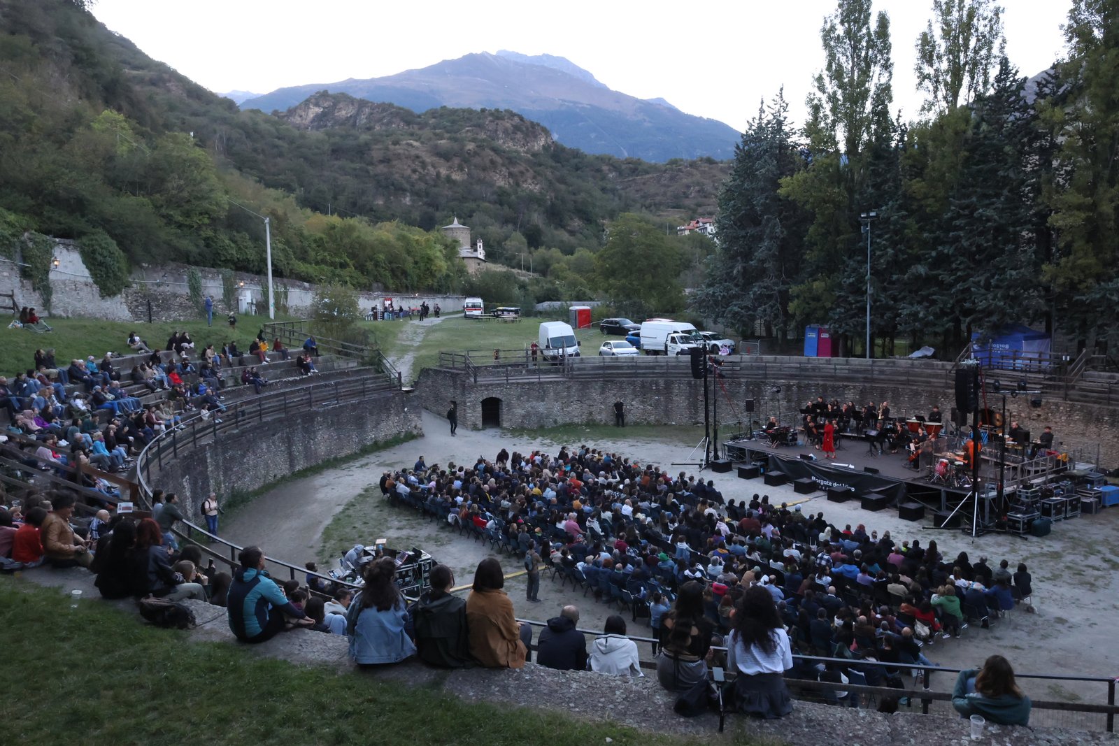 Aria!, il brano originale che conclude la colonna sonora, è l’apertura della scaletta del concerto all’Anfiteatro Romano di Susa, luogo scenografico dell’antica Segusium, location di questa e altre serate della rassegna Borgate dal Vivo. Margherita sale sul palco in abito rosso, occhiali scuri tenuti solo per il primo pezzo, e una grintosa energia che non ti aspetti da una cantante che rivela di essere stata colta dal primo malanno di stagione («ho preso la Tachipirina 3000, mi verrà un infarto!» scherza). La scaletta va a scavare fino ai tempi degli esordi: ripropone Castagne, che fu la prima canzone su cui lavorò appena giunta a Torino, prima insieme a Bianco e poi con il suo attuale producer Dade, entrambi presenti in prima fila e più volte ringraziati durante il concerto.