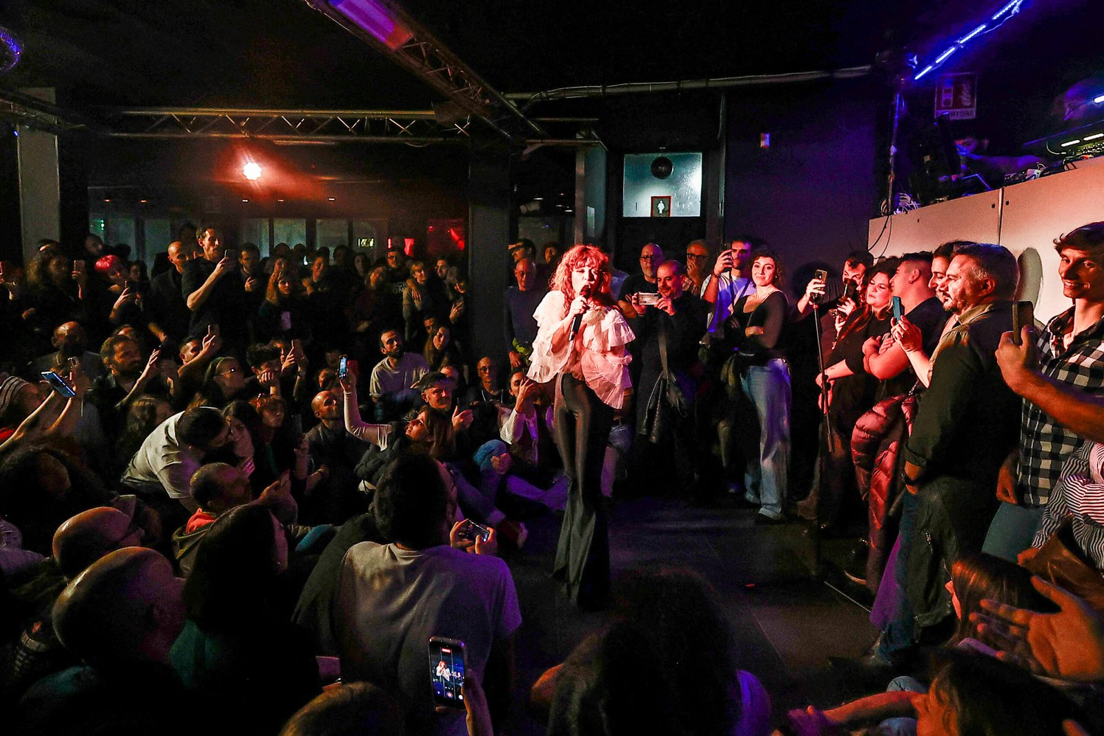 Questo paragone un po’ azzardato, ce ne rendiamo conto, è però funzionale ad affermare un concetto molto semplice. La cantautrice, romana ma trapiantata a Milano, ha macinato un altro meritato sold out con un live intenso, energico e travolgente, in cui le sue indubbie abilità artistiche si sono unite a quelle – altrettanto indubbie – di performer. Un connubio decisamente esplosivo in grado amalgamare alla perfezione una scaletta lunga – più di venti canzoni per un’ora e mezza di musica e spettacolo – e varia, formata da una selezione quasi completa dei pezzi dell’album d’esordio Risorgimento e dei precedenti singoli ed EP. Ad aprire la serata sono state le introspettive canzoni del cantautore pisano-torinese Pugni, suonate interamente in acustico: chitarra e voce.