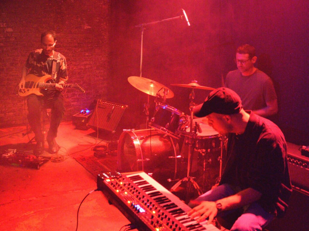 M: Sì. E secondo me continua anche un po’ per gioco. Non voglio parlare di analisi o di terapia perché so che sei psicologa (ride), però chi è che diceva che in analisi non esiste l’errore? Boh, vabbè: in analisi non esiste l’errore, punto primo. Lo dico io. Secondo punto: Winnicott dice che il gioco è l’espressione più autentica, quindi il fatto che noi siamo in tre e che ci sia la necessità di comunicare tra noi, già di per sé getta le basi per il gioco. E così, anche il pensiero «io faccio questa cosa, vediamo come reagiscono», oppure «ah! lui sta facendo questo, allora faccio qualcosa che gli risponda»: tutto questo assomiglia al modo in cui si gioca. Non è una cosa che puoi fare da solo. E per rimanere sul tema dell’analisi, un’altra cosa che mi piace è che ci diamo un timer, perché dal vivo non vogliamo andare troppo per le lunghe. Questa cosa, però, quando suoniamo la domenica non la usiamo: dura quello che dura.