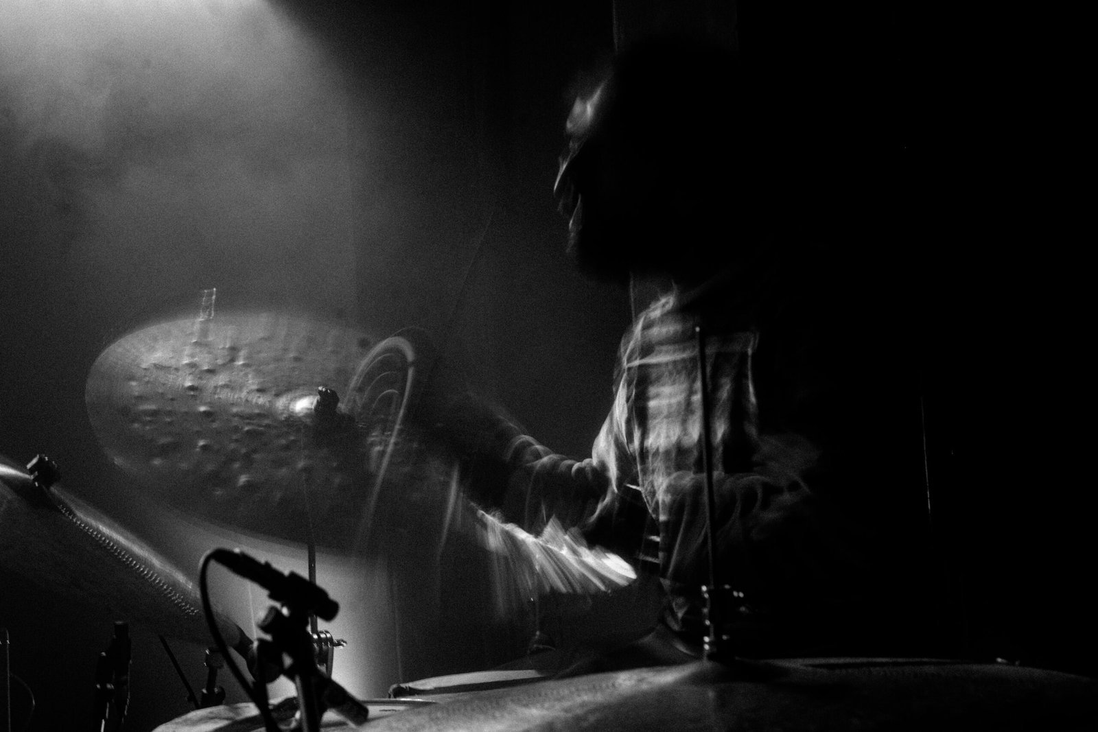 Gran parte del merito spetta comunque anche ai due compagni d’avventura di Silverio sul palco di Spazio211, entrambi torinesi e quindi in casa per la serata. Stiamo parlando di Manuel Volpe ai synth e alle elettroniche, produttore dell’album d’esordio Hrudja e già noto ai cultori del circuito underground con la Rhabdomantic Orchestra, e Nicholas Remondino alla batteria, altro nome di spicco della scena grazie alle collaborazioni con Vieri Cervelli Montel e altri. I due, accompagnati da una strumentazione invidiabile, hanno dato il proprio fondamentale contributo per rendere il concerto ancora più potente; da segnalare, tra gli stratagemmi utilizzati, la chicca del piatto suonato con l’archetto del violoncello.