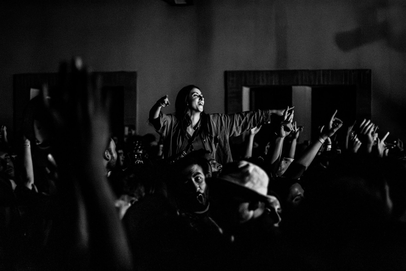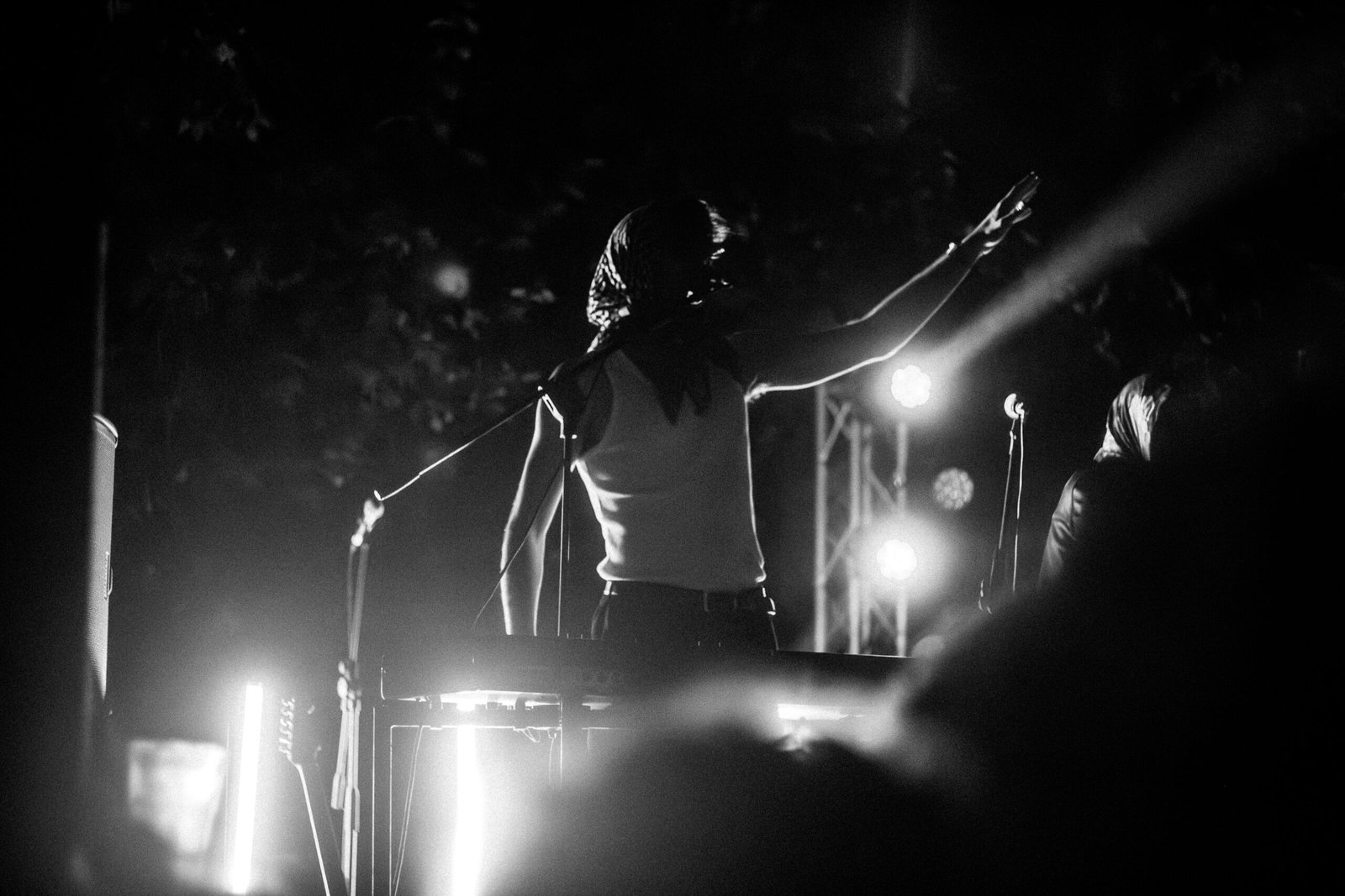 Volti coperti, occhiali da sole e sonorità disco sono accompagnate da brevi frasi in italiano, a volte cantate, altre volte parlate. Il loro motto è “peace, love and baci”, ma anche “ballare, ridere e fare l’amore”. Cascina Falchera si è prestata benissimo a questo tipo di serata: una location romantica ai confini della città, nelle campagne torinesi. I Dov’è Liana si sono goduti un pubblico scatenato ed euforico, così tanto esaltato da compiere un’invasione di palco che ha costretto lo staff a interrompere il concerto – ormai avviato alla sua fase finale – per far scendere l’orda selvaggia di fan. Prima di suonare il loro ultimo pezzo, i tre ragazzi hanno esordito così: «Possiamo farne ancora una? Grazie, vi chiediamo di non salire più sul palco, anche se è stato bellissimo».
