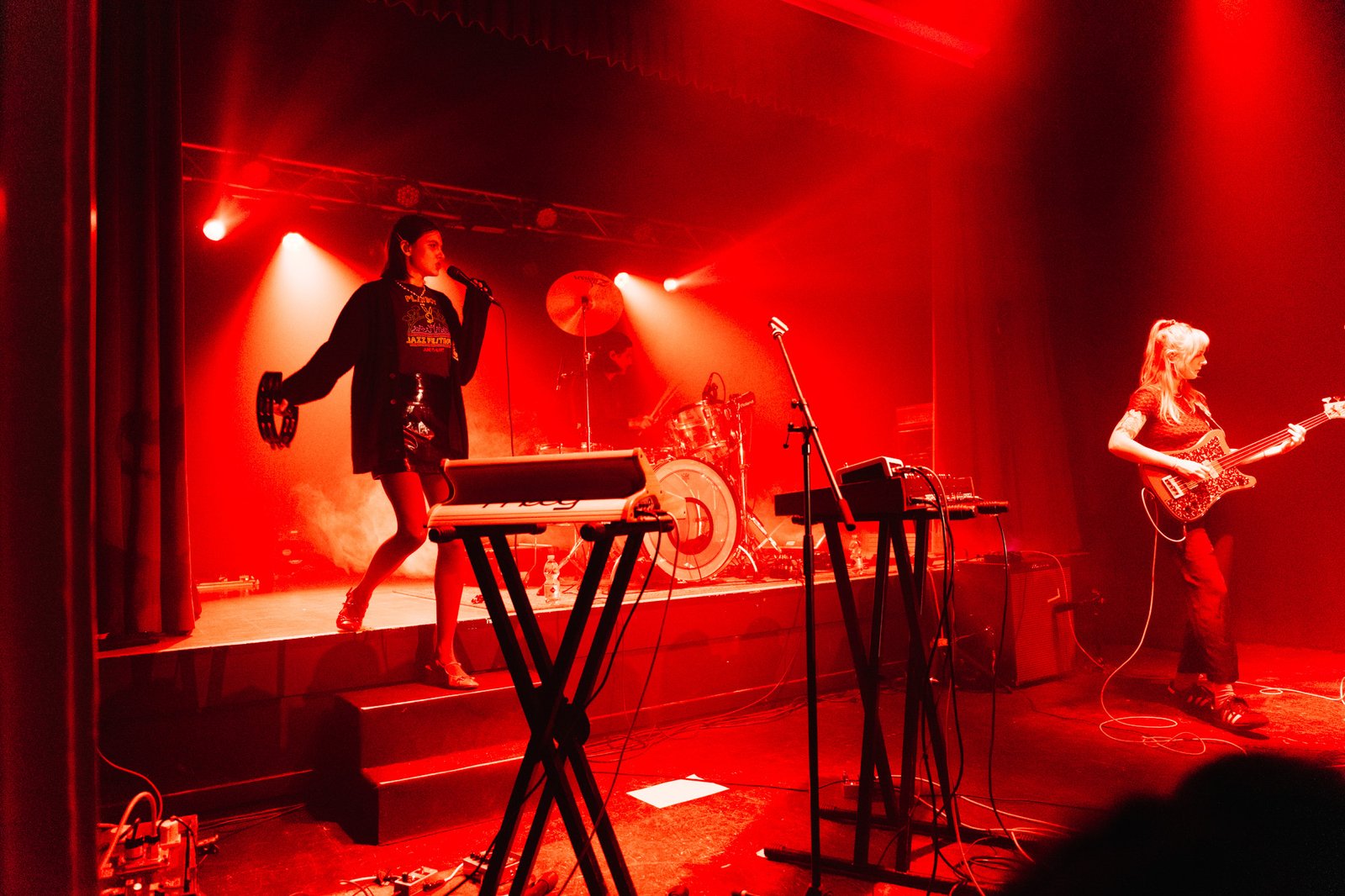 Al rientro della pausa, il set è pronto ad ospitare le Automatic, ovvero Izzy Glaudini (synth, voce), Halle Saxon (basso, voce) e la sfortunata Lola Dompé (batteria, voce) che in questa parte finale del tour è stata sostituita poiché malata. In pochi anni il trio post-punk dalla forte influenza synth-wave si è guadagnato un discreto seguito in tutto il mondo. Con un lieve anticipo sull’orario programmato, le losangeline si presentano a un parterre ormai gremito suonando Calling It. Si tratta solo di uno dei tanti classici ripescati dal loro fortunato album d’esordio Signal (2019, Stones Throw).