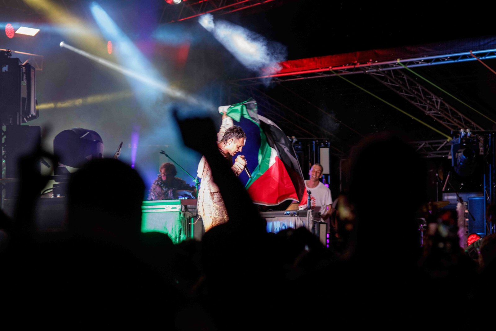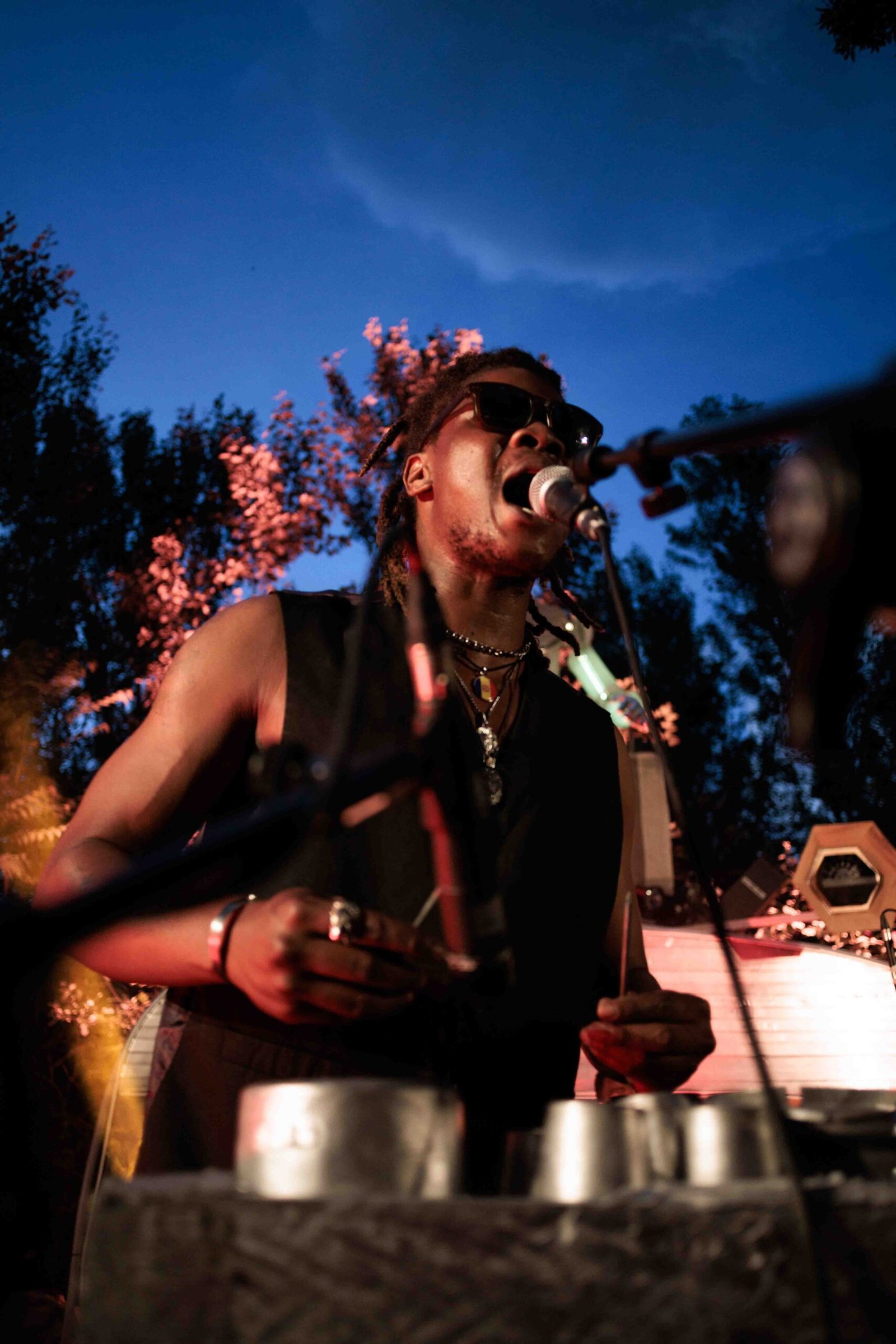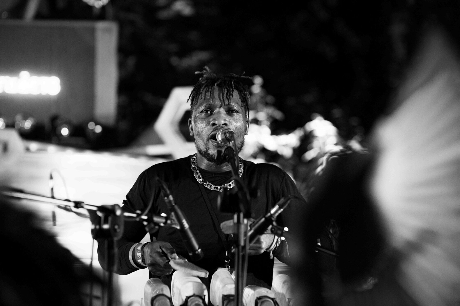 Successivamente è stata la musica a prendere spazio. Il primo a salire sul palco è stato Stasi, davvero una bella scoperta: una voce grintosa accompagnata da sonorità che spaziano tra l’elettronica e l’hyperpop, con un mood a metà tra Frah Quintale e gli Iside; a seguire Stramare: testi interessanti e glitch sonori in una performance carica d’intensità. Tra una birra e l’altra, mentre addentavo il mio panino, una cassa diritta mi scuote i timpani, sono i Dame Area: duo barcellonese che mi ha fatta letteralmente alzare dalla panca per raggiungere il pogo, con un sound techno e un’attitudine punk che hanno infuocato lo stage. Con il calar del sole – e l’accendersi delle suggestive luci sul palco – è il turno dei Kin’Gongolo Kiniata: direttamente dal Congo, con strumenti fabbricati dai musicisti in persona, hanno reso Apolide un melting pot di culture diverse a ritmo funky.
