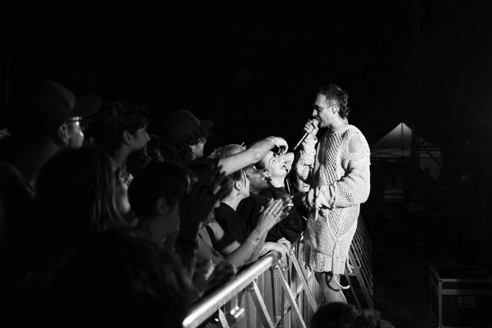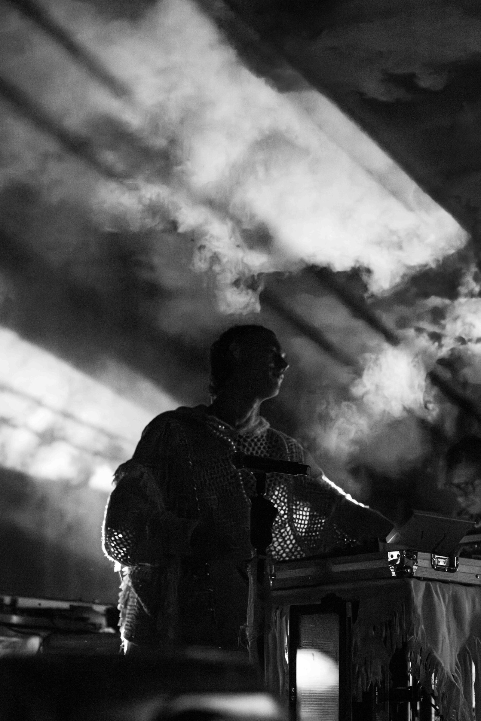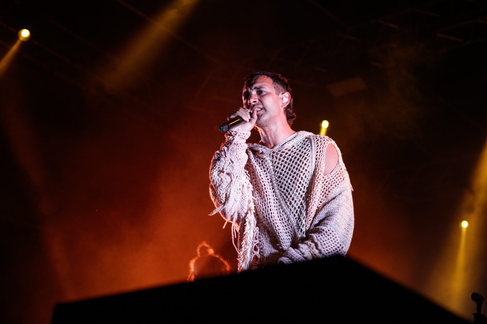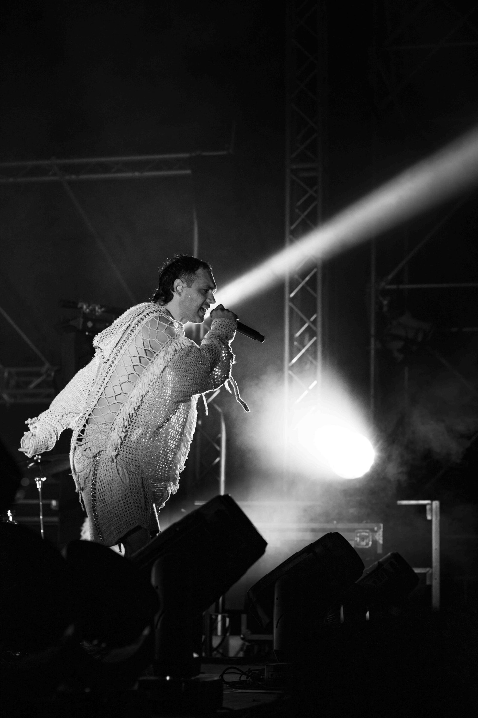 Travolti dall’onda di okgiorgio e dall’energia del secondo stage, aspettiamo con trepidazione l’esibizione dell’artista headliner della serata, Cosmo, che atterra sulle ali del cavallo bianco sul palco della sua città, Ivrea. Ed ecco che esplode la festa, in questa performance che è pulsazione, carne, etere, movimento e connessione totale tra pubblico e artista.