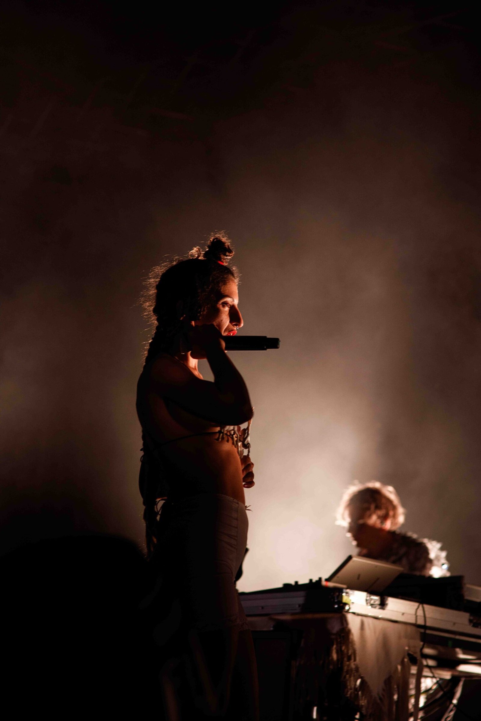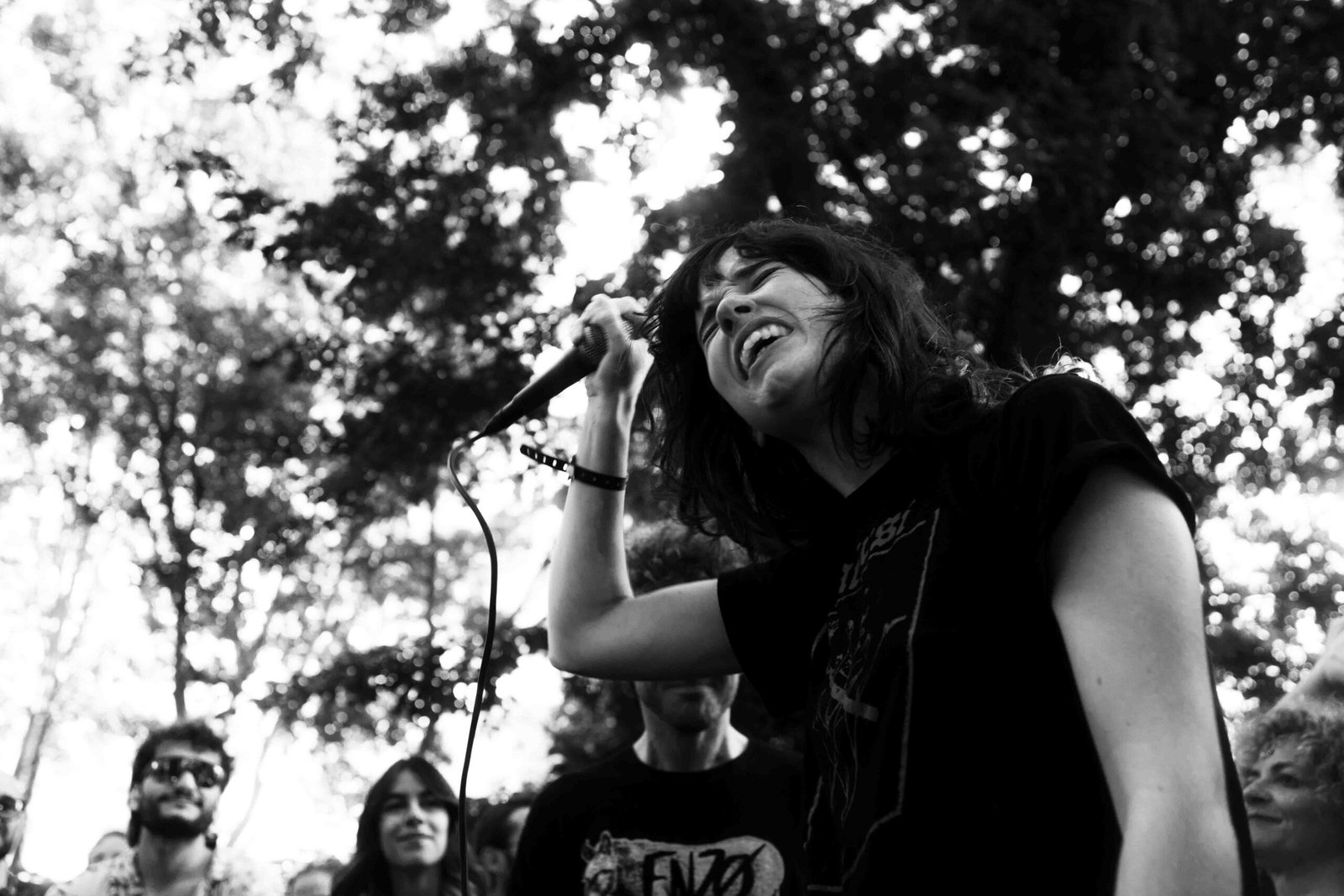 Ad aprire le danze di questo secondo giorno di festival – o meglio, primo effettivo all’interno del bellissimo parco – è il progetto Cagne di Sara Santi – voce dei Queen Of Saba, che suoneranno questa sera sullo stesso palco – e Ava Hangar: un dialogo tra due performer drag che che indaga i temi dell’identità, della fragilità, del travestitismo e dell’attivismo queer. Sullo sfondo, una musica estemporanea si offre come colonna sonora ideale per questo scambio a cuore aperto.