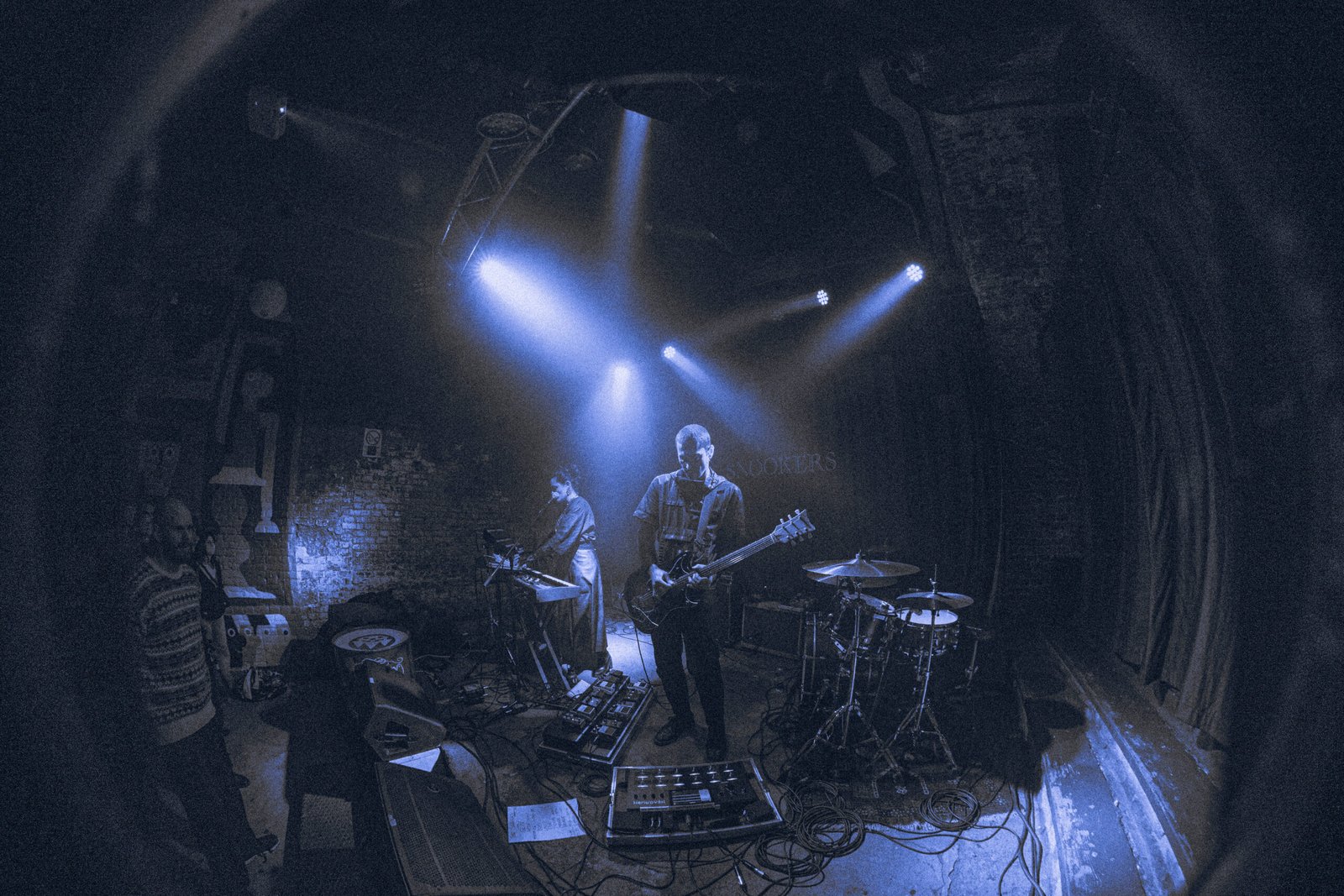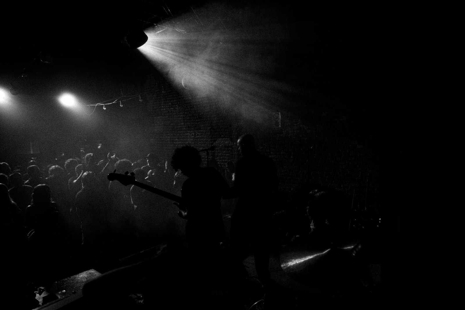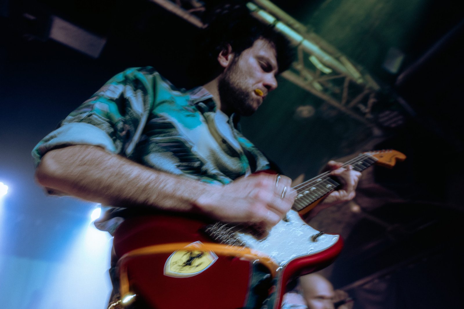 È il momento dei Bettino Taxi. Se dovessi descrivere la loro esibizione con un aggettivo, probabilmente sceglierei “cinematografico”. E non mi riferisco soltanto ai visual di film muti – da Metropolis a La corazzata Potëmkin, da Un chein andalou a Cabiria – che scorrono costantemente nel tripudio di colori psichedelici del locale. Mi riferisco anche all’impostazione del loro intero set. Nell’aria aleggia lo spirito caustico e consapevolmente provocatorio della figura di Bettino Craxi, di Mani pulite e della fine della Prima Repubblica; vengono lanciate monetine finte dal palco, mentre voci evocanti un periodo storico ben preciso – esorcizzato anche dall’ironia del nome della band – introducono i brani, a metà tra le atmosfere fluttuanti e riverberate dello shoegaze e la frenesia velenosa di un certo post punk di stampo britannico.