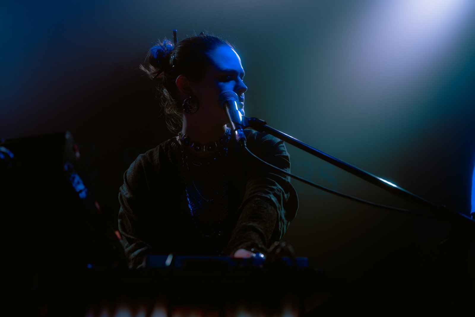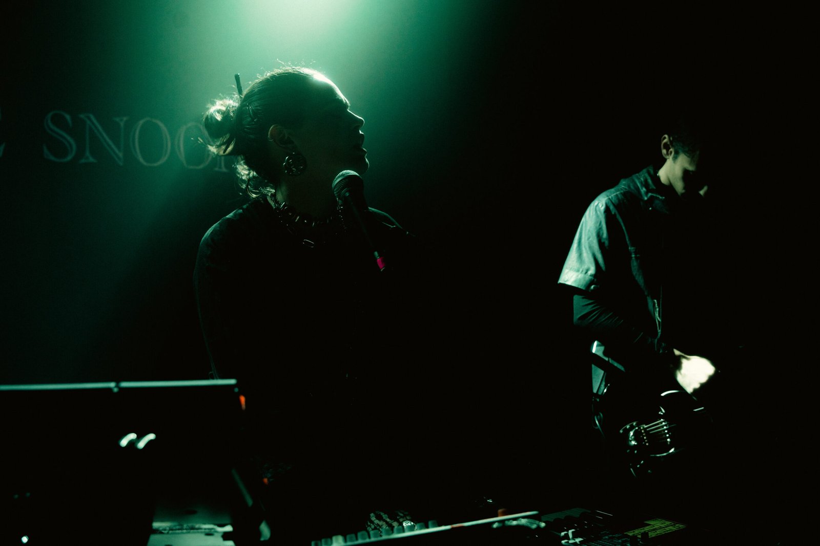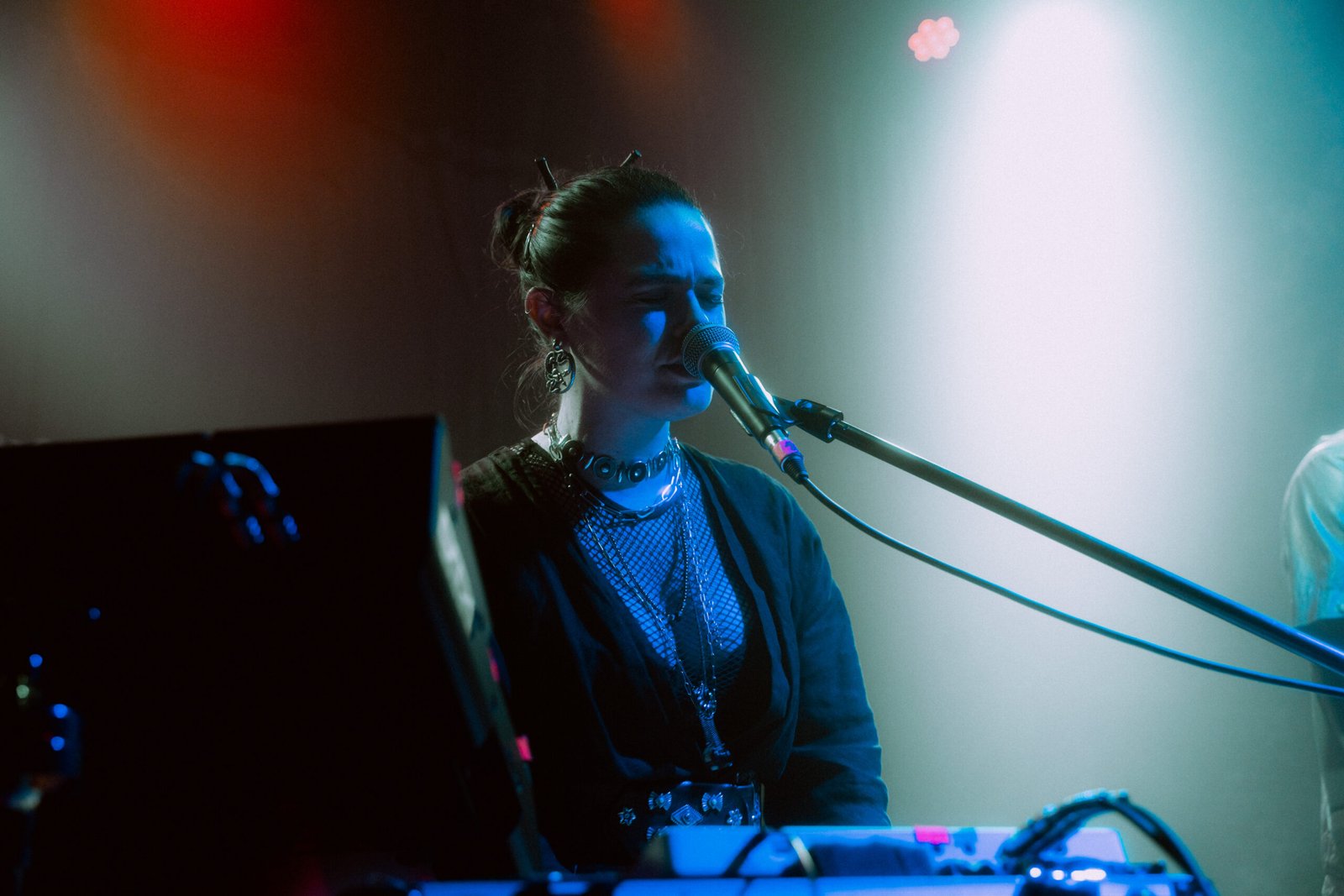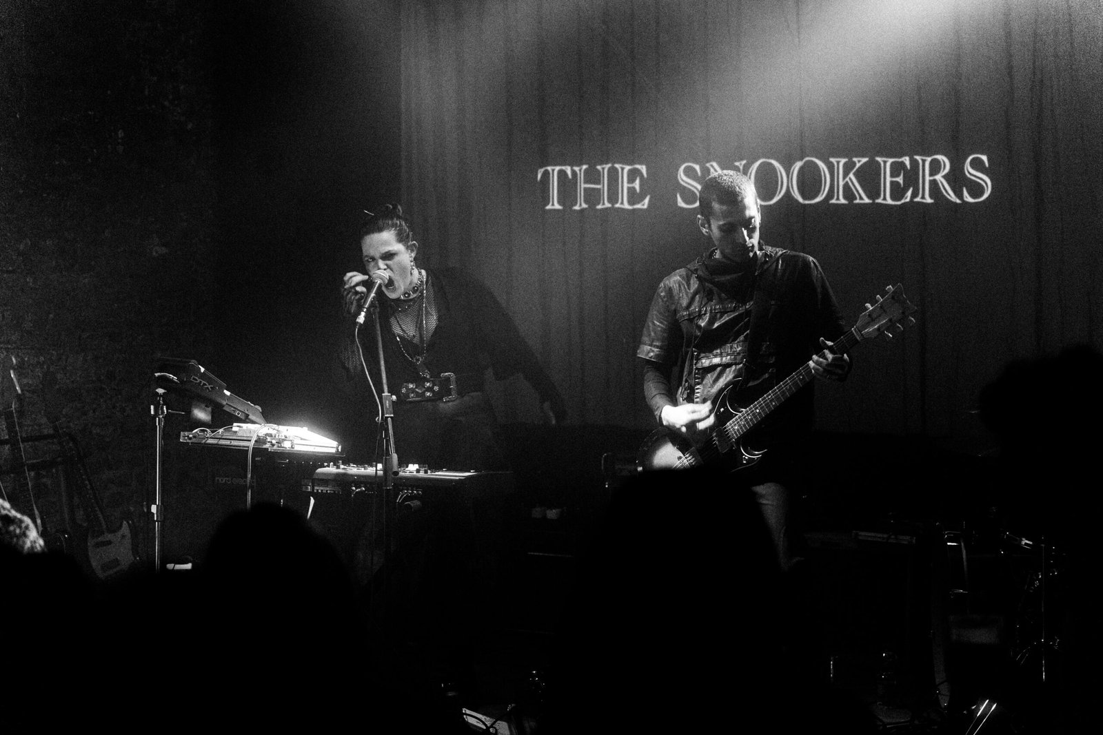 Alle 21.30 puntuali attaccano i The Snookers, freschi dell’uscita del loro secondo album Una famiglia normale. Il duo composto dalla cantante e tastierista Anita Maffezzini e dal chitarrista Federico Fabani accoglie i primi arrivati con l’energia di un sound massiccio, che si regge su numerosi elementi: dai portentosi riff alt-rock anni ’90 di Federico, capaci di entrarti immediatamente in testa per la loro incisività, alle ritmiche della drum machine, che nella loro semplicità presentano un tiro tagliente – in grado a volte di sfociare nell’industrial –, passando per la voce di Anita, che sprigiona tutta la potenza espressiva e il carisma della frontwoman, tirando fuori tutto ciò che ha dentro il corpo e l’anima attraverso l’energia di racconti intimi e intensi, la cui conseguenza naturale è la necessità di riprendere fiato tra un brano e l’altro. L’entusiasmo è percettibile.