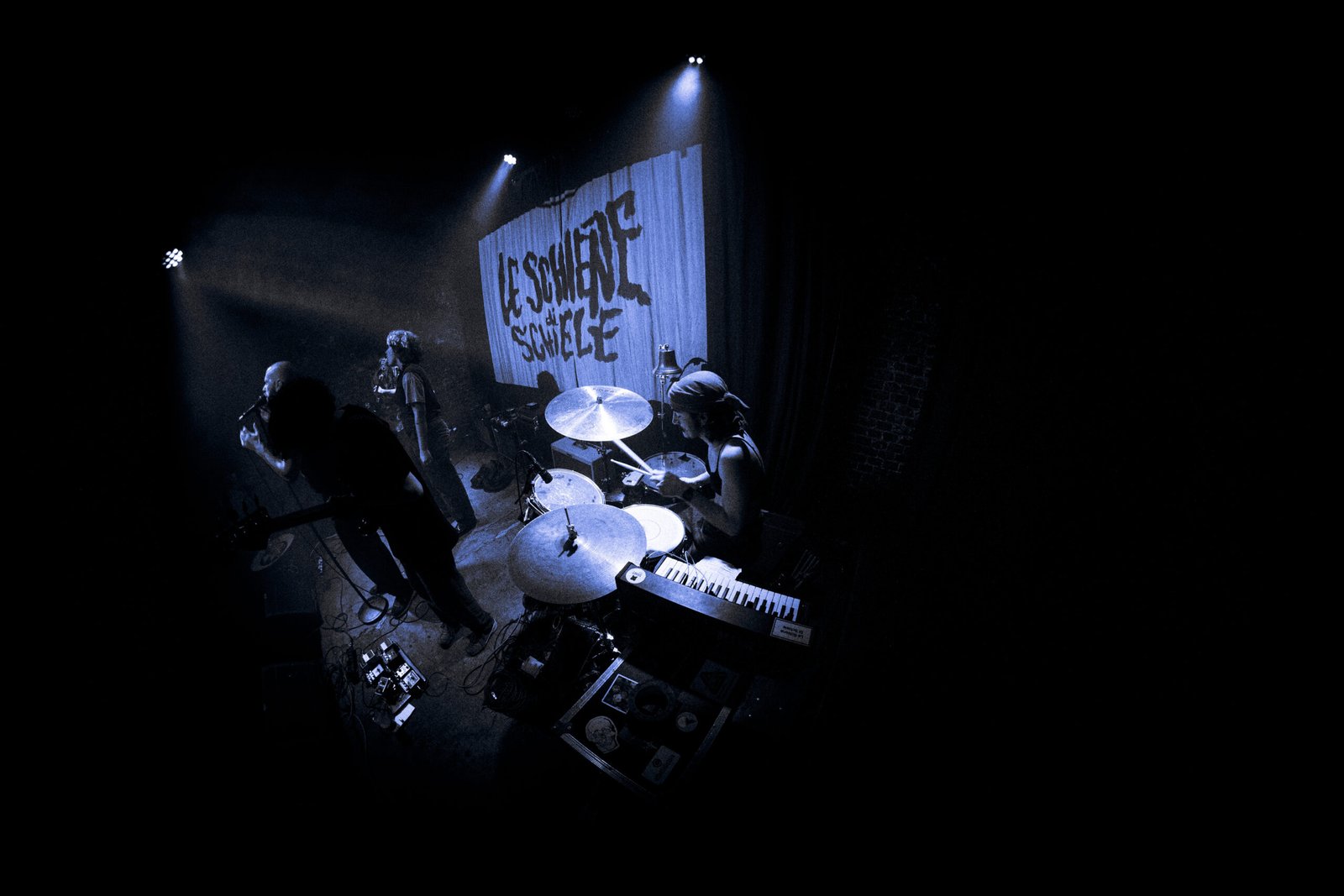 La musica de Le Schiene Di Schiele sacrifica la melodia in favore della dissonanza e del ritmo martellante e disturbato. Andrea De Marchi alla batteria pesta come un fabbro, e spesso è proprio il suo groove alla Dave Grohl a fungere da motore pulsante dei brani – tutti inediti, a eccezione del singolo già citato –, in perfetta sintonia col titanismo del basso di Daniele Baldassarre e l’angosciante distorsione della chitarra di Giacomo Scarcella. È necessario dare il giusto credito ai fonici del Magazzino, che per tutte e tre le esibizioni hanno saputo valorizzare al meglio qualunque sound.
