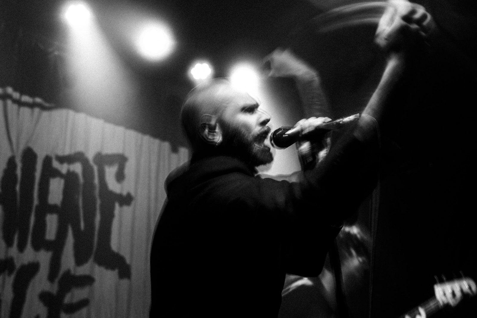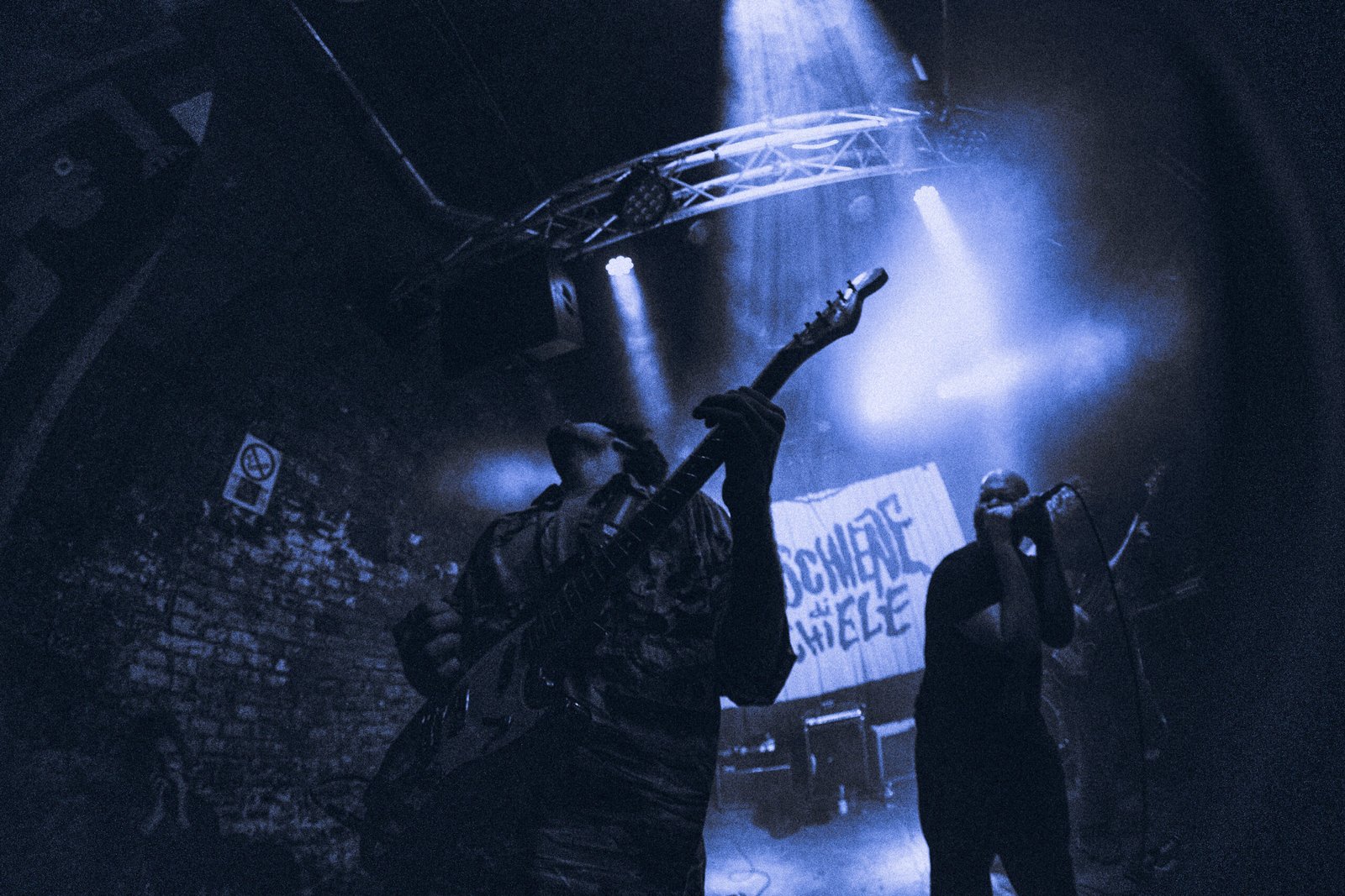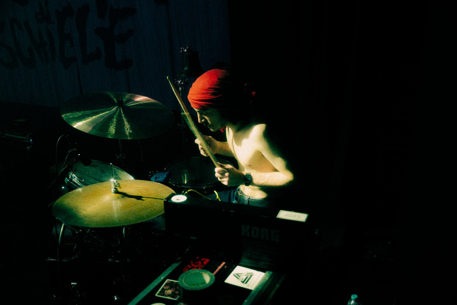 E terminiamo continuando a parlare di grandi presenze sceniche, perché se c’è una cosa che distingue Le Schiene Di Schiele dalla maggior parte delle altre band del circuito, questa è proprio la capacità magnetica di attrarre il pubblico nel proprio rituale math rock, che striscia sull’asfalto, cresce piano piano, sale lungo le articolazioni e penetra nelle ossa. L’inquietante teatralità con la quale loro stessi si descrivono è incarnata nel carisma di Francesco La Greca, che è una presenza costante nell’anima dello spettatore che incrocia il suo sguardo penetrante.