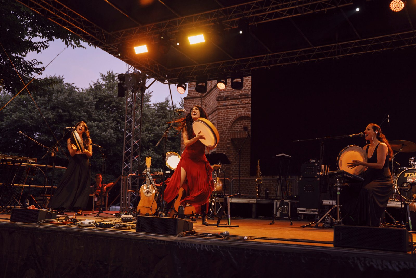 Partendo da Porsi, Castello alterna canzoni tratte dall’album Contenta tu a brani di Pezzi della Sera, come Beddu e Polifemo, facendo ballare e cantare a squarciagola il pubblico. Un esito inevitabile considerando l’energia incredibile trasmessa da un accompagnamento al gran completo: Giuseppe Molinari alla batteria, Daniele Bronzini alla chitarra elettrica, Leonardo Varsalona alle tastiere e la sezione fiati con Rodrigo Patti, Stefano Ordisi e Andrea Iurianello