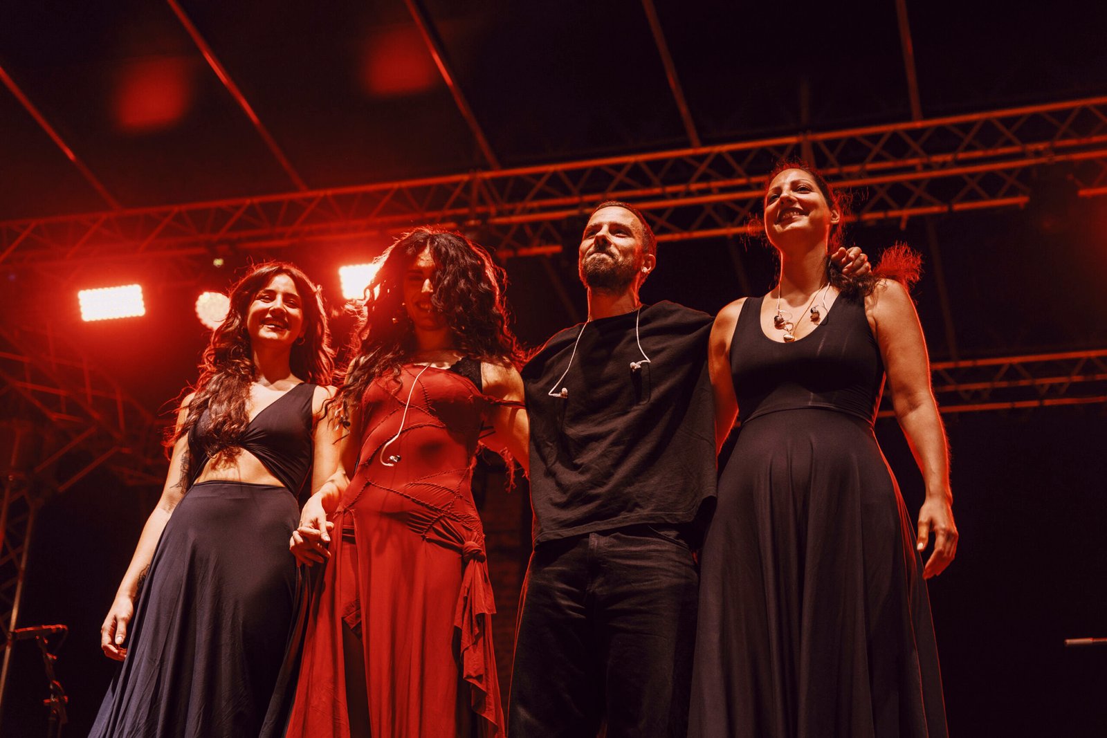Ad arrivare dritte senza mediazione al pubblico non sono solo l’estetica e la potenza dell’esibizione, è anche una questione di spessore del discorso. Insomma c’è molto di più di quello che si vede e non è che quello che si vede sia poco, complici anche Francesca Del Duca, Lydia Palumbo e Alfredo Maddaloni che con tastiere, nacchere, tammorre, mandolini e voci incredibili accompagnano l’esibizione.