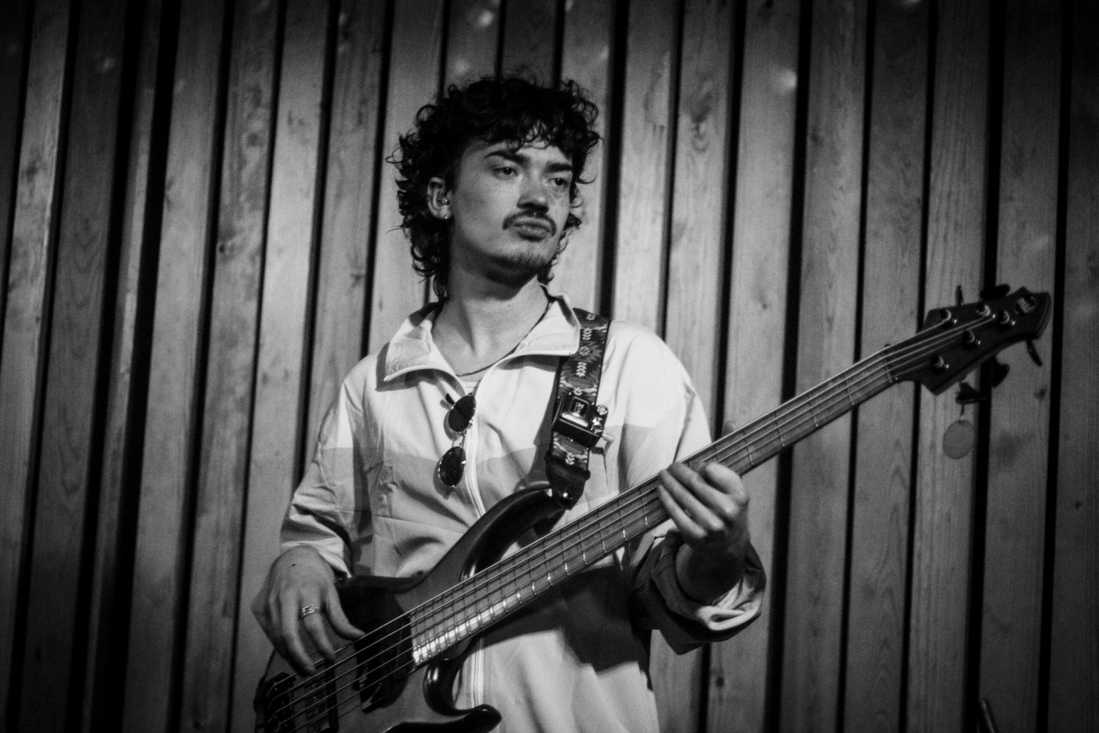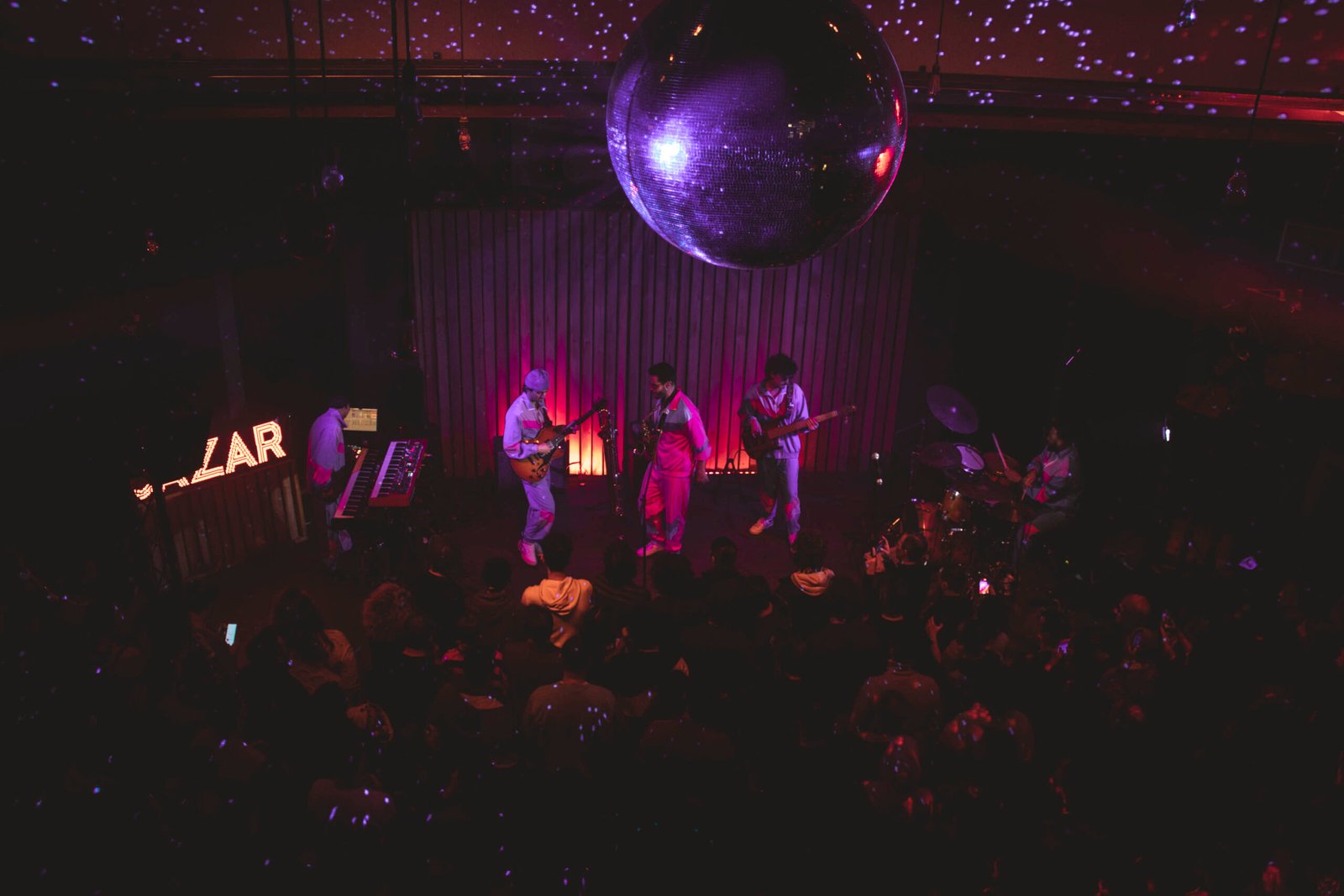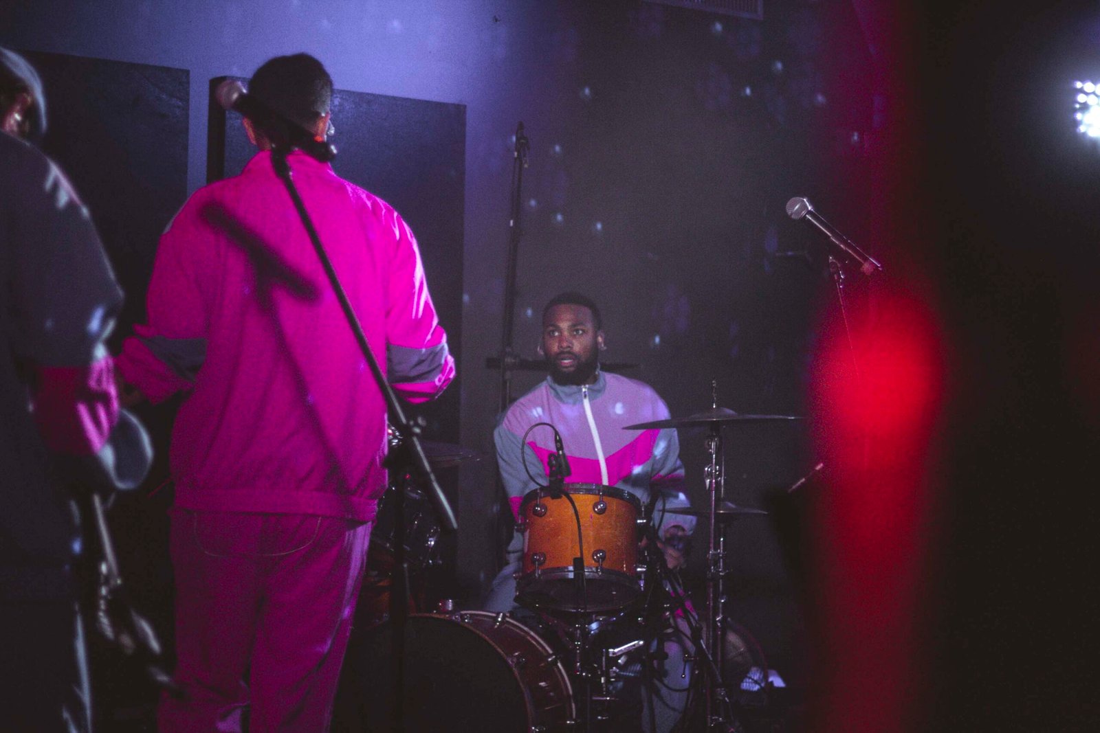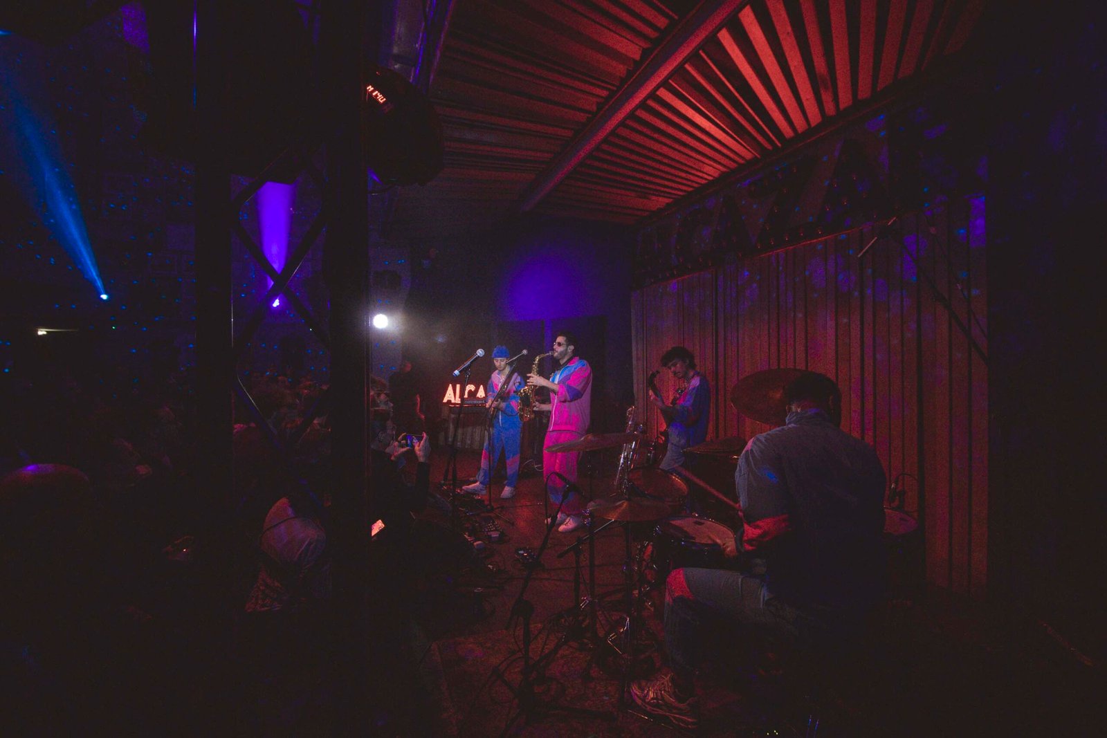 La sua band, composta da Justin Swiney alla batteria, Matt Wong alla tastiera, Zachary Guise e Russ G. alle chitarre, lo raggiunge sul palco e subito salta all’occhio il loro look coordinato: tute stile sci, rosa per Sam e lilla per i suoi musicisti, un dettaglio che anticipa l’originalità dello show. Appena iniziano a suonare, l’energia esplode. La miscela di sax, batteria, chitarre e tastiera crea un suono unico, una tempesta musicale che lascia il pubblico spiazzato e divertito.