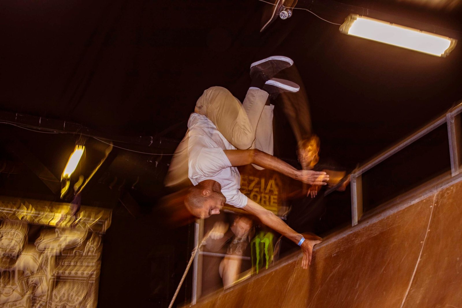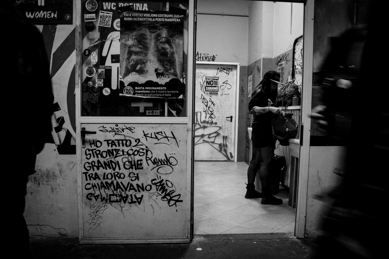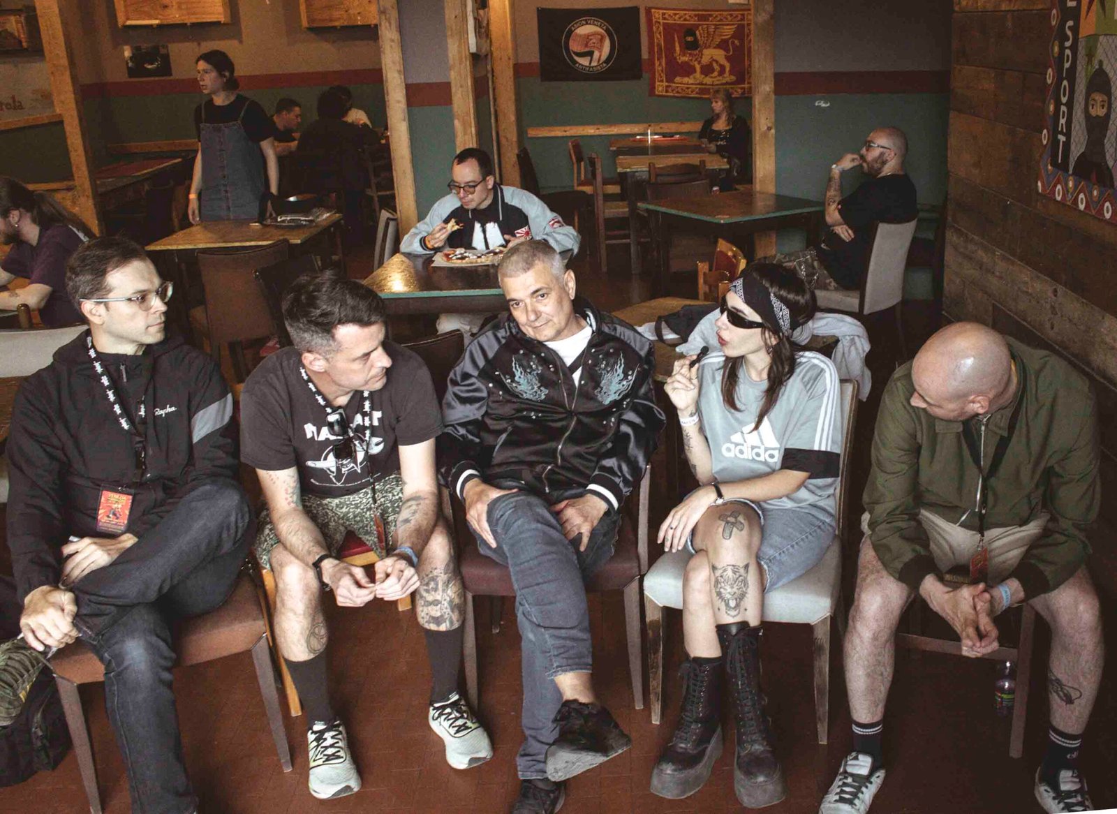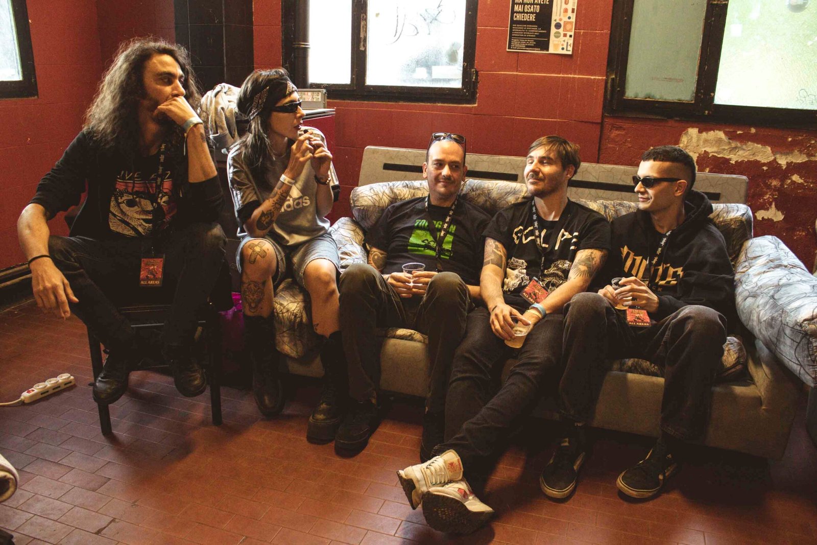 All’interno c’erano anche un’area backstage e una zona interviste gestita da Recout, dove abbiamo avuto il privilegio di parlare con sei band: La Quiete, Talpa, Disco Mostro, Confine, Klasse Kriminale e Hate & Merda. Il primo giorno il festival è iniziato alle 19, il secondo già alle 15, per una full immersion continua. Il pubblico arrivava da tutta Italia ma anche da Germania, Spagna, USA. C’erano giovani, adulti, famiglie con bambini: il Venezia Hardcore è ormai una tappa fissa, una tradizione annuale.
