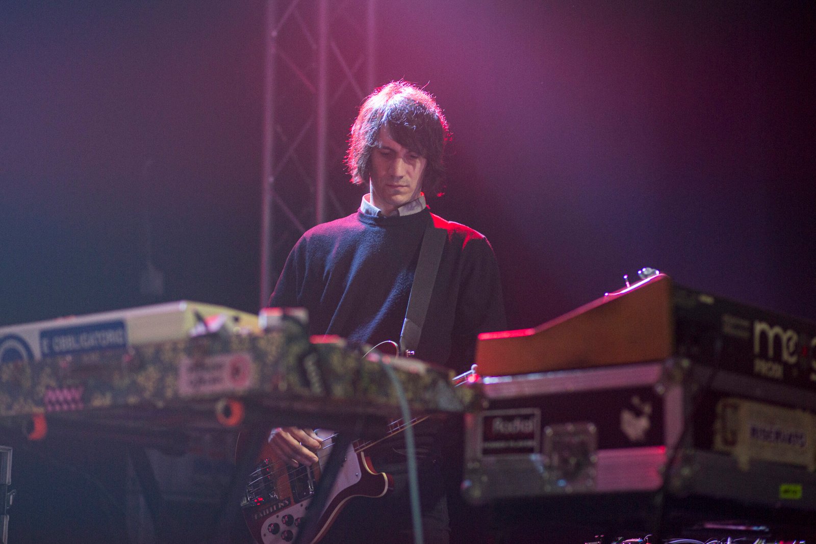 «Gli Offlaga Disco Pax sono un collettivo neosensibilista contrario alla democrazia nei sentimenti, perché i sentimenti sono una dittatura». Con queste parole comincia il live del trio emiliano, completato per l’occasione, accanto ai fondatori Max Collini (voce) e Daniele Carretti (chitarre e tastiere), da Mattia Ferrarini, compaesano polistrumentista alle prese con sintetizzatori Moog, tastiere, infinite pedaliere e basso elettrico. Il volto di Collini appare fin da subito visibilmente emozionato: gli occhi lucidi, lo sguardo fisso davanti a sé, un grande sorriso che spesso affiora sul suo viso, sfuggendo al controllo del personaggio che sul palco incarna. Ma Max non ne fa mistero. Anzi, rivolge al pubblico frequenti sguardi di intesa, per renderlo partecipe delle proprie emozioni. Il clima, così, diventa familiare. È una rimpatriata, una celebrazione affettuosa. In poche parole, ci sentiamo a casa.